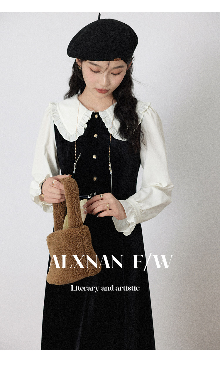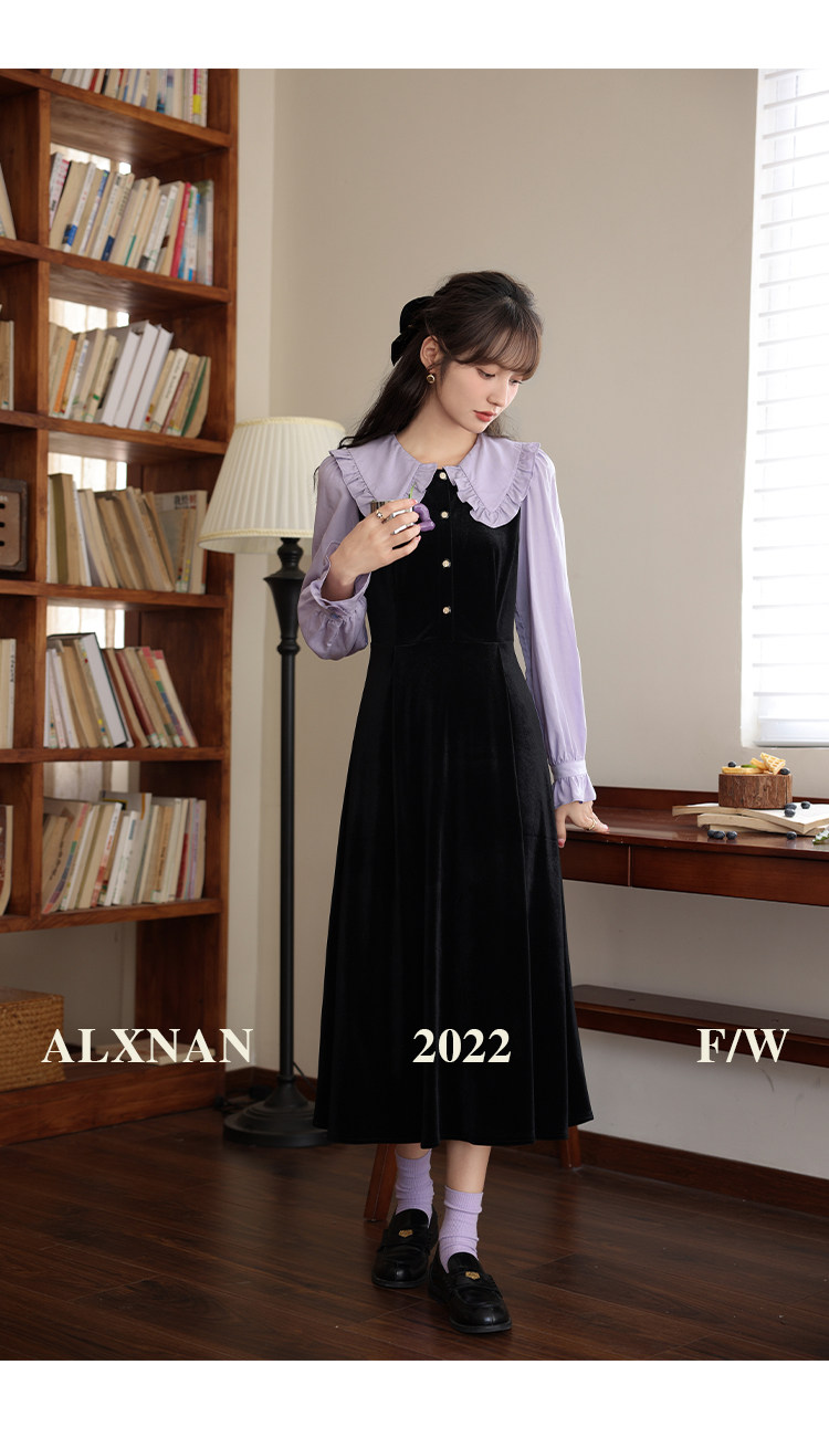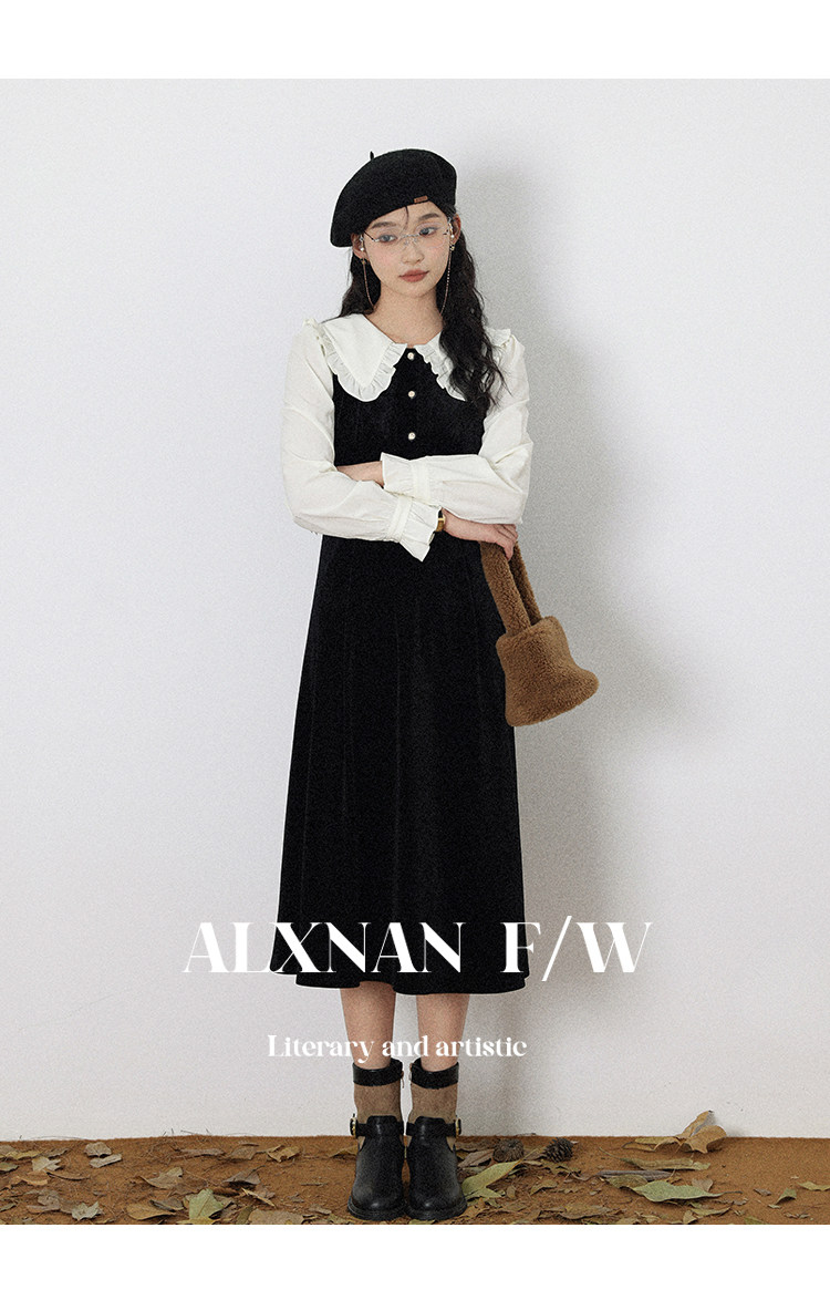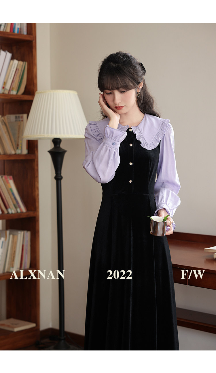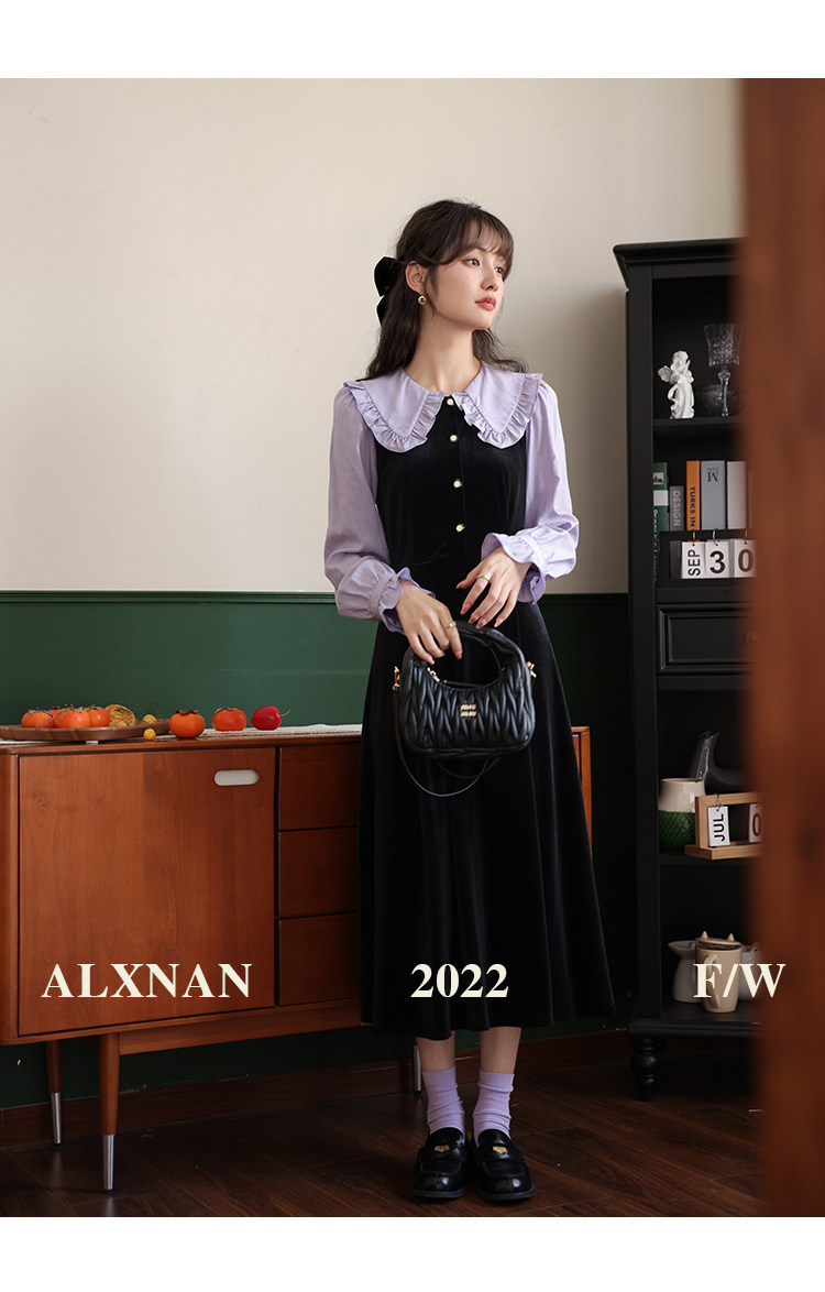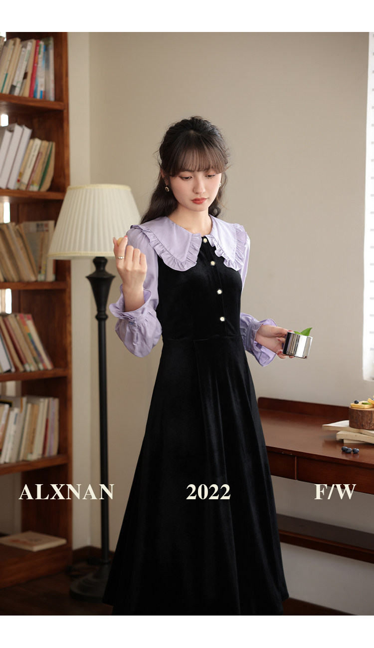 鹿向南「梦幻星辰」假两件法式桔梗娃娃领连衣裙女秋冬季收腰长裙