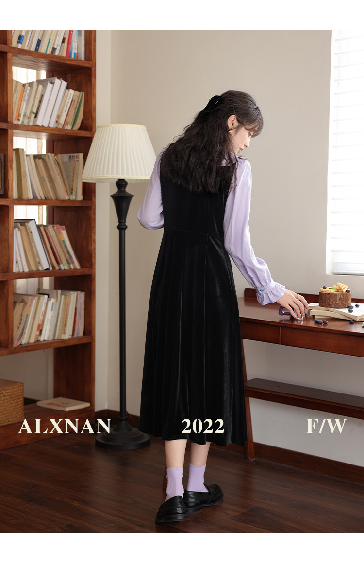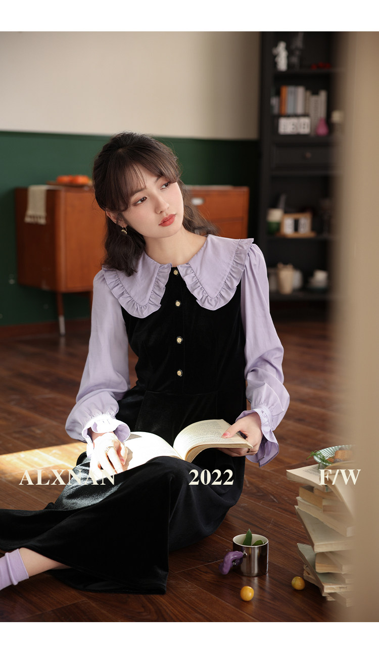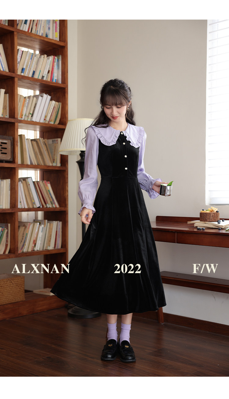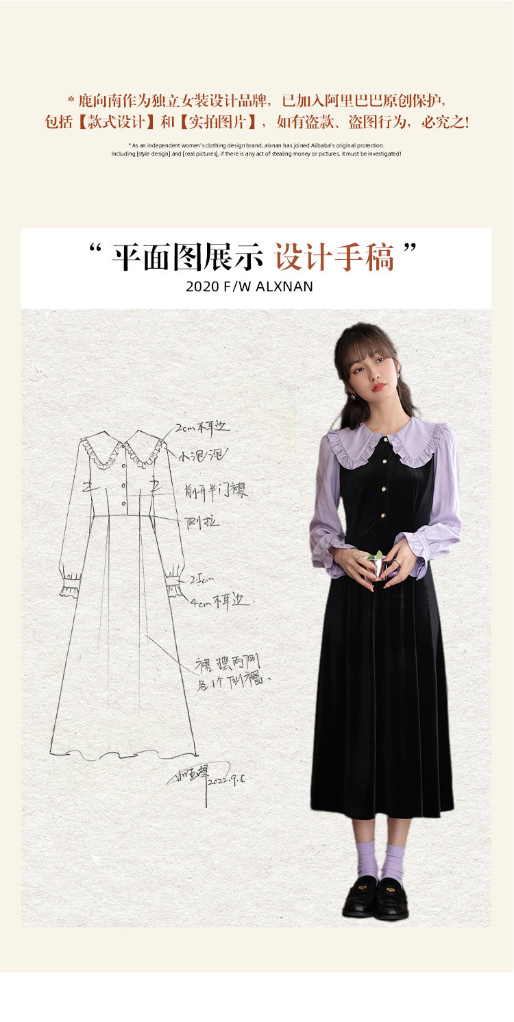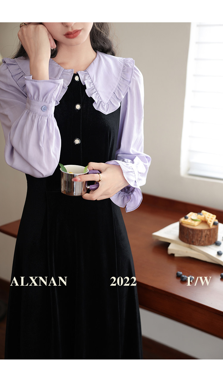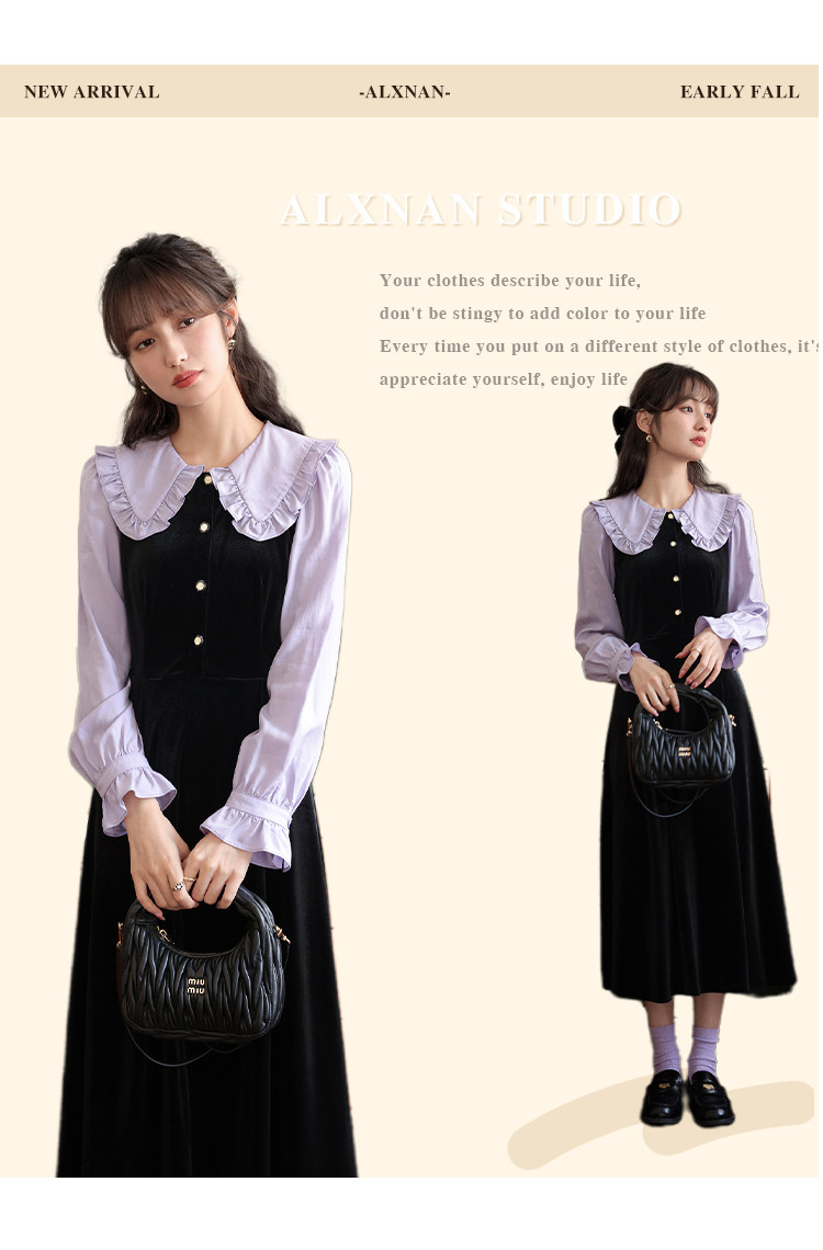 鹿向南「梦幻星辰」假两件法式桔梗娃娃领连衣裙女秋冬季收腰长裙