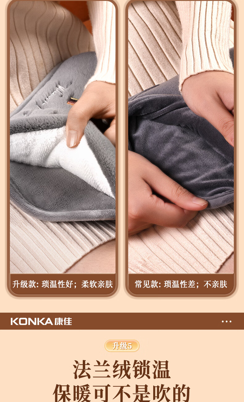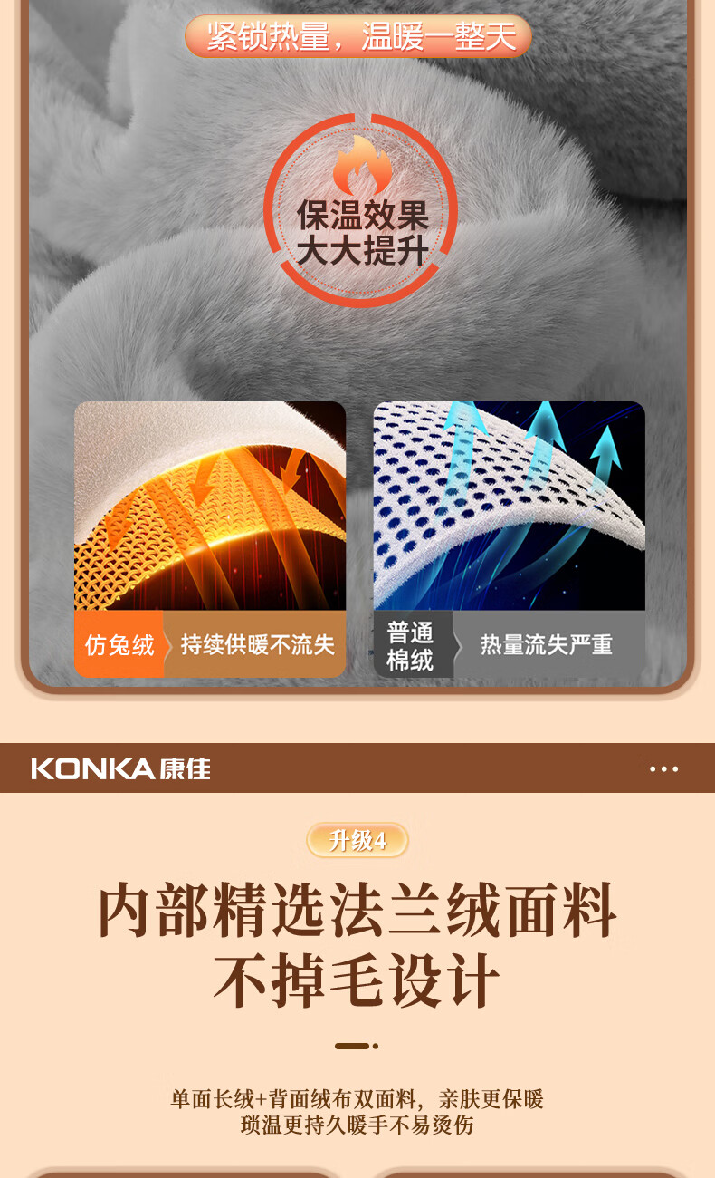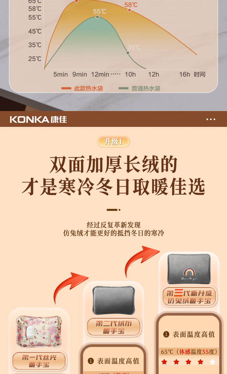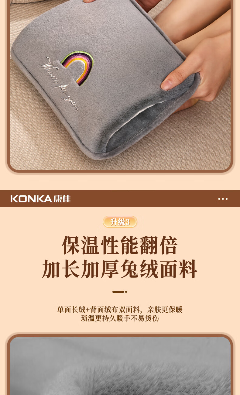 康佳(KONKA)电热暖手袋/暖手宝 KH2309 长绒双插连体款-灰彩虹