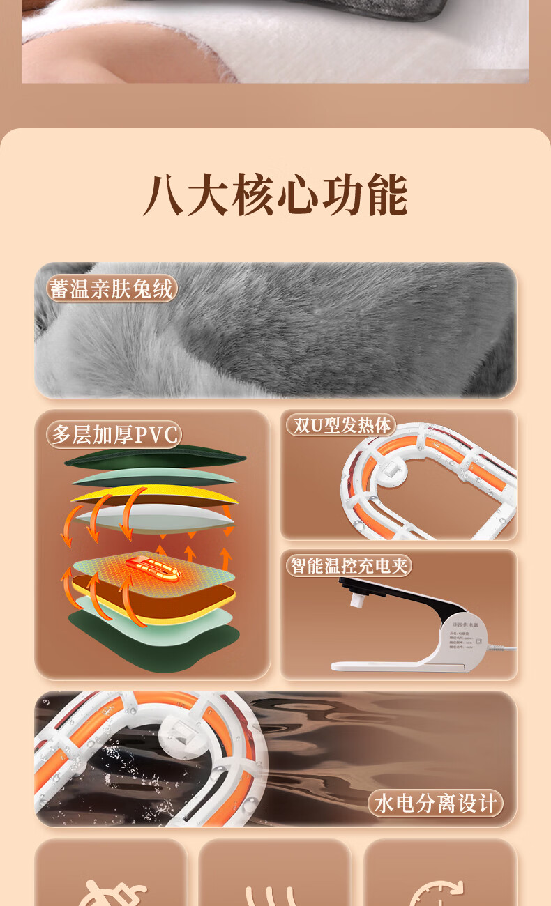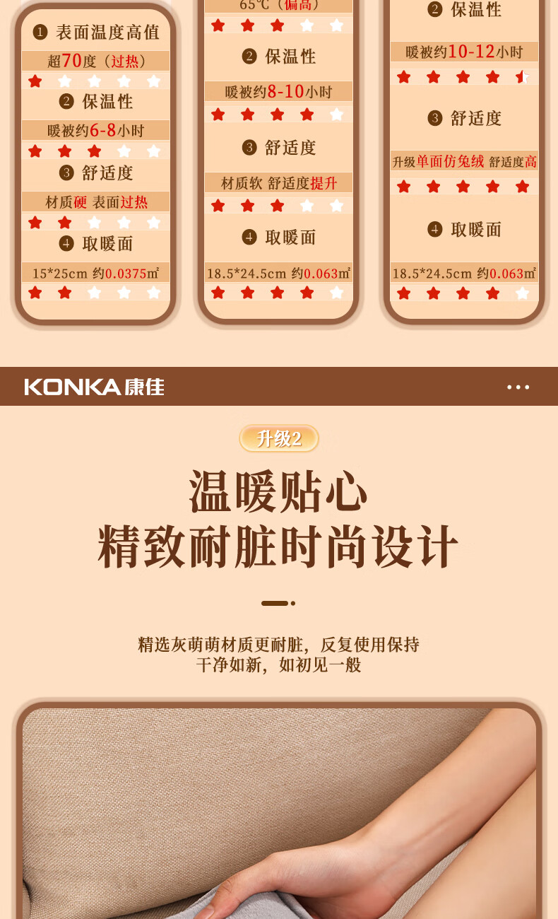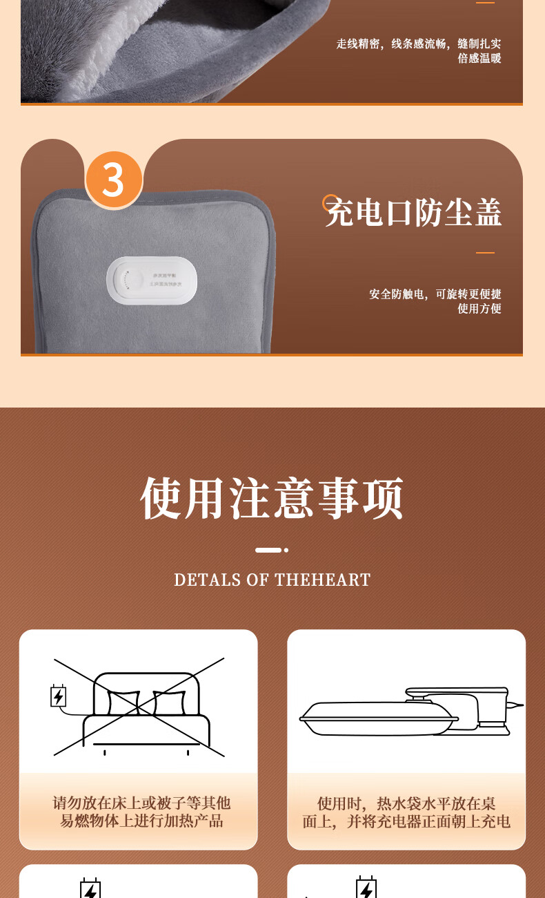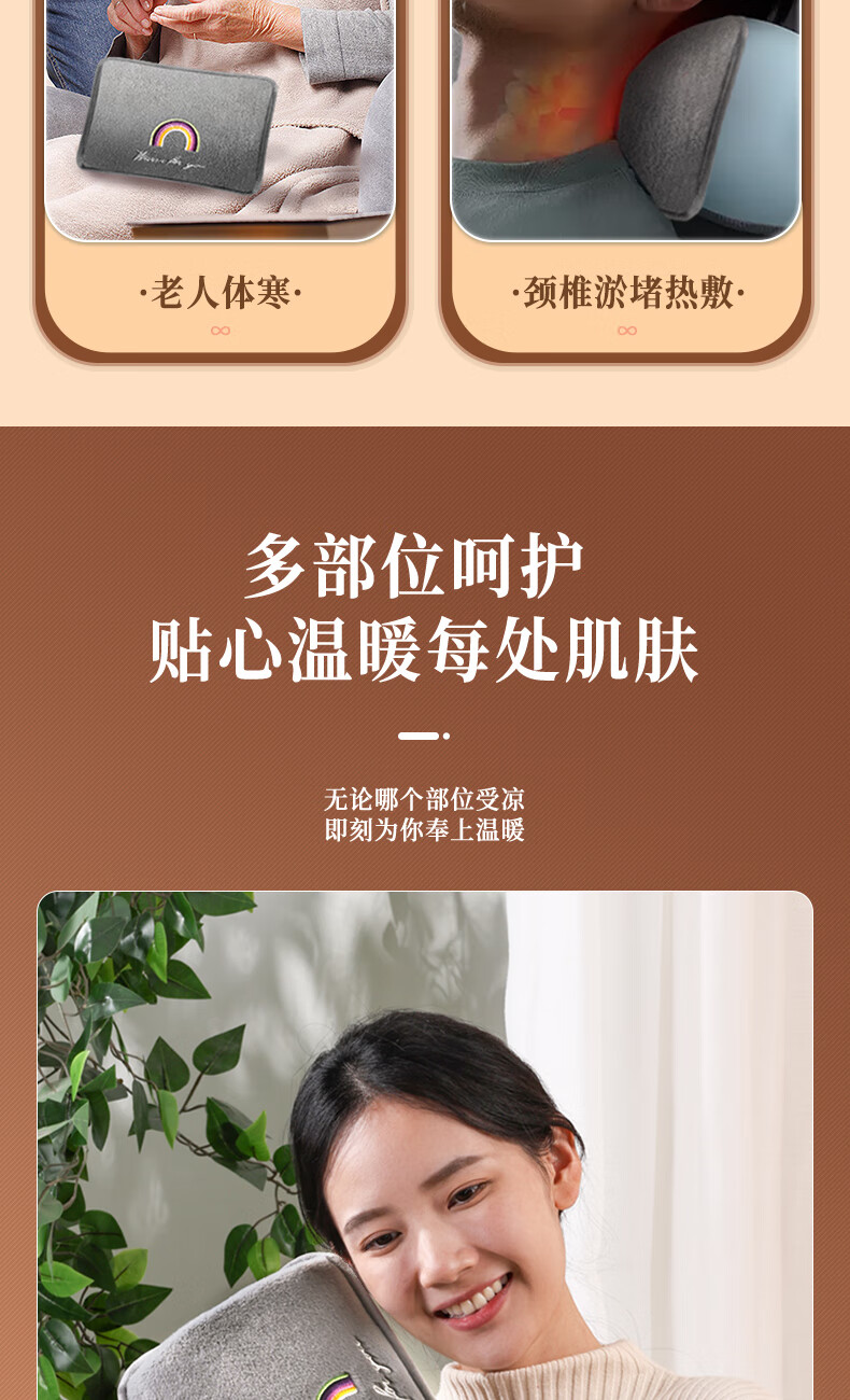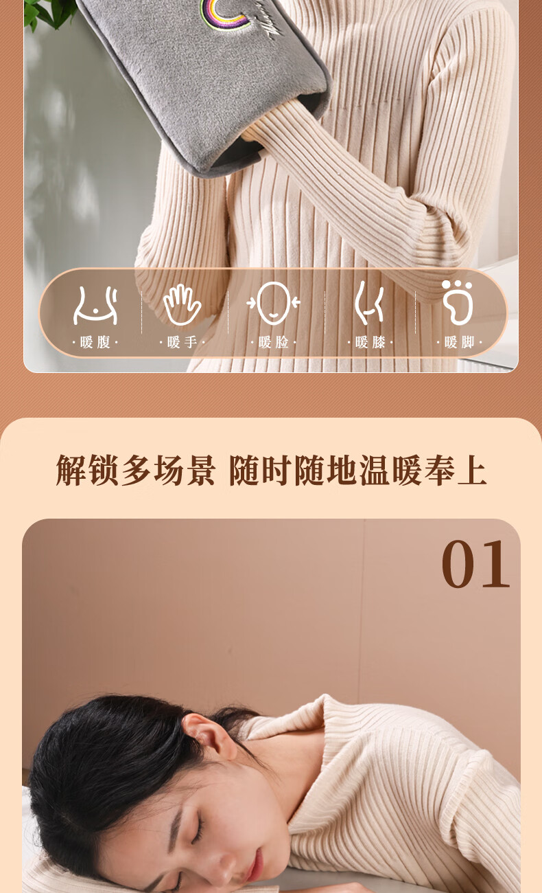 康佳(KONKA)电热暖手袋/暖手宝 KH2309 长绒双插连体款-灰彩虹