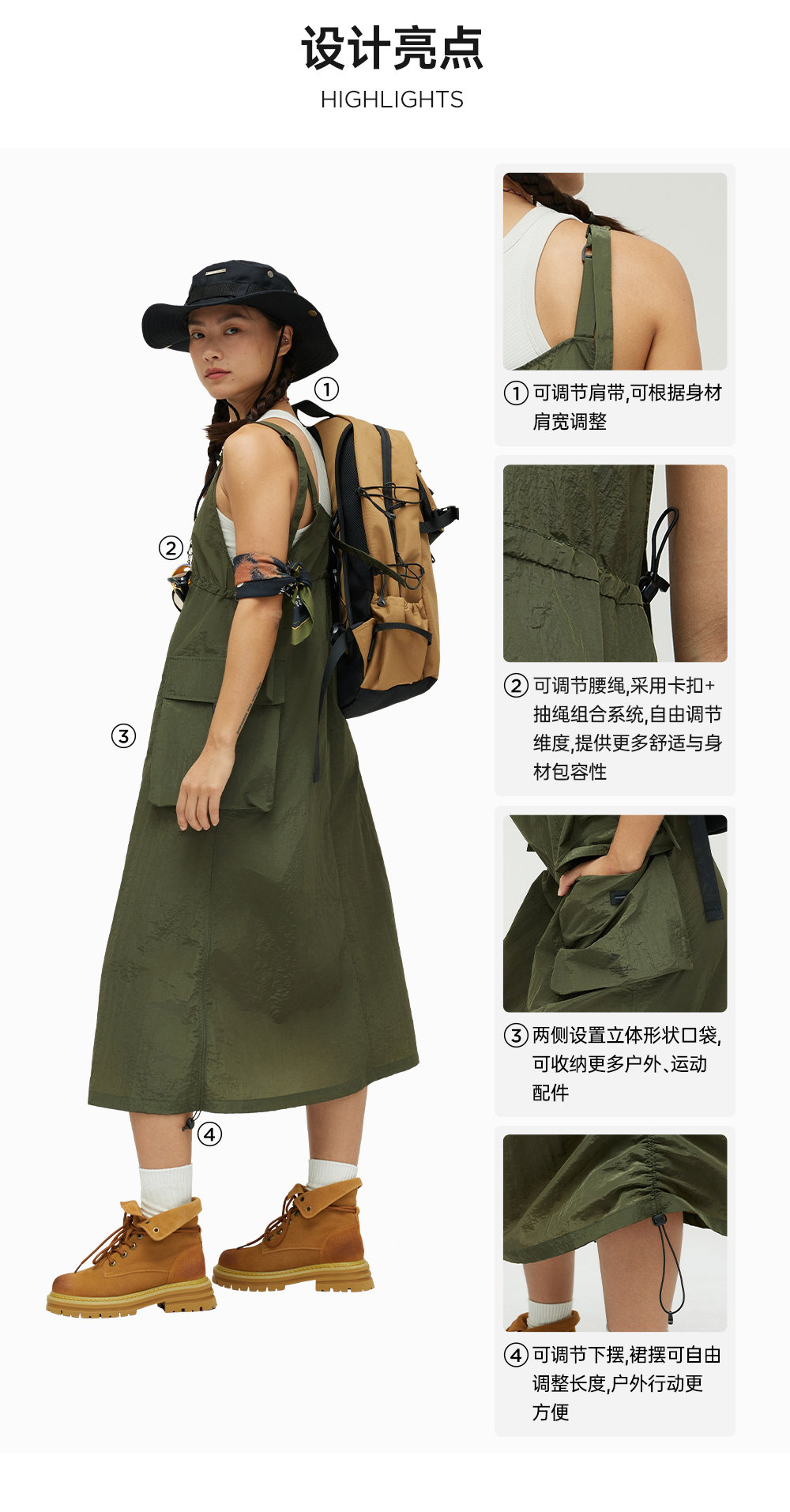 AllReaday新奇天吊带连衣裙女城市户外2025新款春夏运动休闲裙子WM24SSPD01