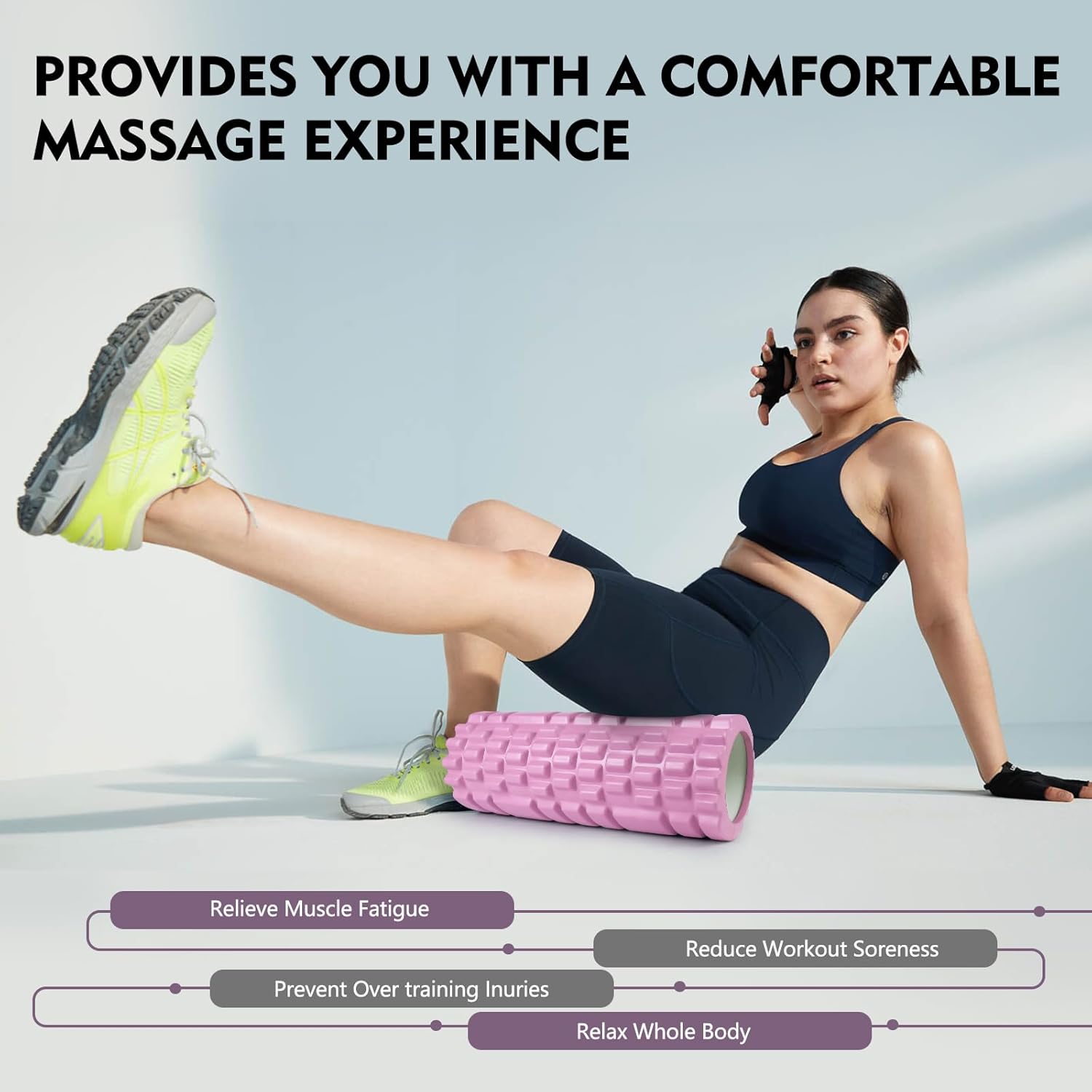 狼牙泡沫轴:更大更深的浮点,按摩更到位,在运动前后用它进行肌肉拉伸与按摩,可缓解僵硬。舒缓肌肉酸痛紧张,深层渗透身体肌群快速释放肌筋膜,提升肌肉柔韧性。
