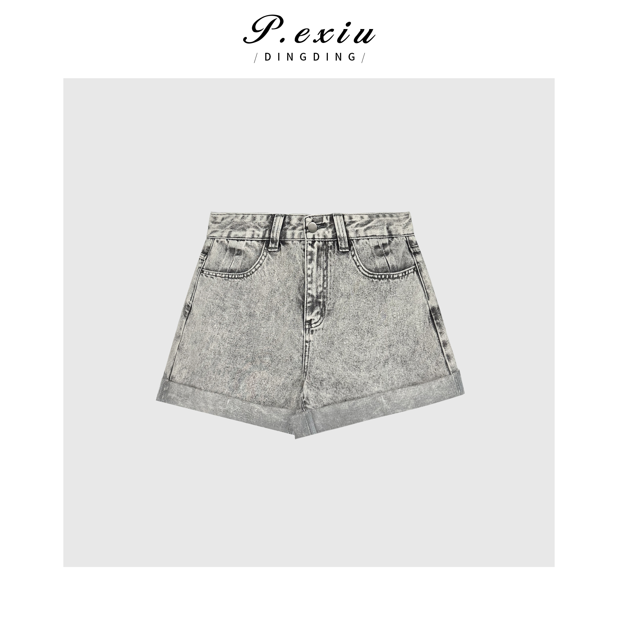 03-3潘依绣丁丁宠粉潘依绣【风吹一夏】重工水洗美式复古卷边牛仔短裤 D6268