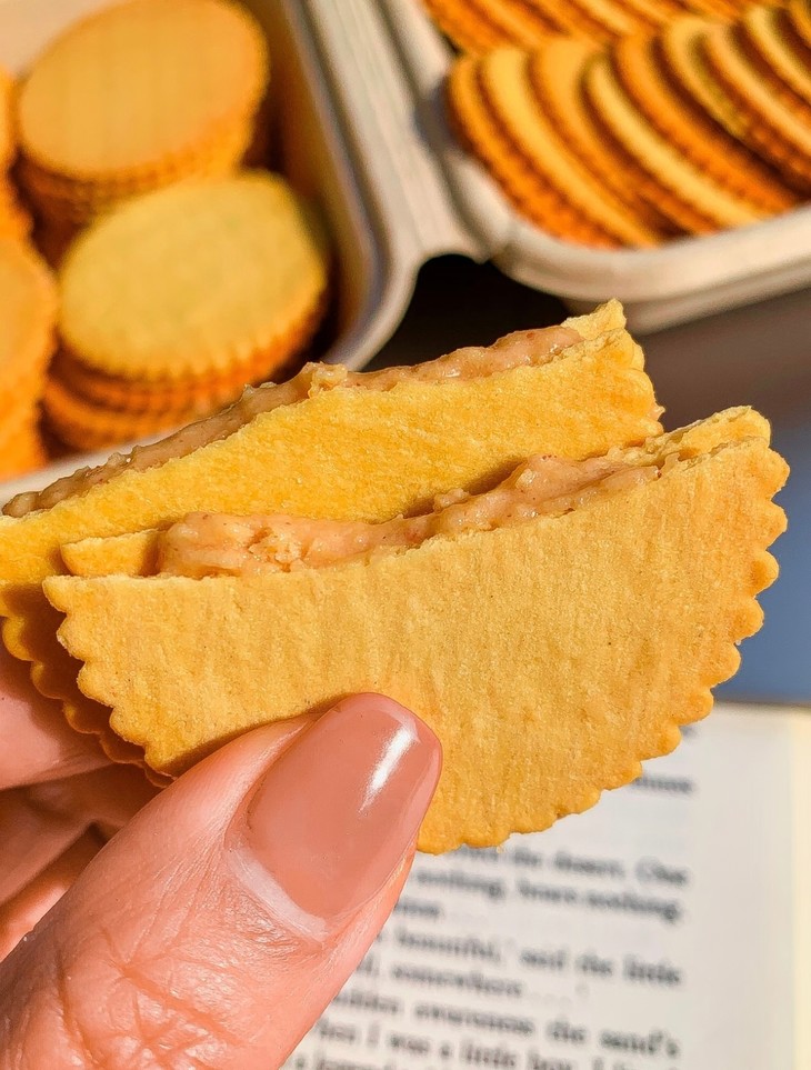 👉甜咸拿捏住了 多一分太齁 少一分不够 舔完手指还想嗦包装的那一种hhhh❗️❗️ 别人家夹心甜到锁喉 咱家用现磨花生酱 甜味像风轻轻刮过 咸味勾着舌头追 办公室抽屉塞一盒 半天就能掏空😍