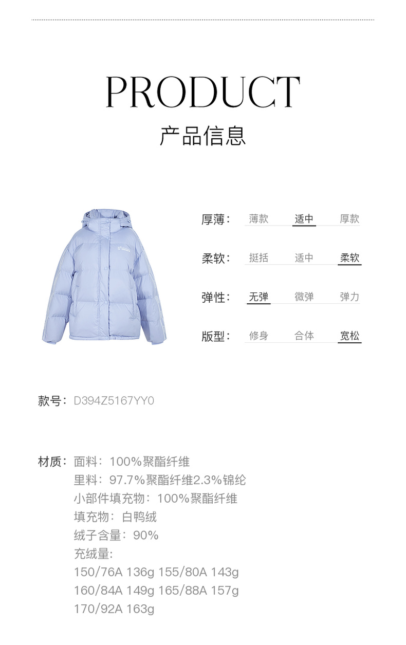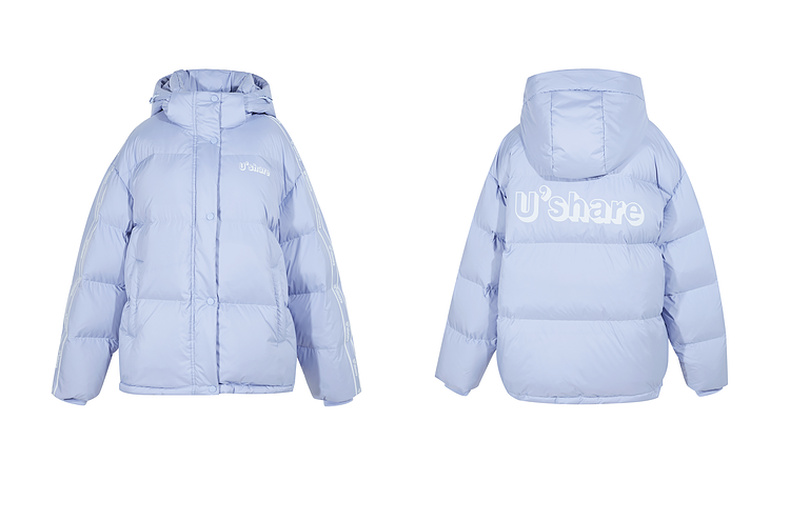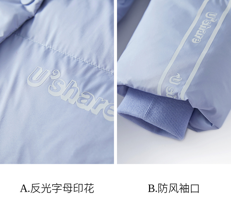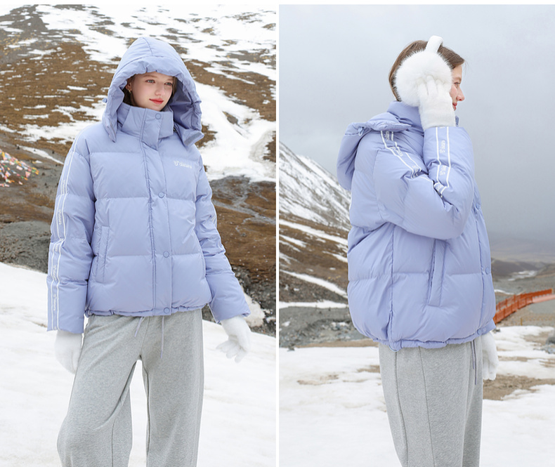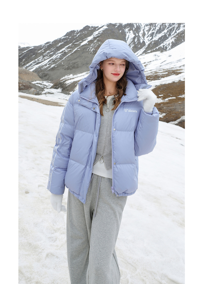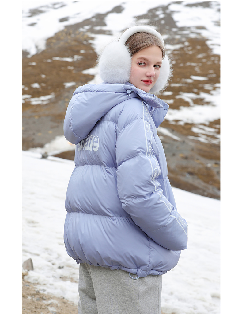 三彩冬季新款字母印花羽绒服白鸭绒蓄热外套保暖宽松立领女M