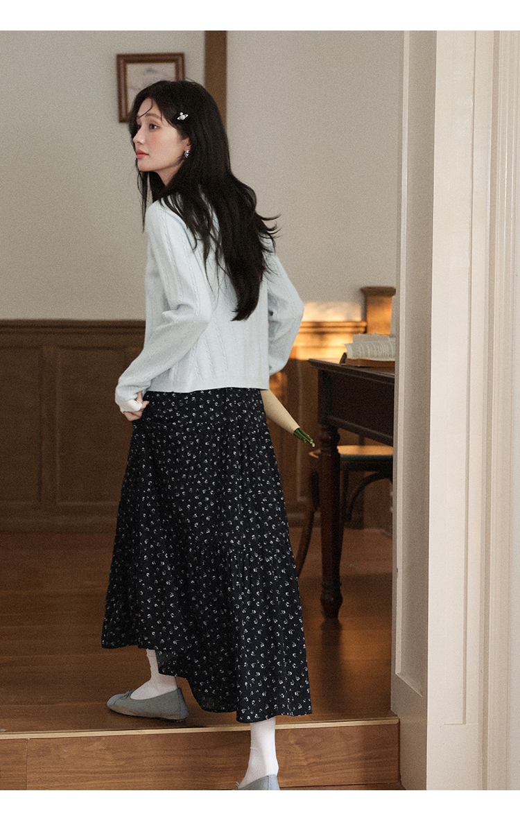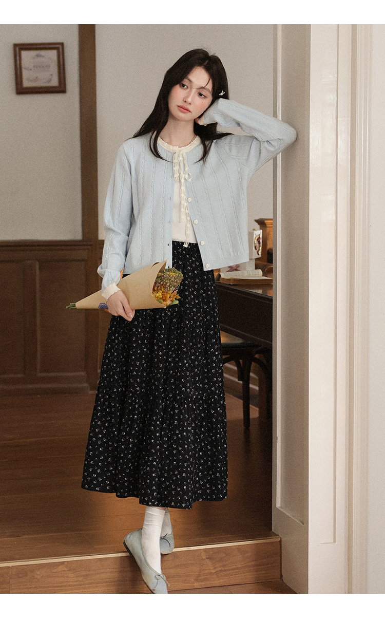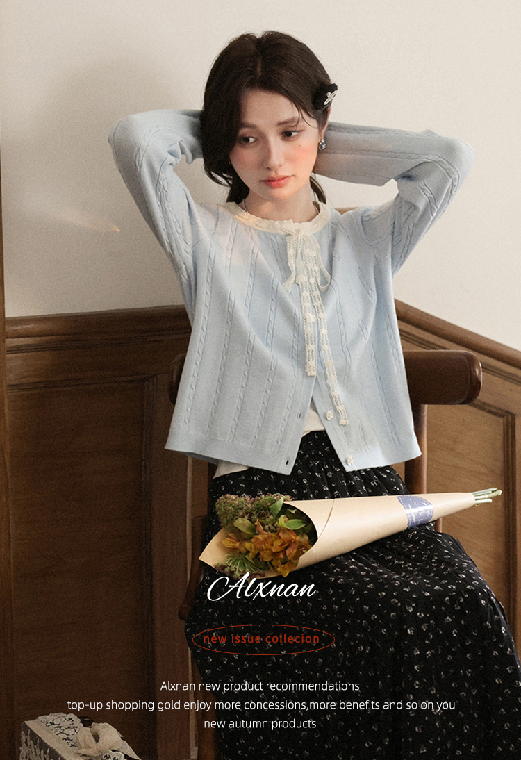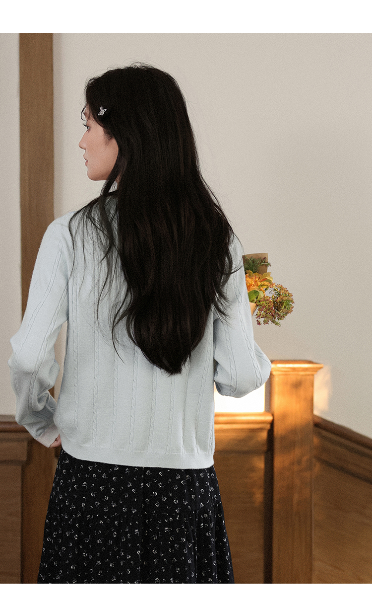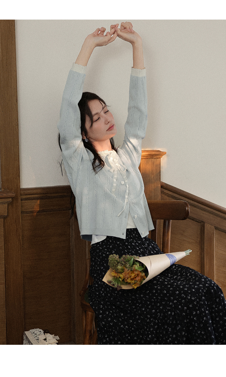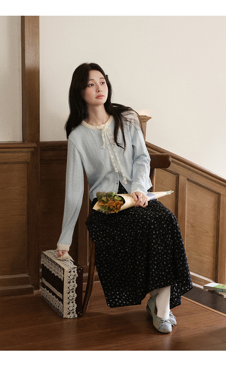 鹿向南「簌簌铃兰」法式蓝色拼色针织开衫外套女早秋长袖短款外搭