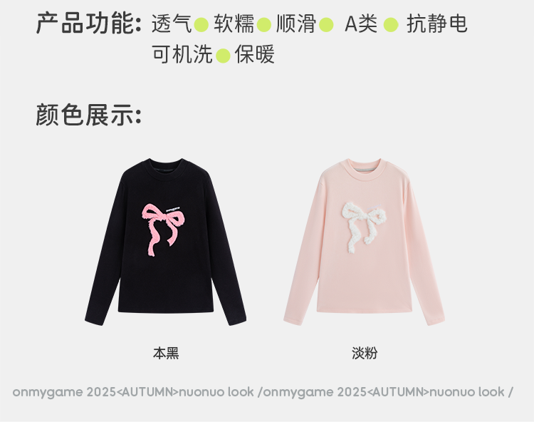 onmygame女童长袖T恤双面暖暖绒亲肤保暖防静电GP81118000