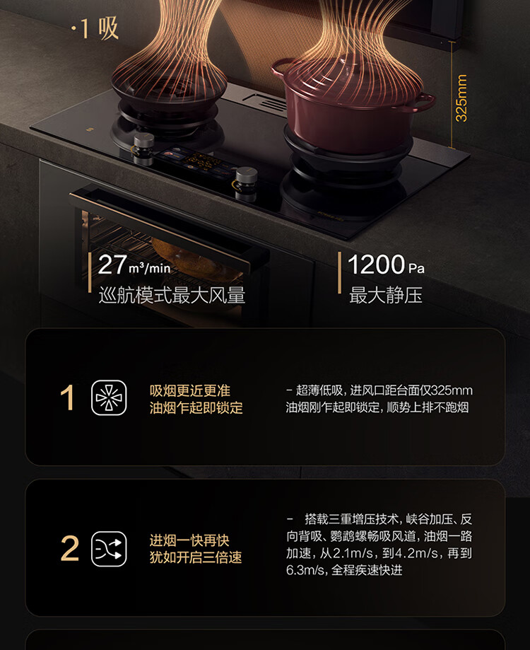 方太/烟机/CXW-358-03-X1A/侧吸油烟机家用大吸力27巡航风量挥手智控直流变频集成烹饪中心