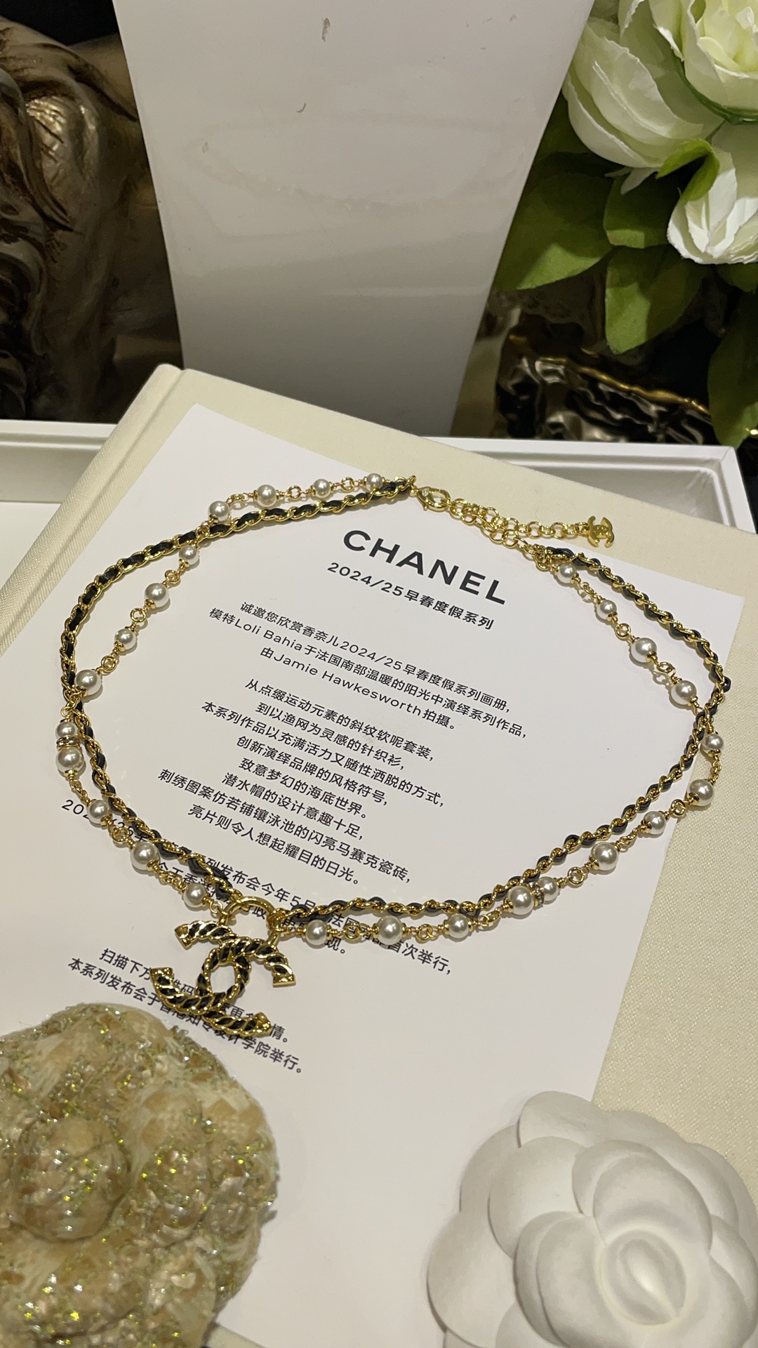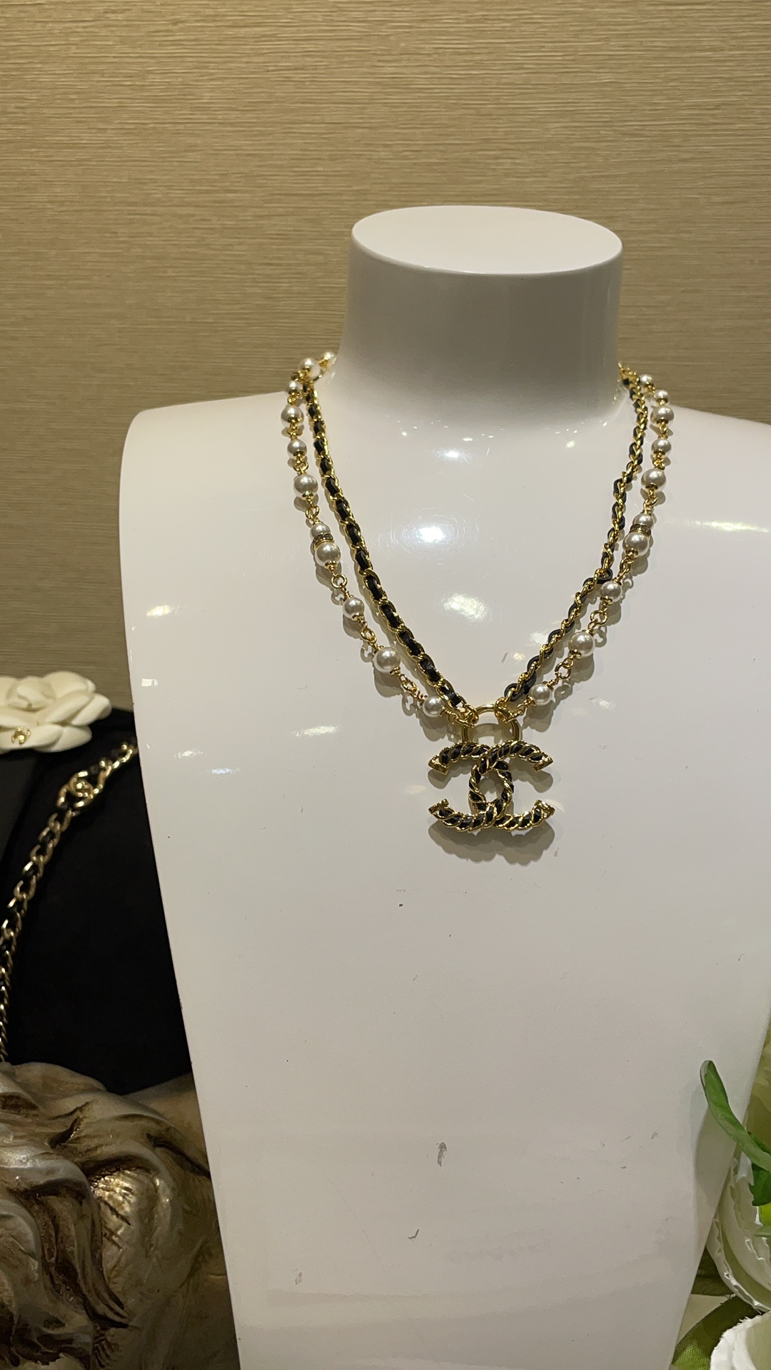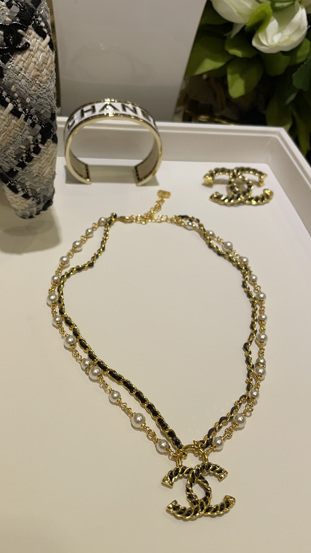 香奶奶 24K新款金色皮穿链双C珍珠项链
