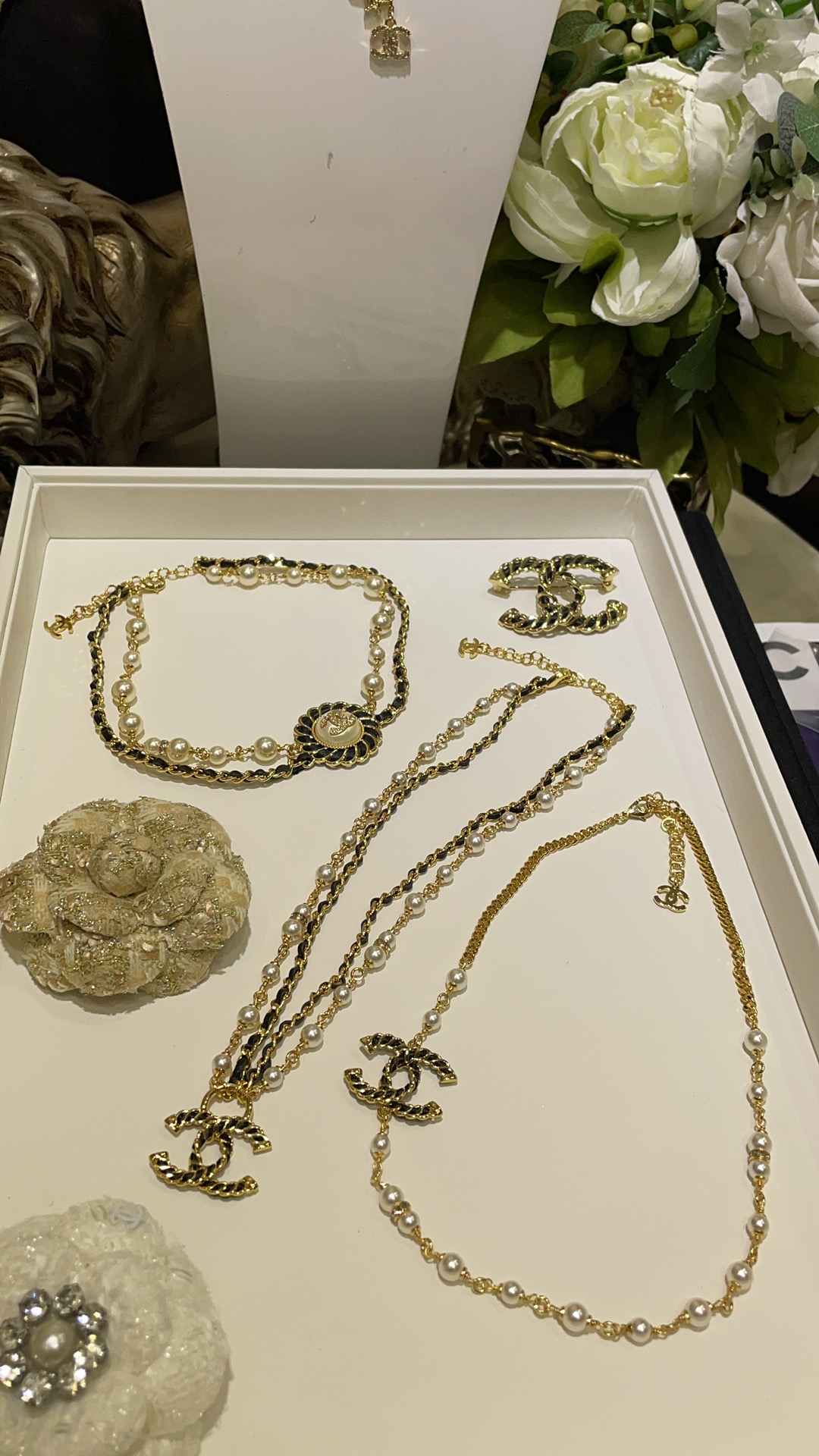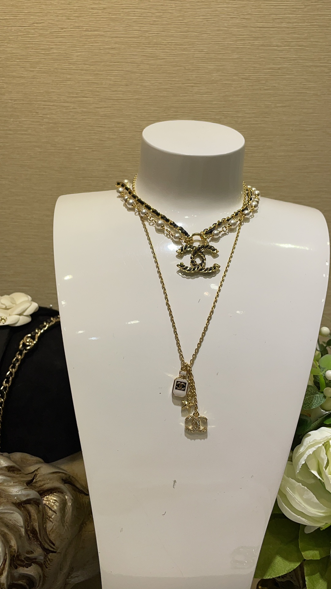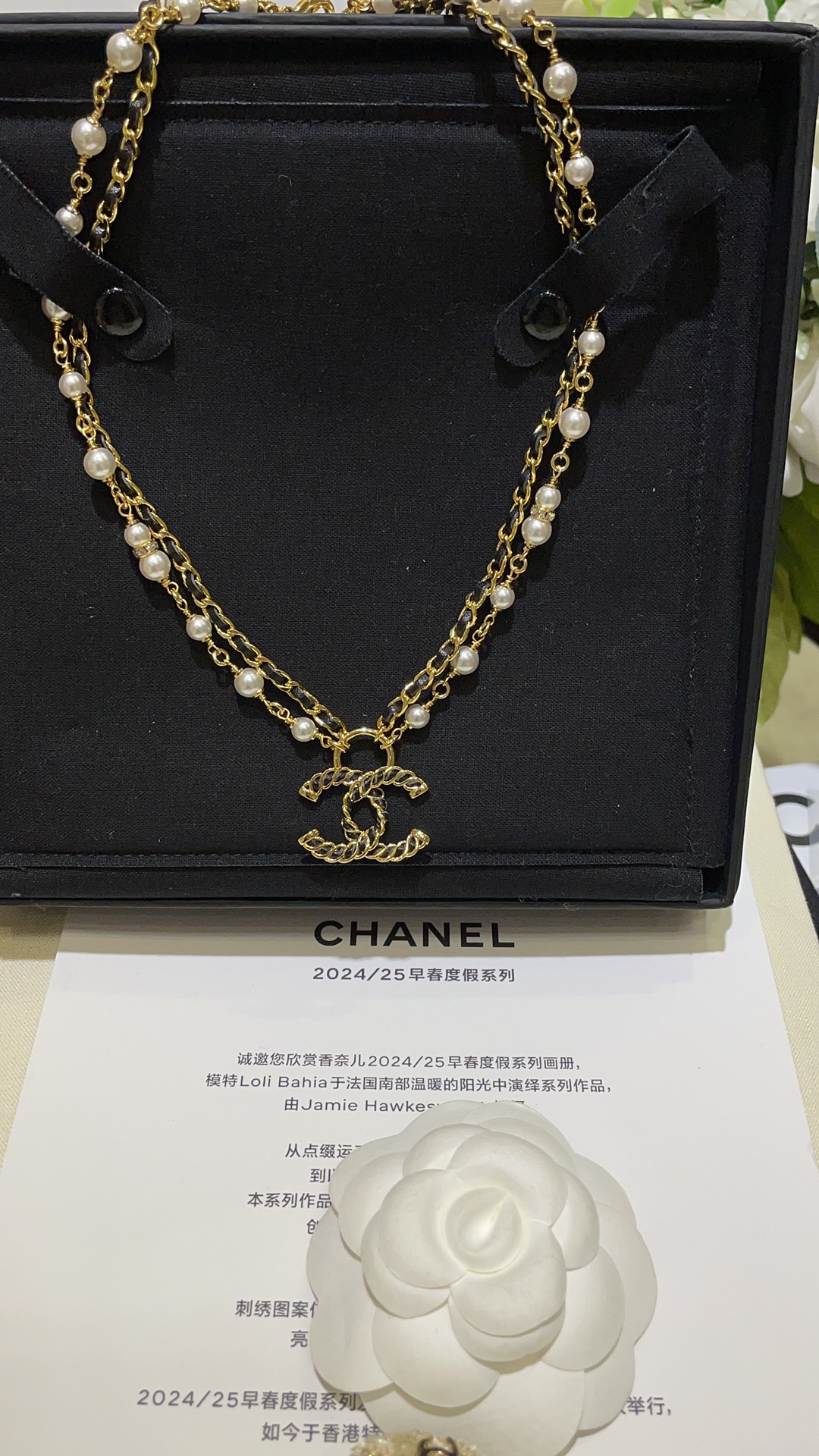 香奶奶 24K新款金色皮穿链双C珍珠项链