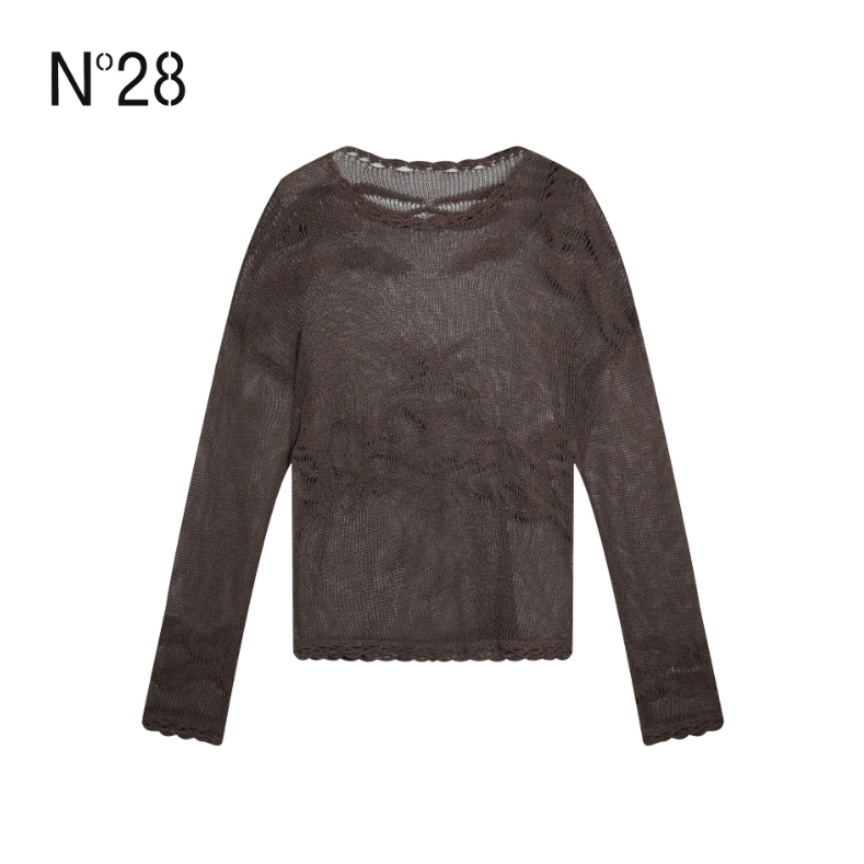 N°28 2025 秋季新款圆领常规法式镂空长袖套头百搭毛针织衫895381M257