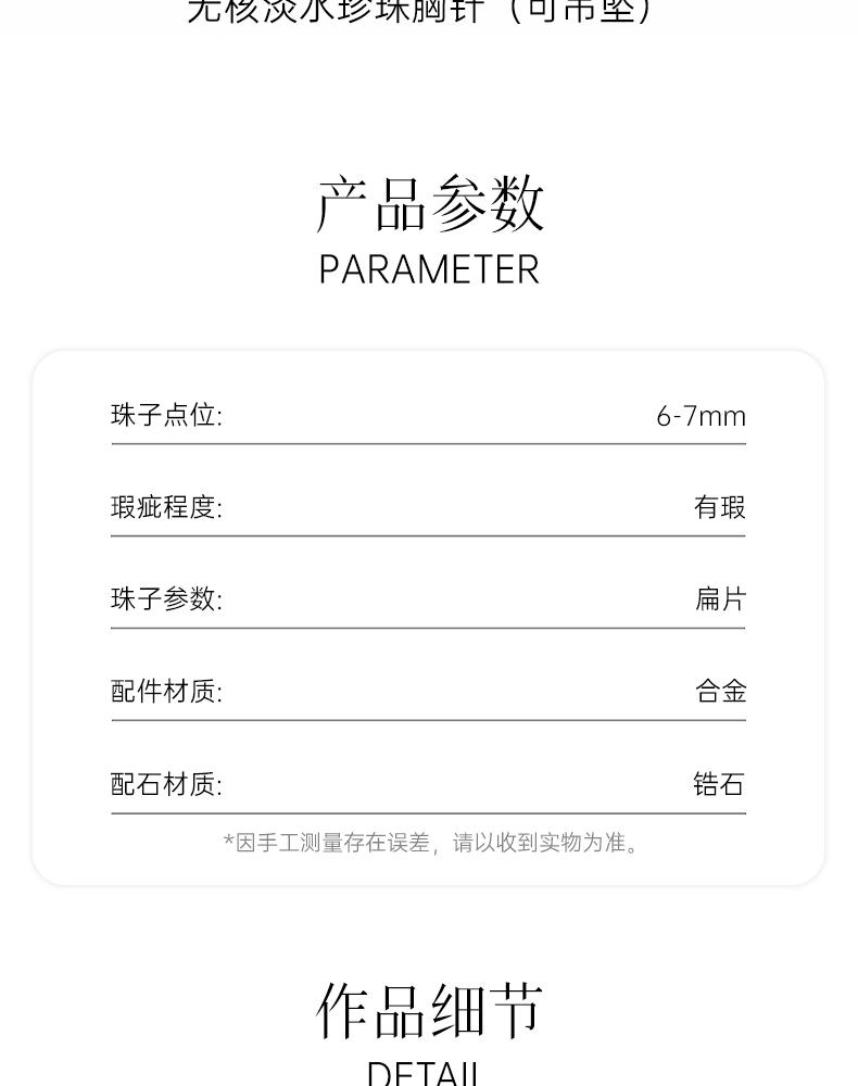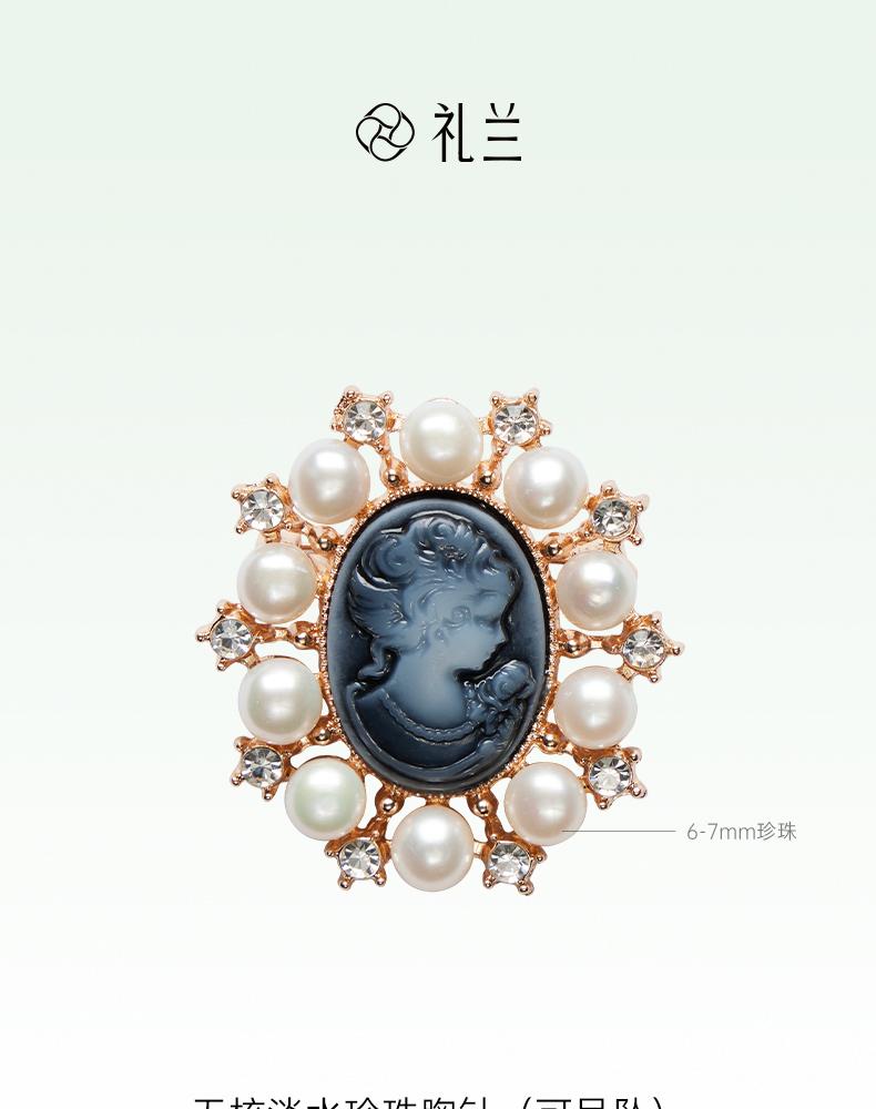 礼兰 无核淡水珍珠胸针(可吊坠)6-7mm 古典气质装饰