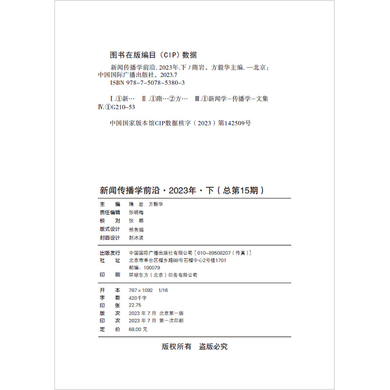 新闻传播学前沿·2023年·上(中国国际广播出版社)