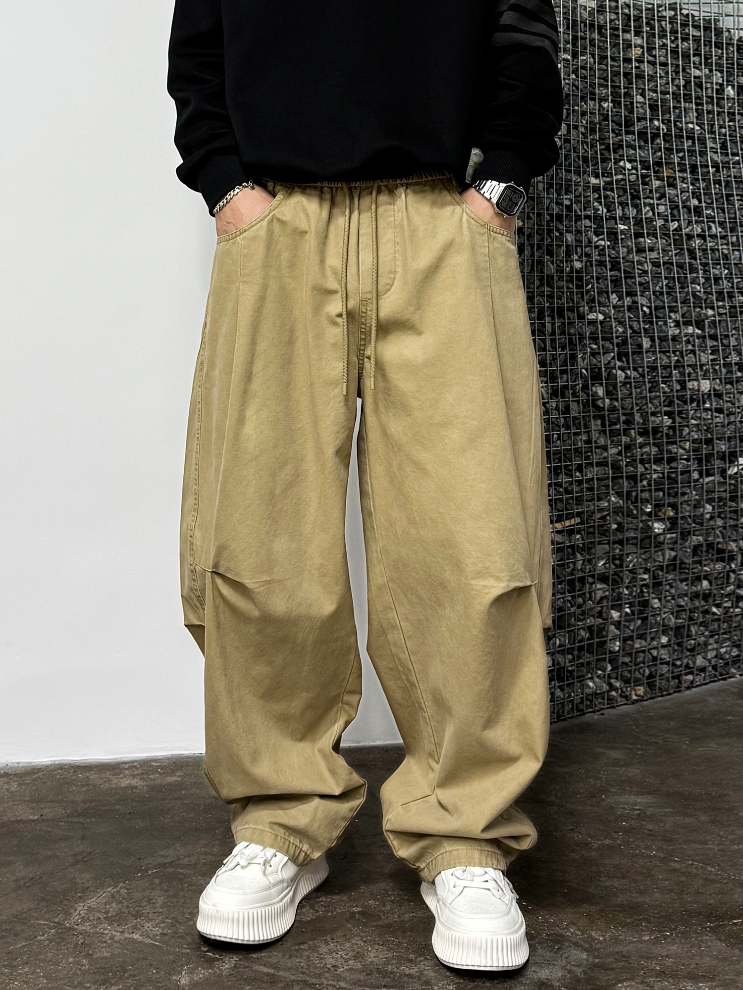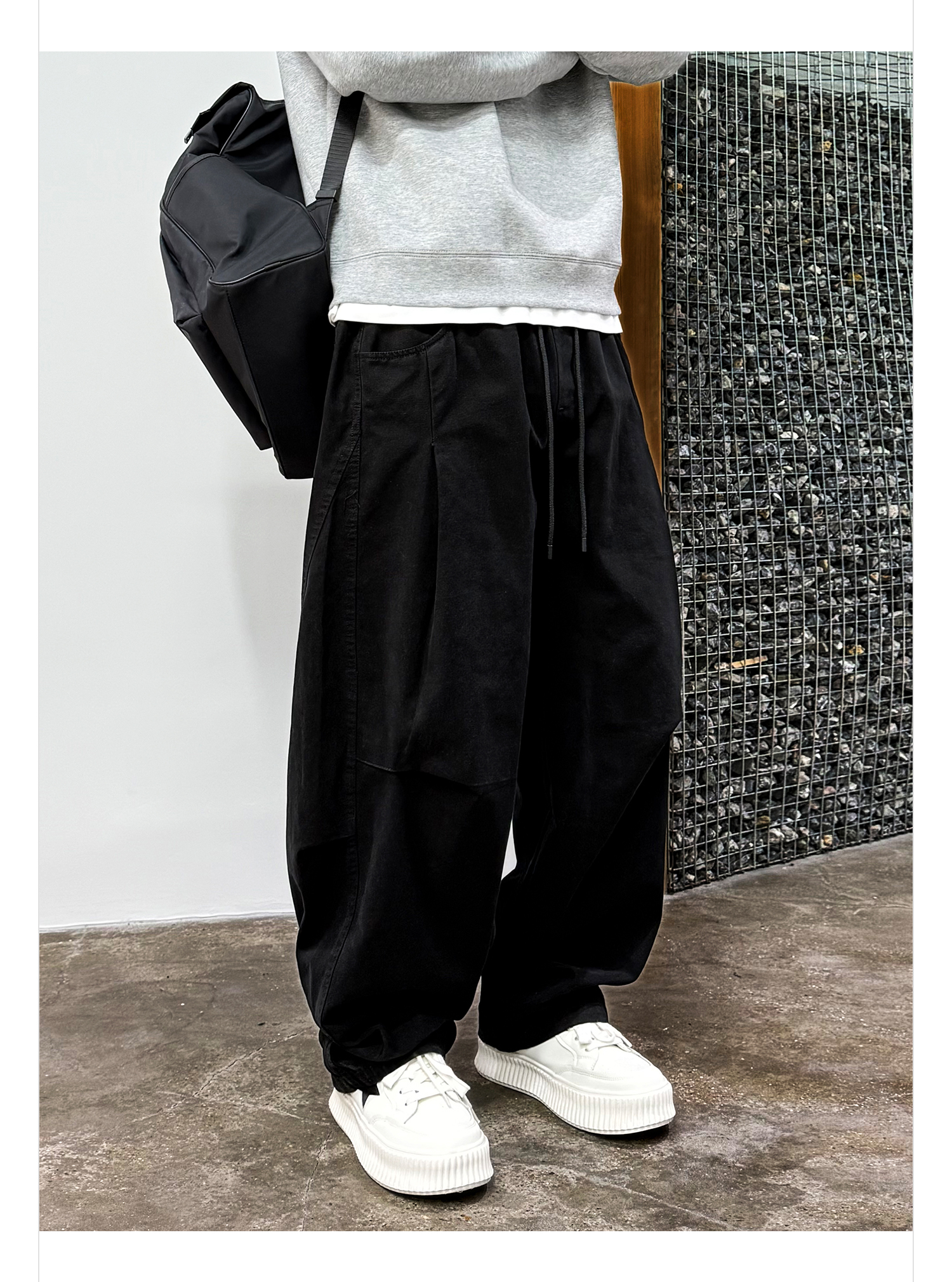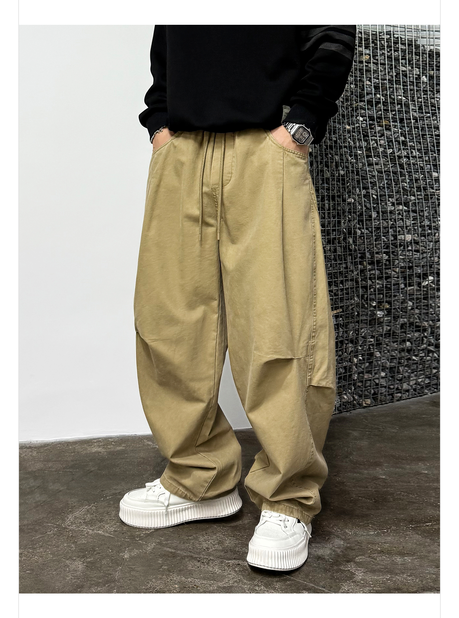 徐太浪【褶皱感 加绒加厚】大码哈伦裤男春秋宽松百搭纯色休闲裤