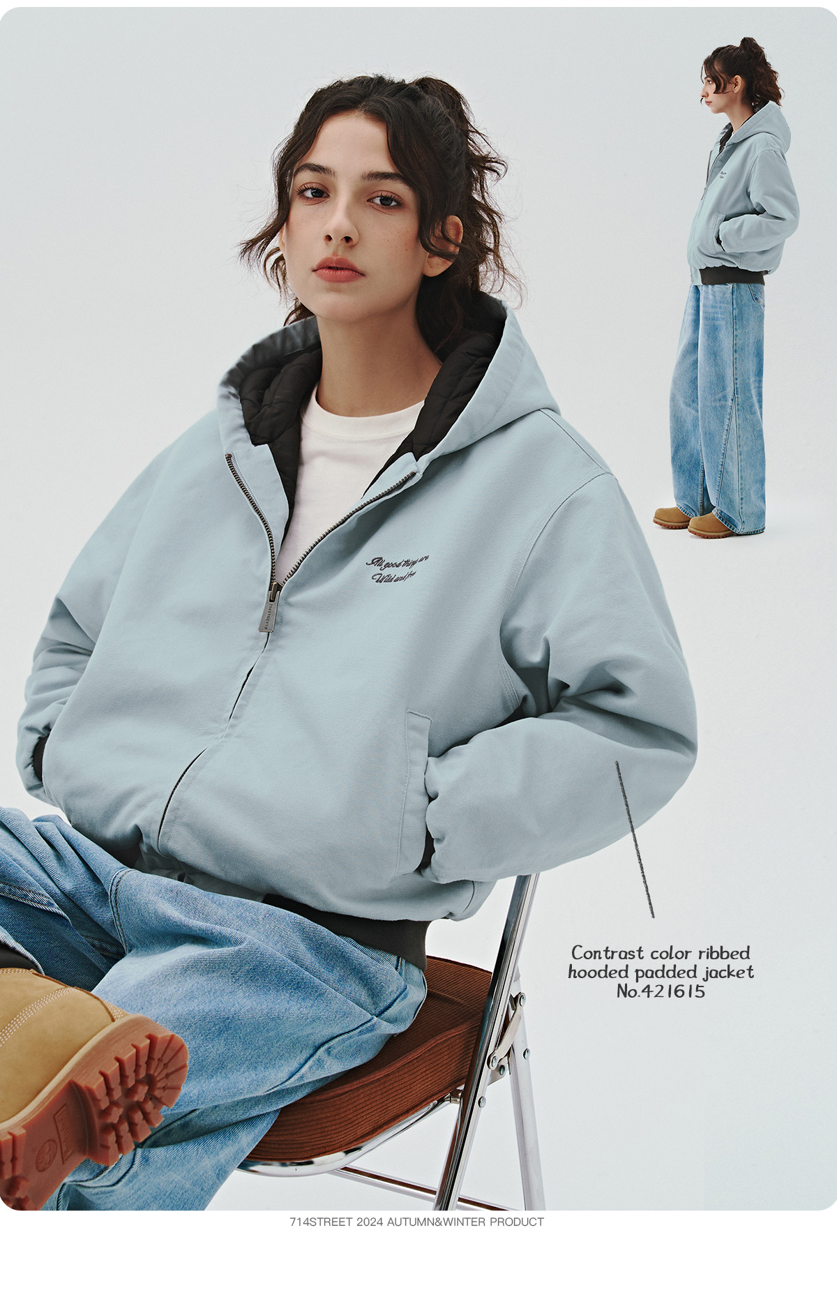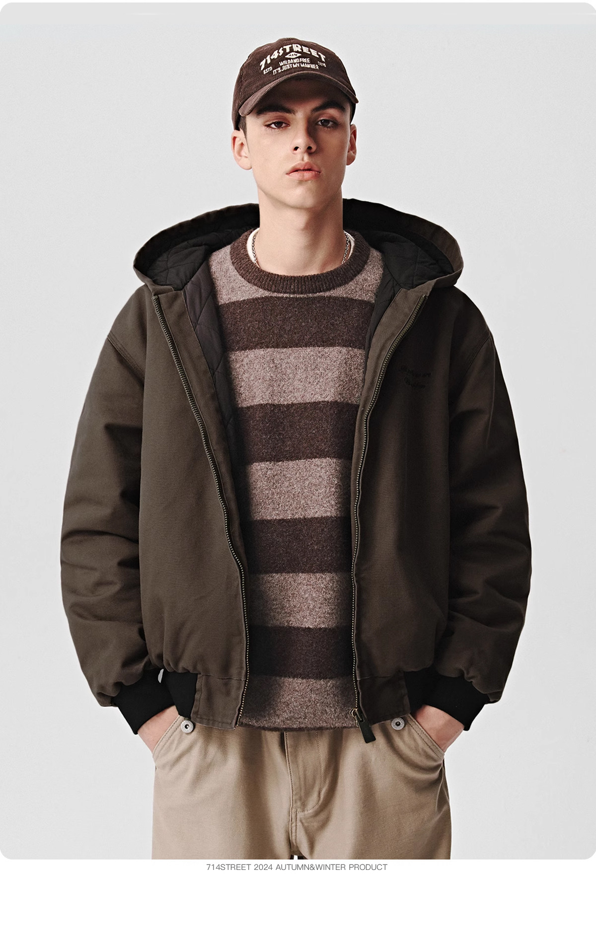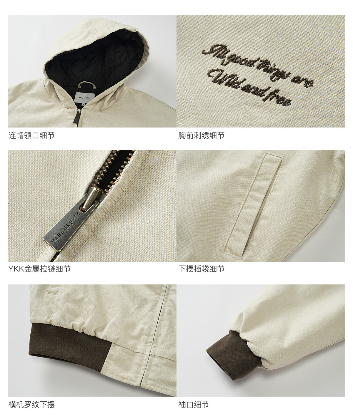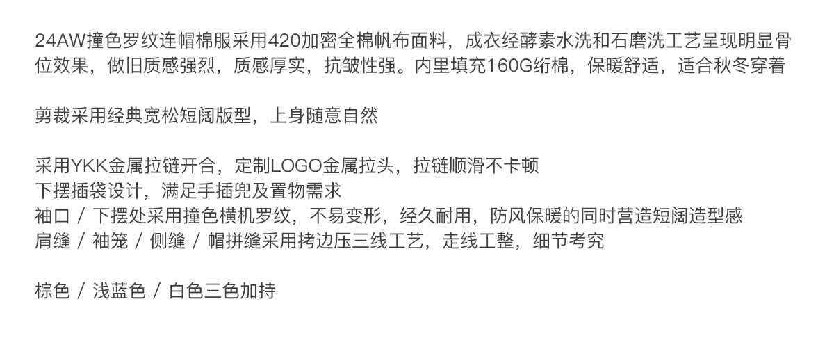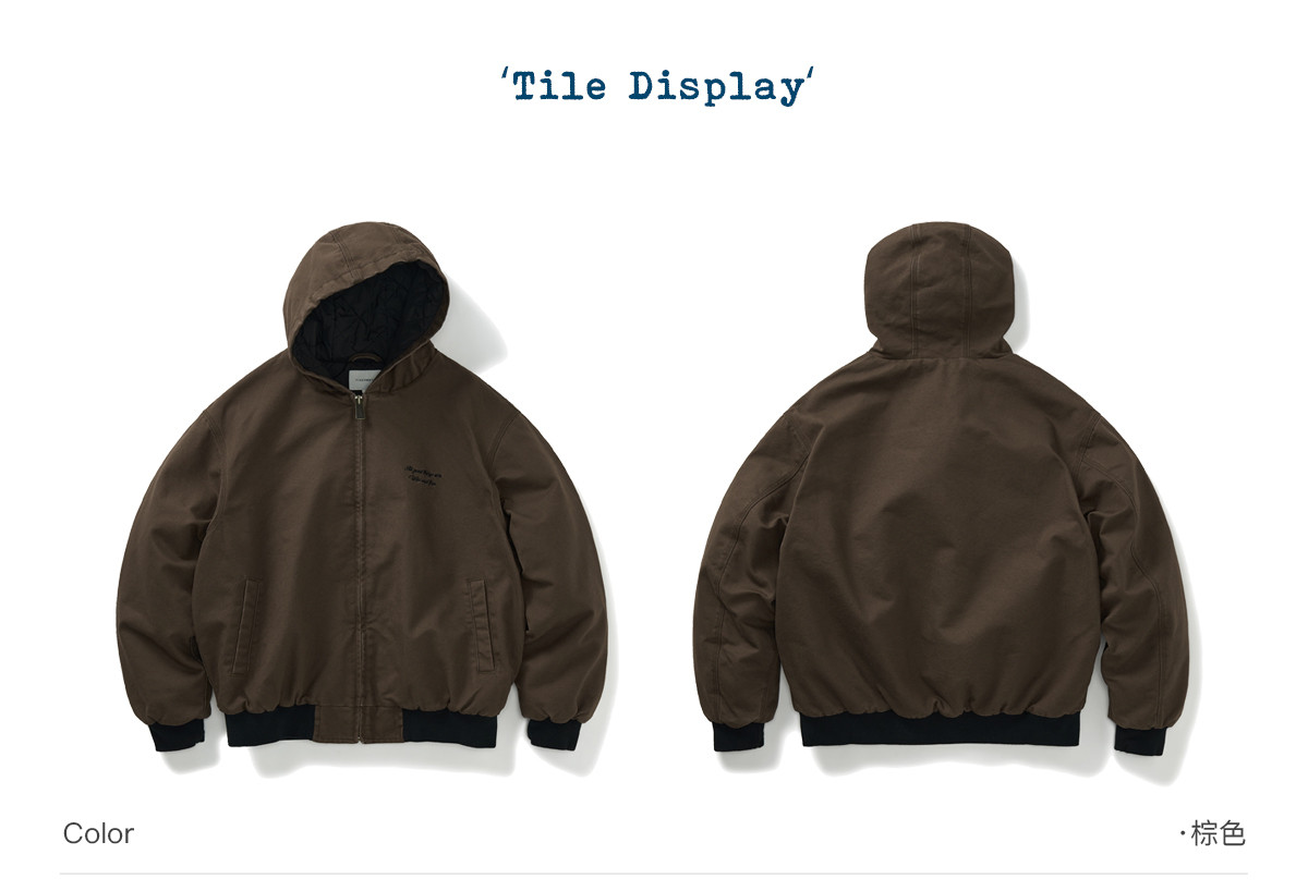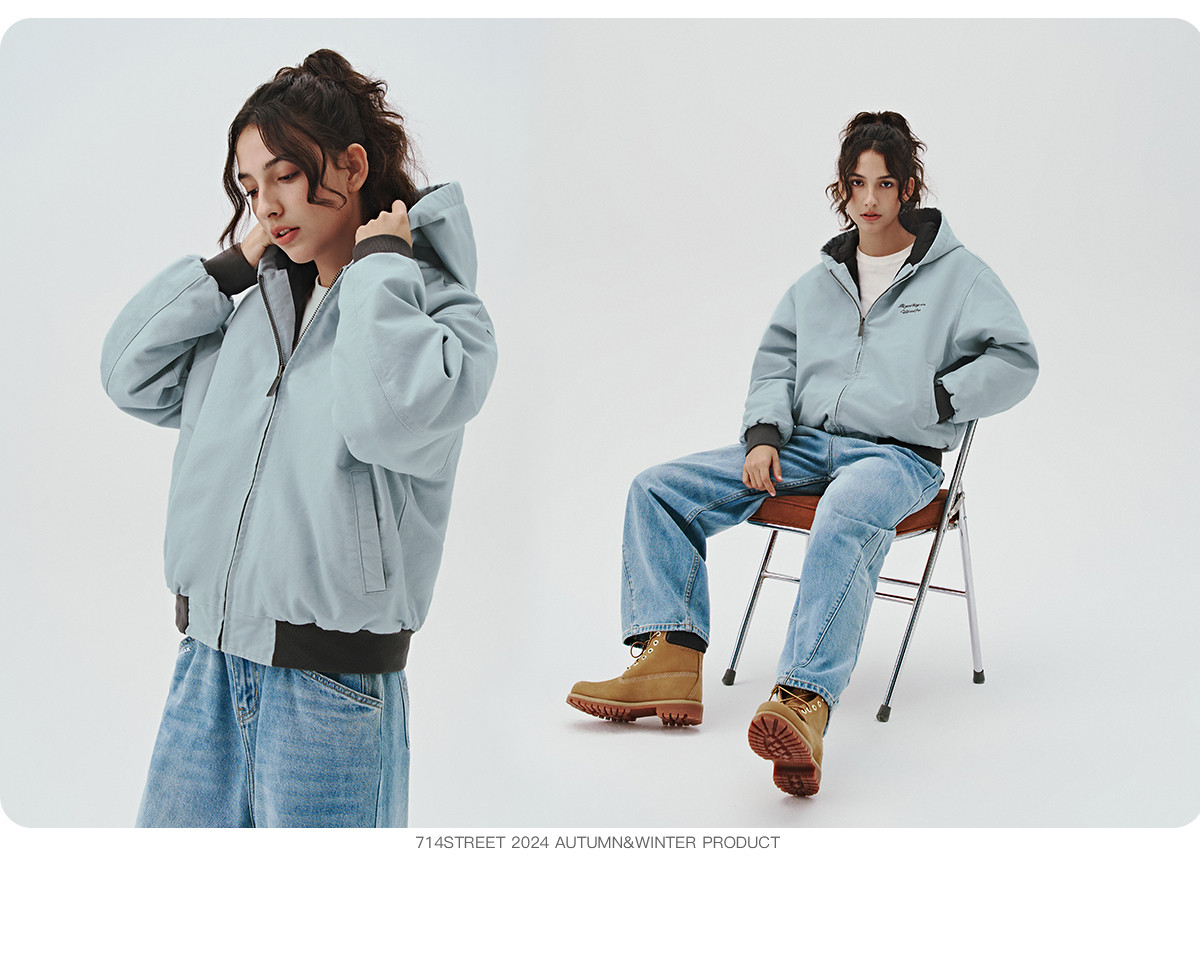714street秋冬新款撞色棉服美式复古连帽棉外套男女宽松工装夹克
