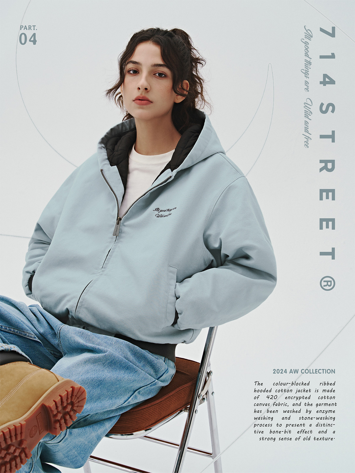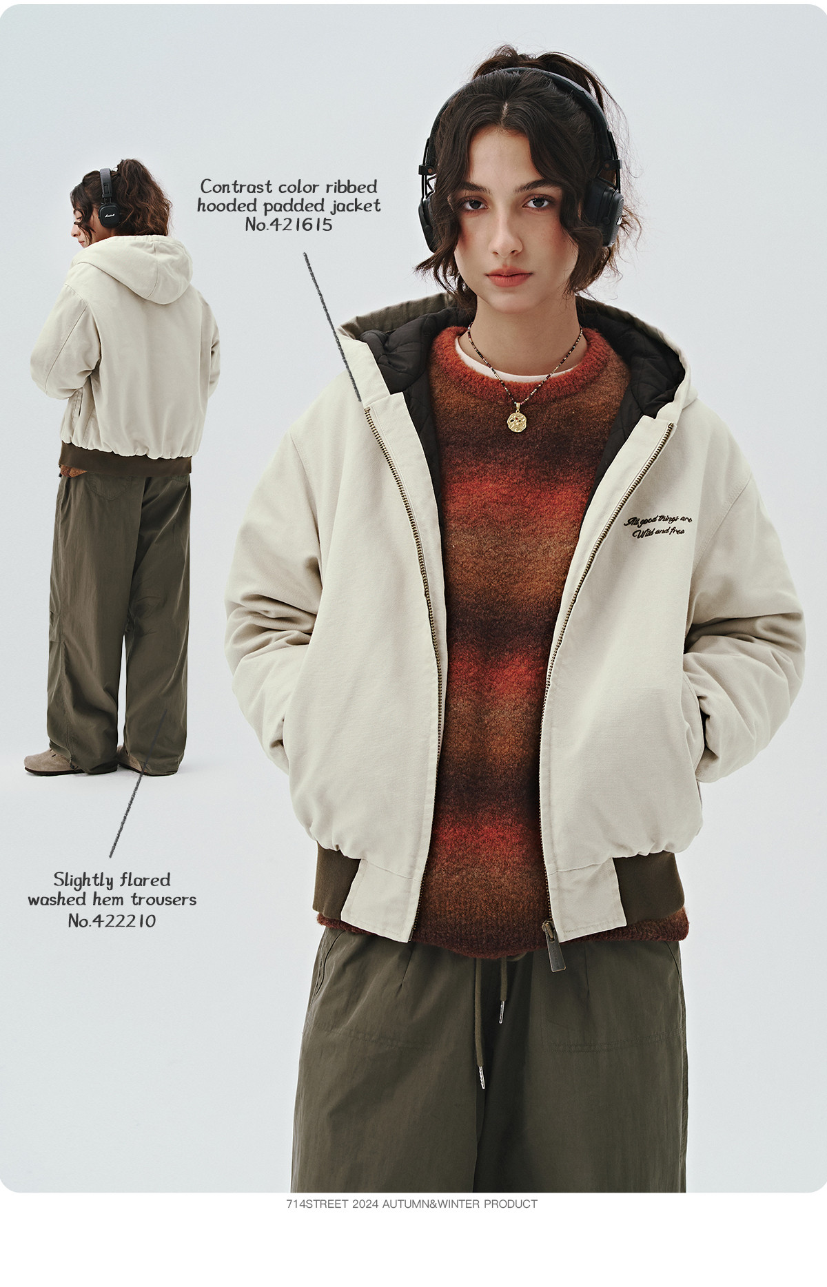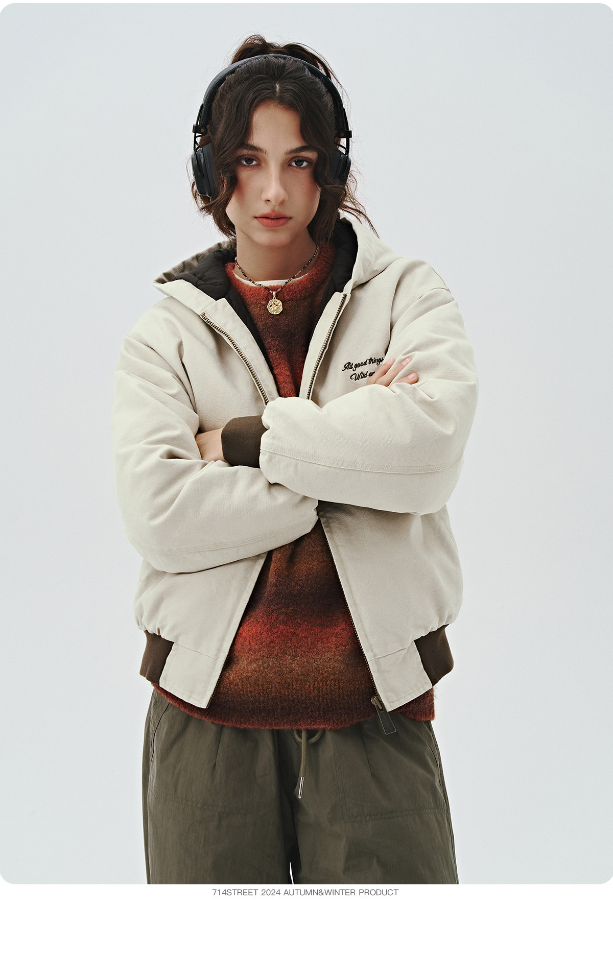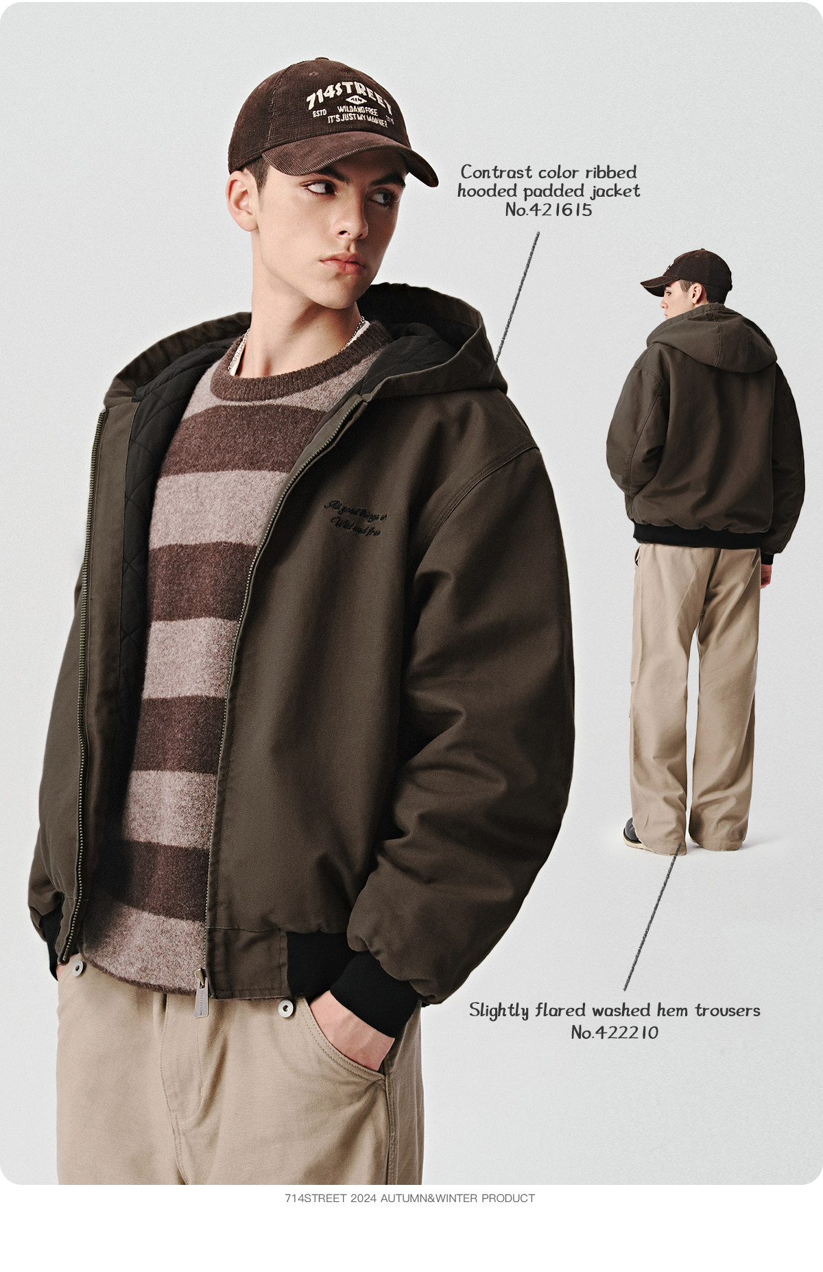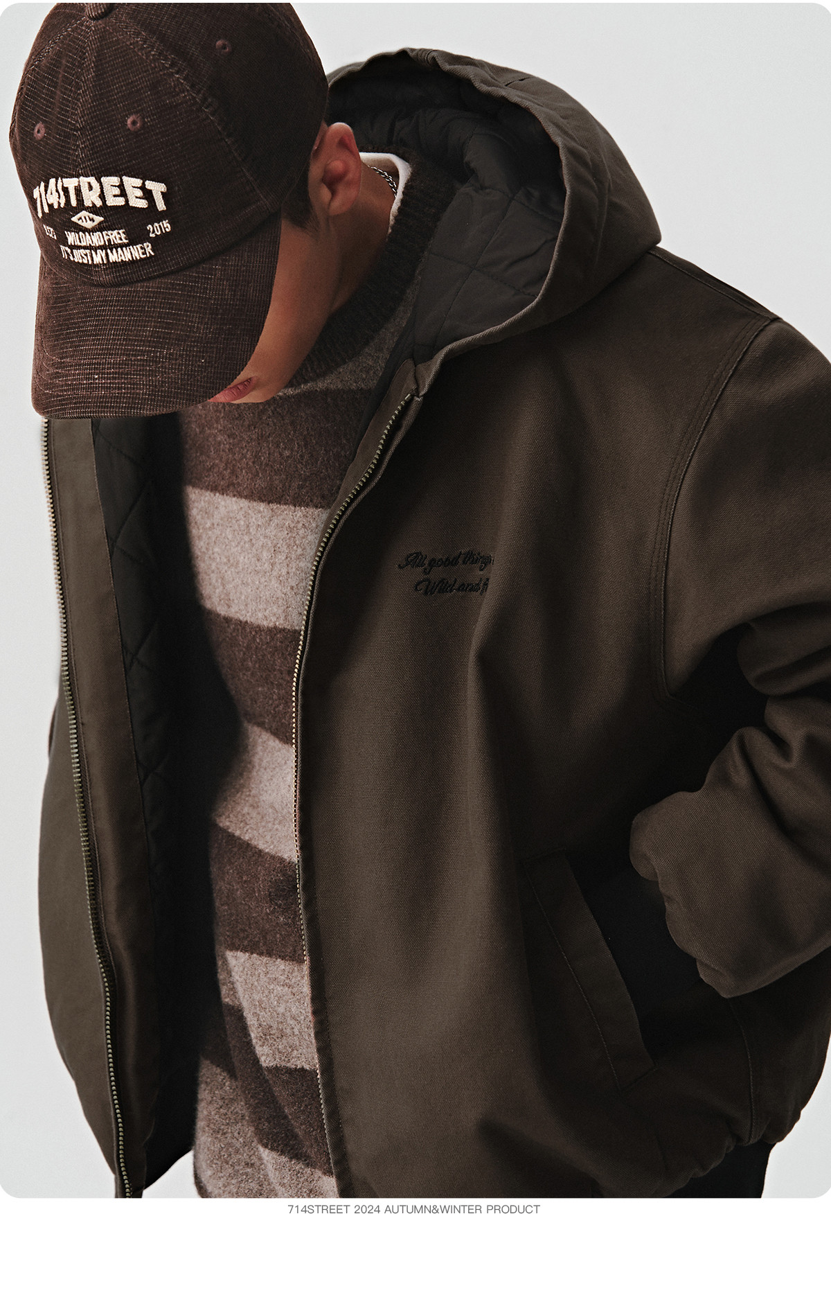 714street秋冬新款撞色棉服美式复古连帽棉外套男女宽松工装夹克