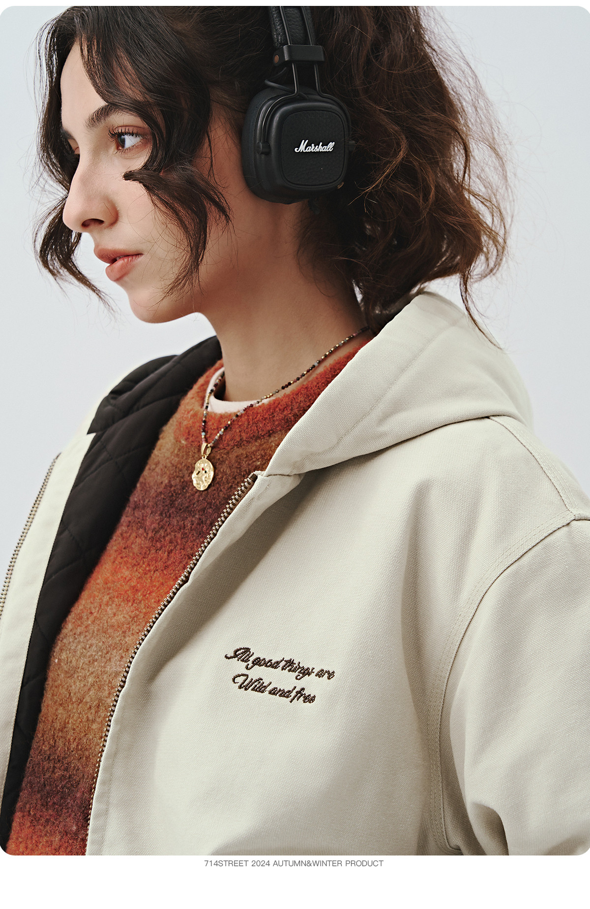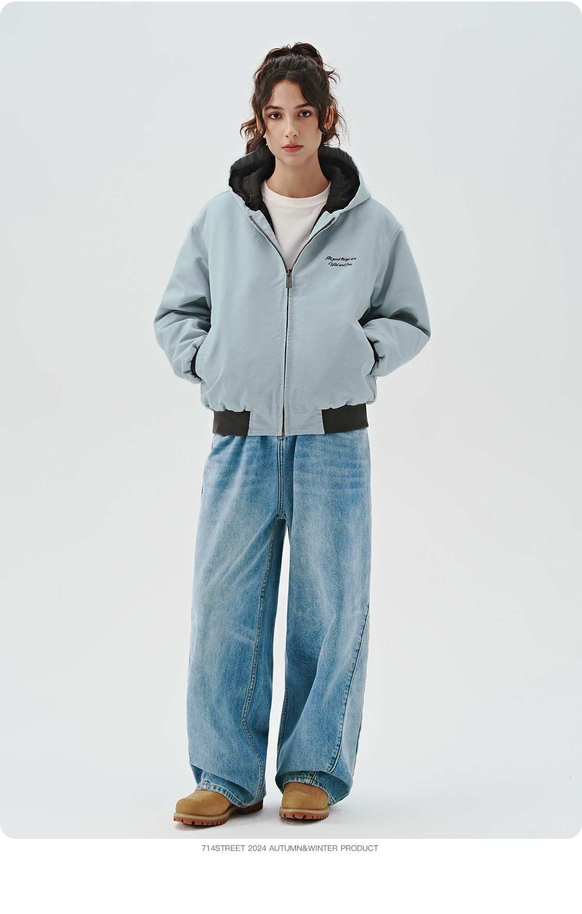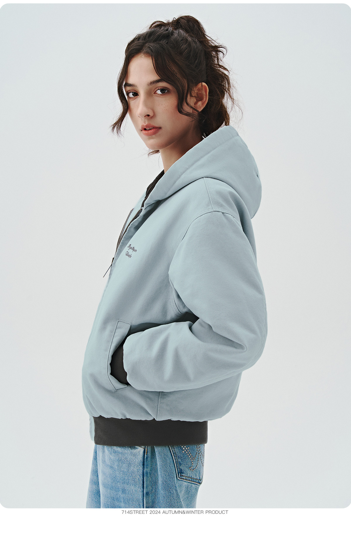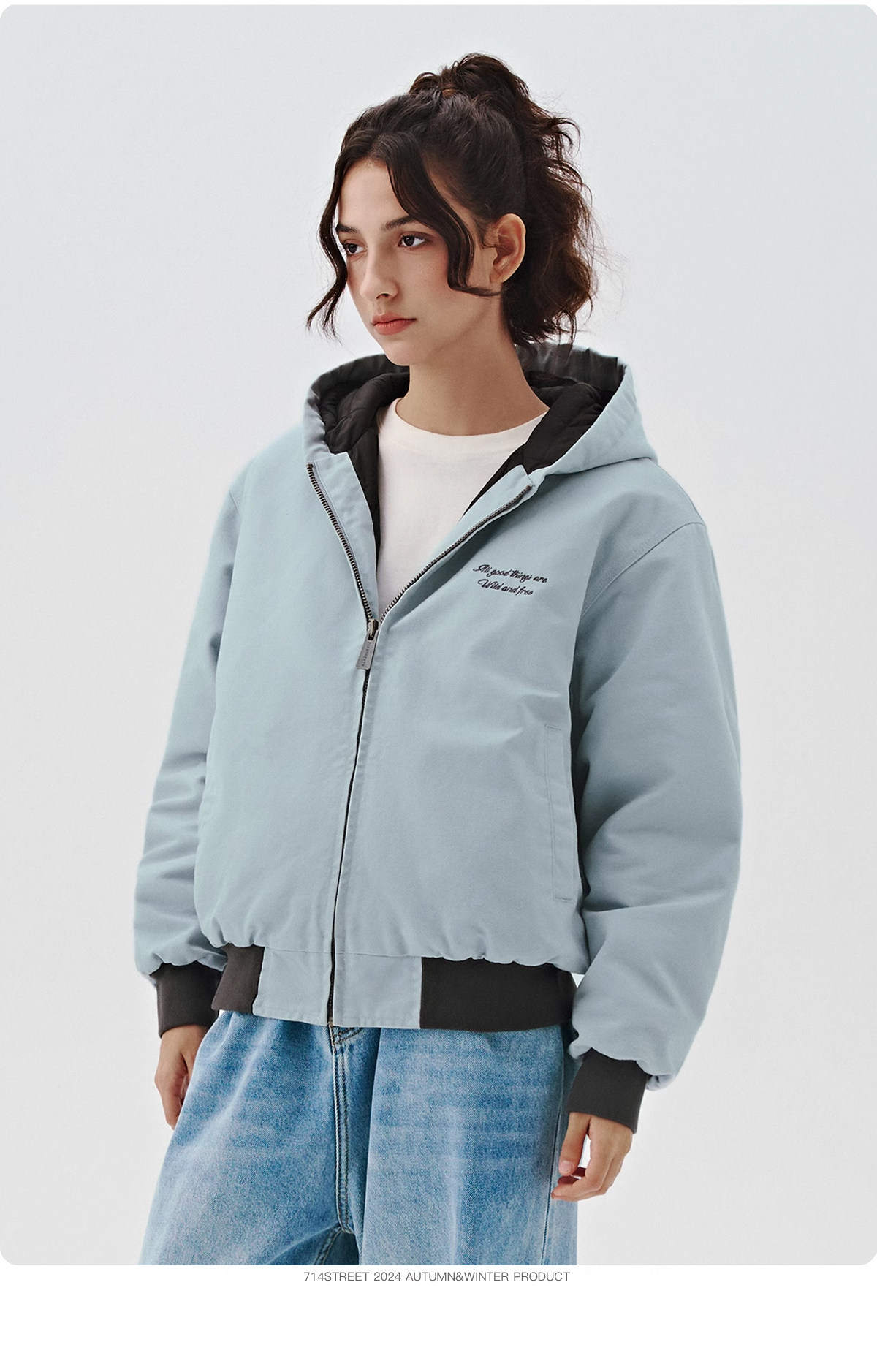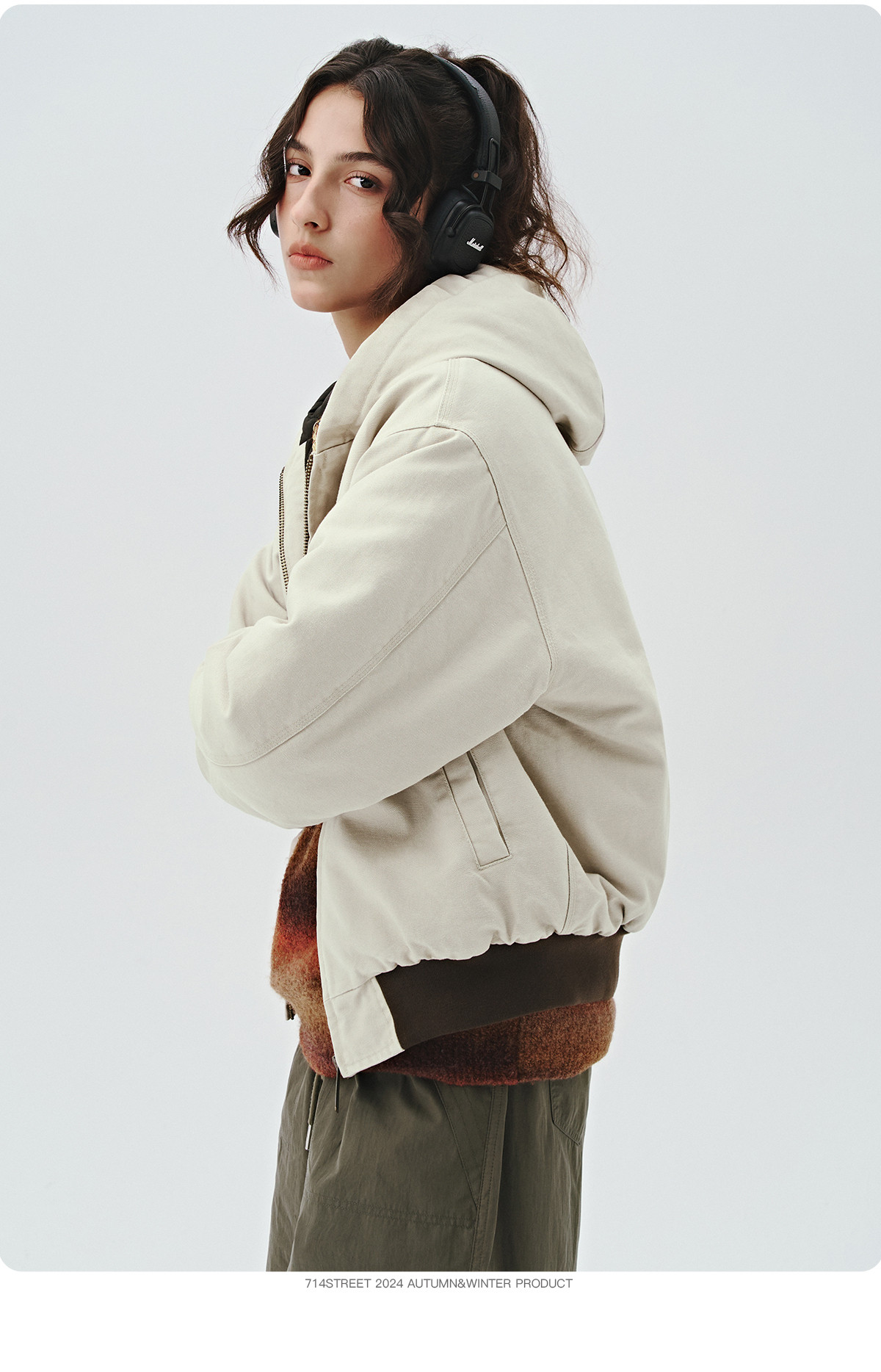714street秋冬新款撞色棉服美式复古连帽棉外套男女宽松工装夹克