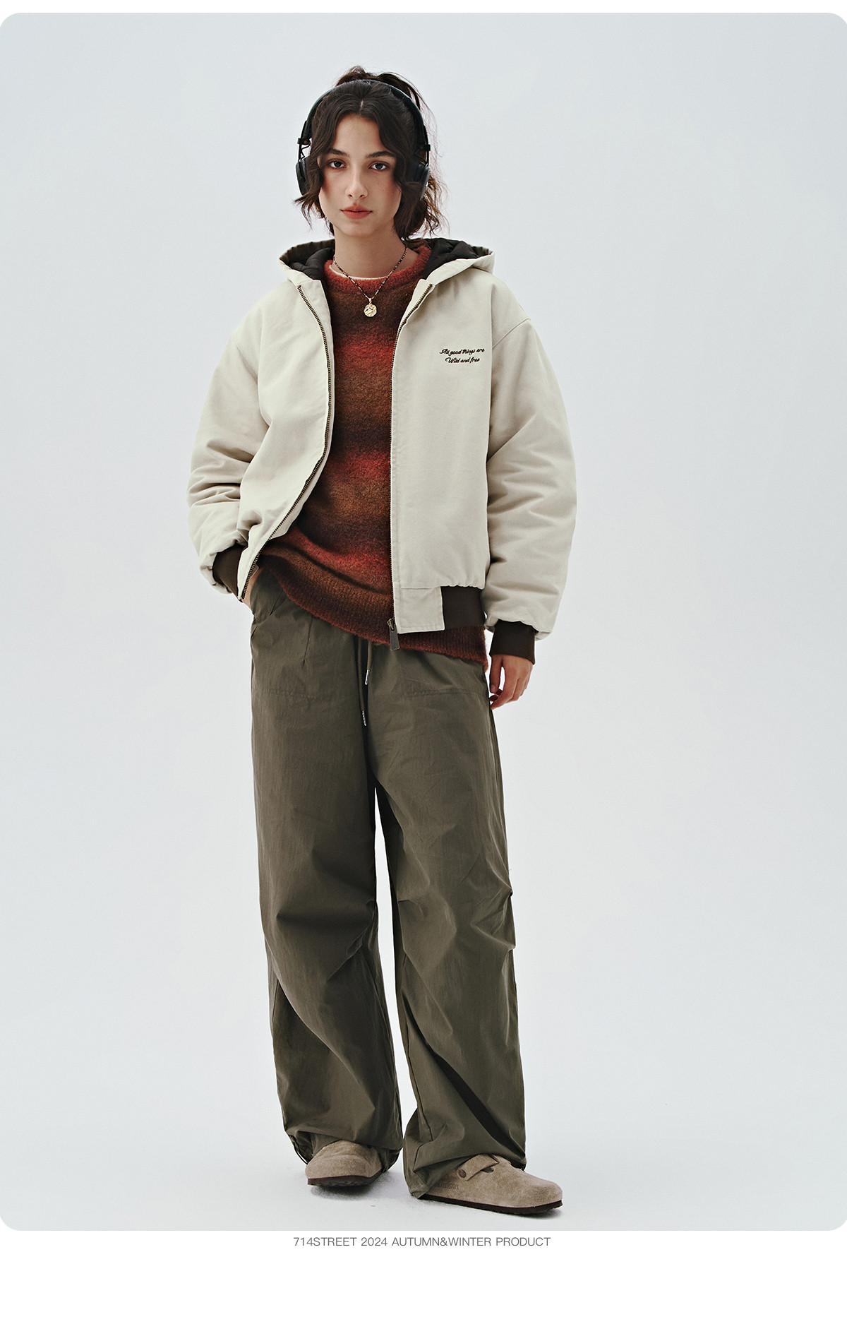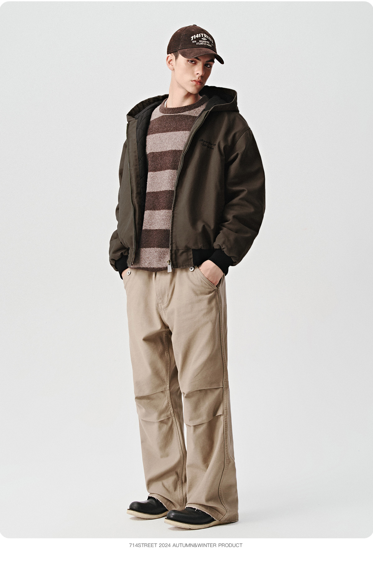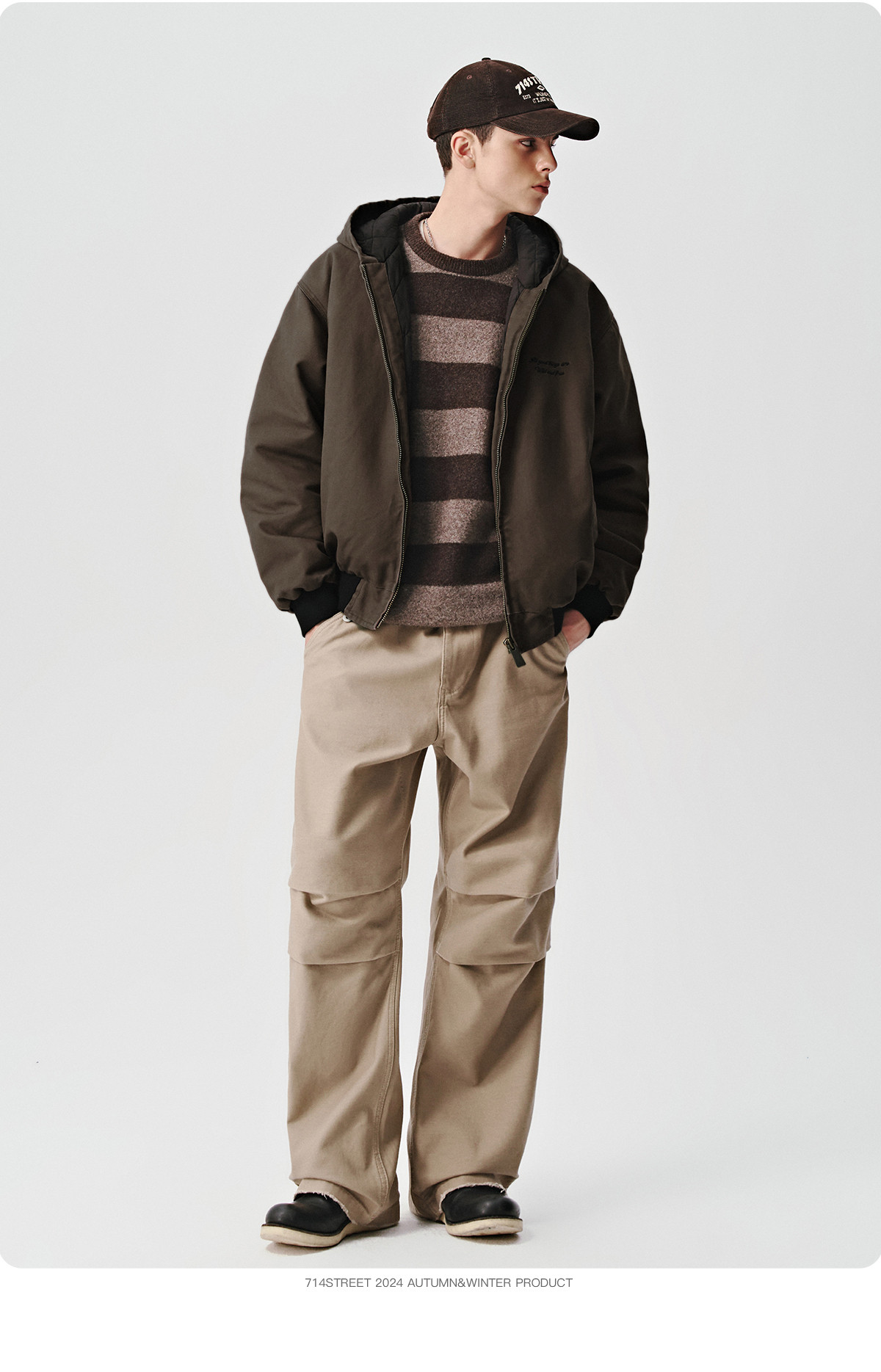 714street潮流百搭男士裤子2025秋季新款直筒裤宽松打褶毛圈卫裤