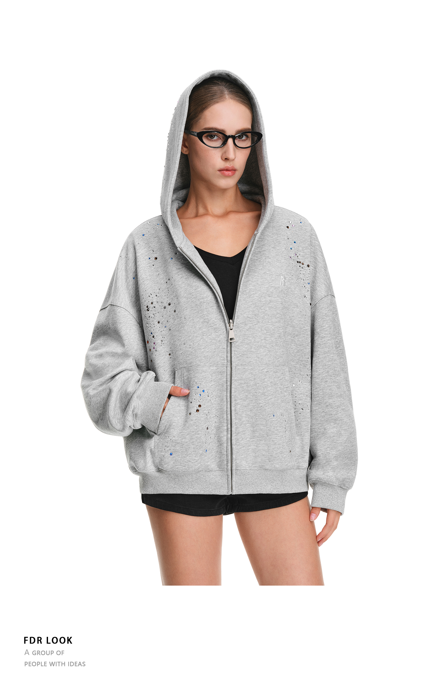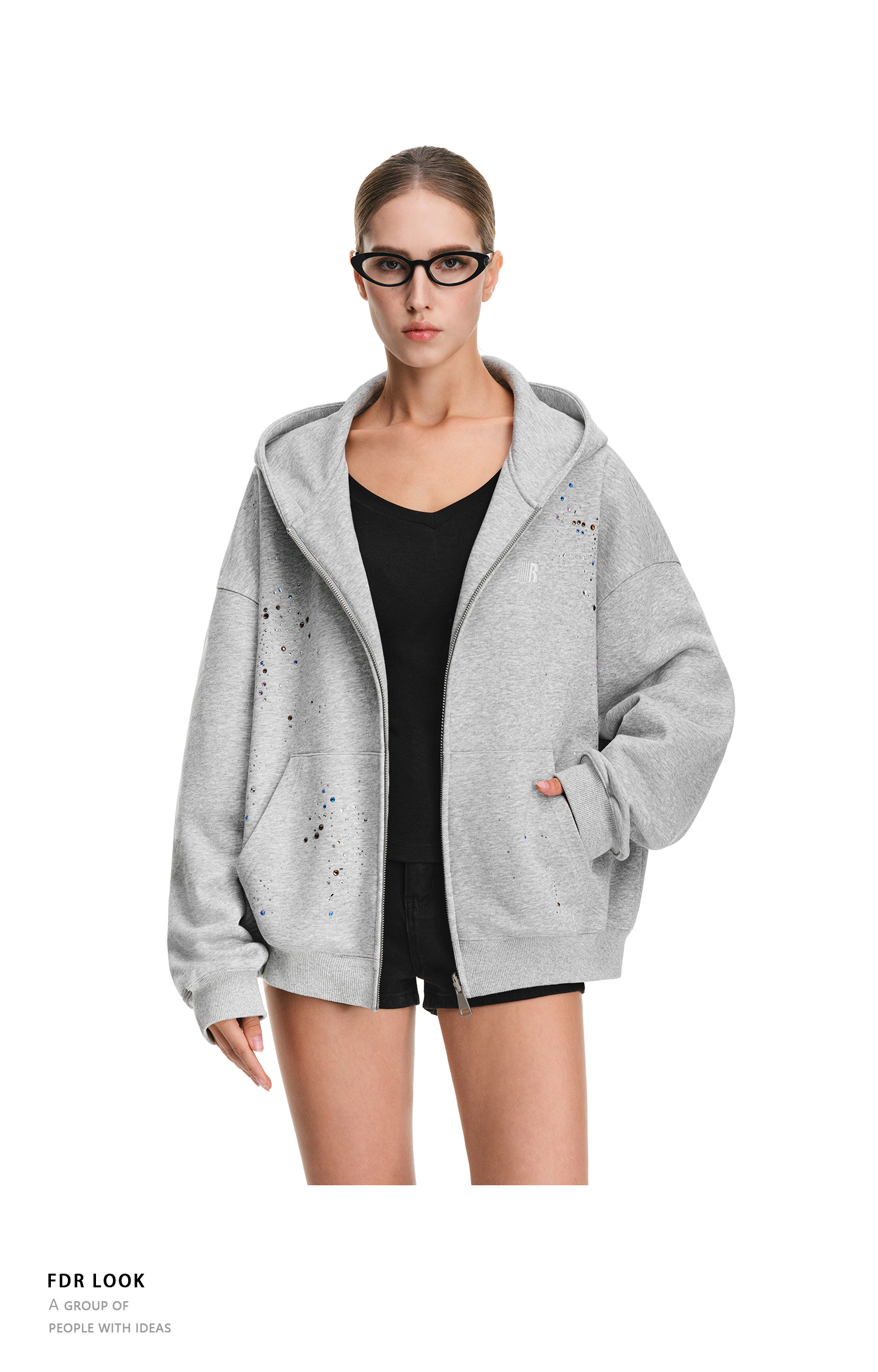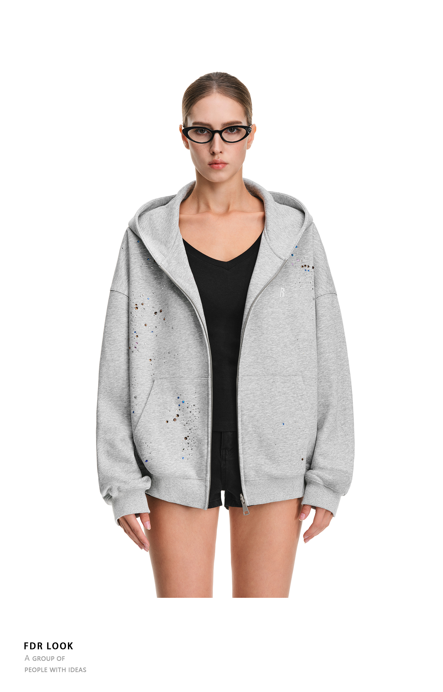 FDR官方店 美式烫钻卫衣外套女款秋季情侣装宽松连帽拉链开衫男款