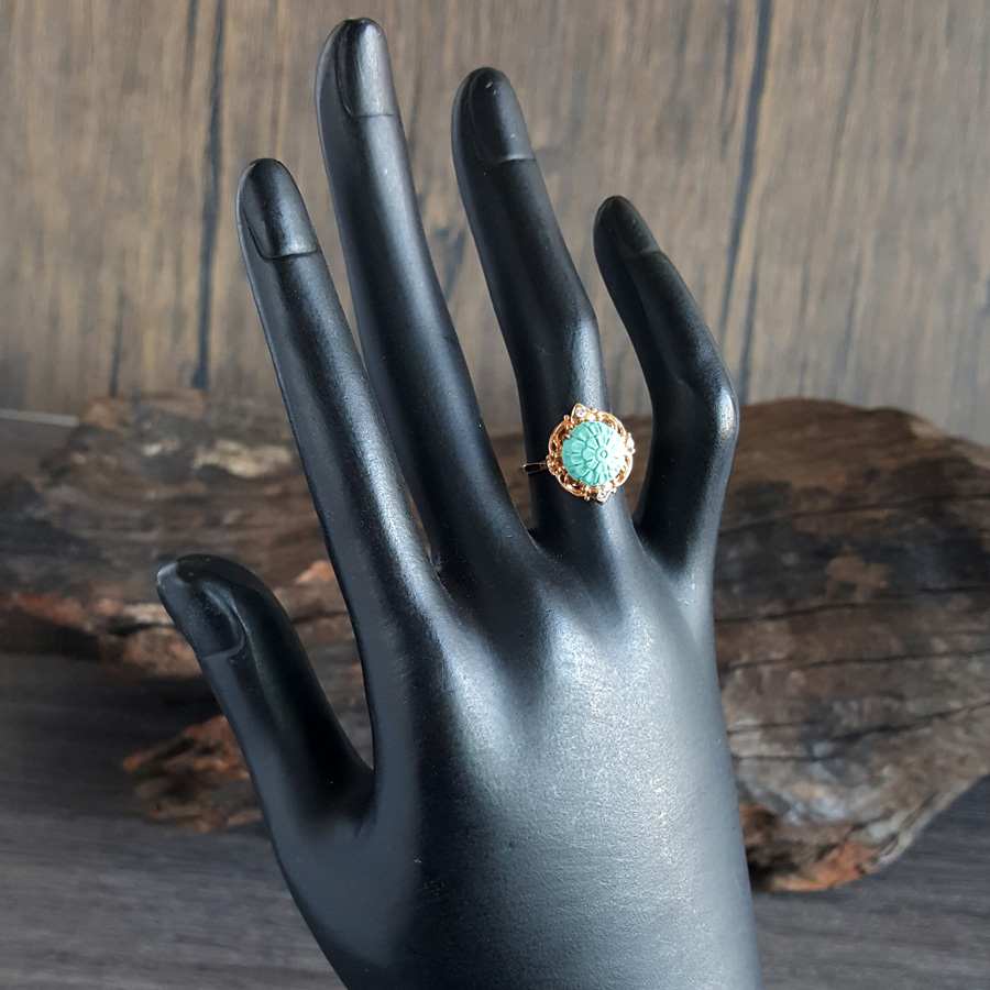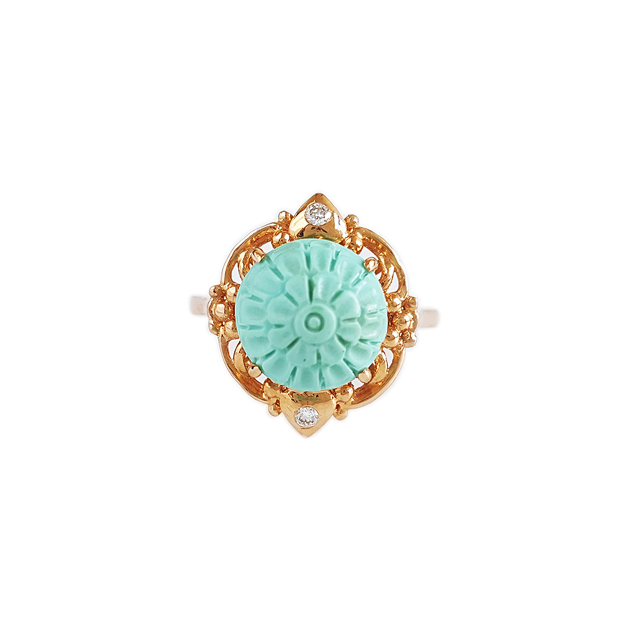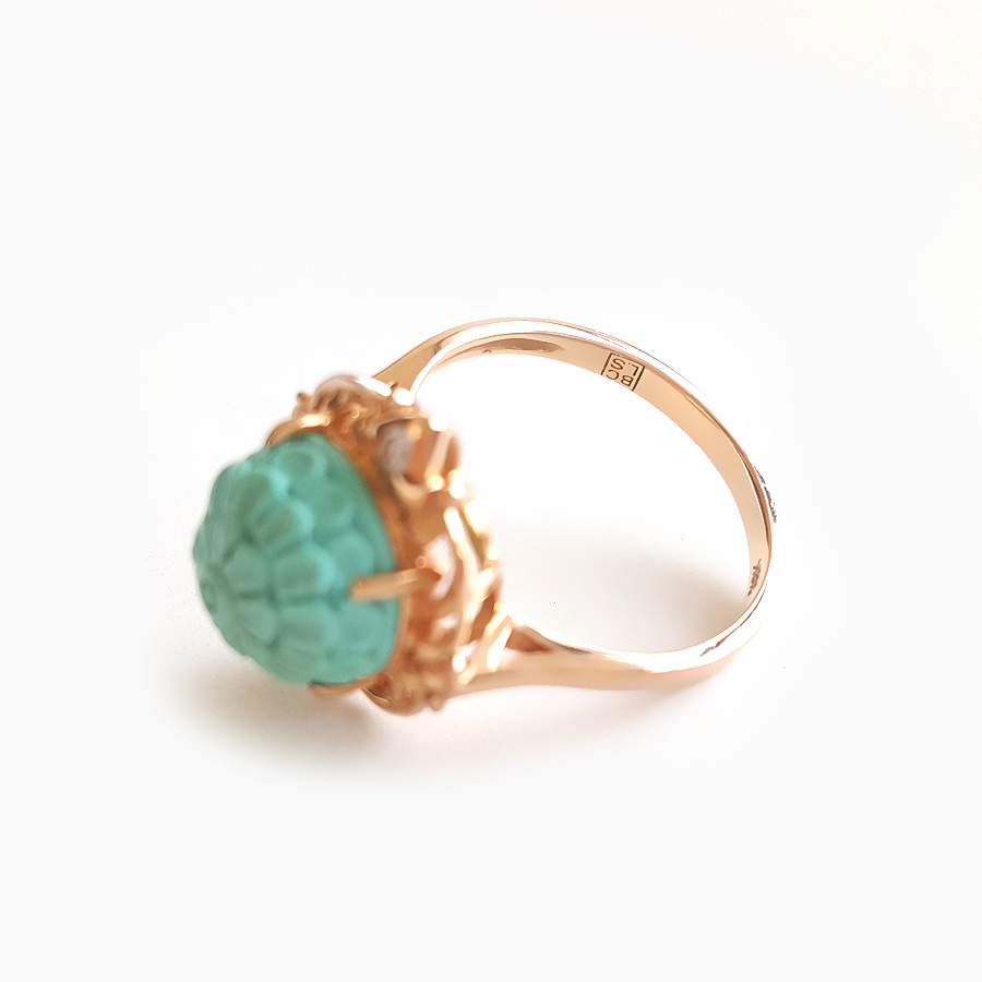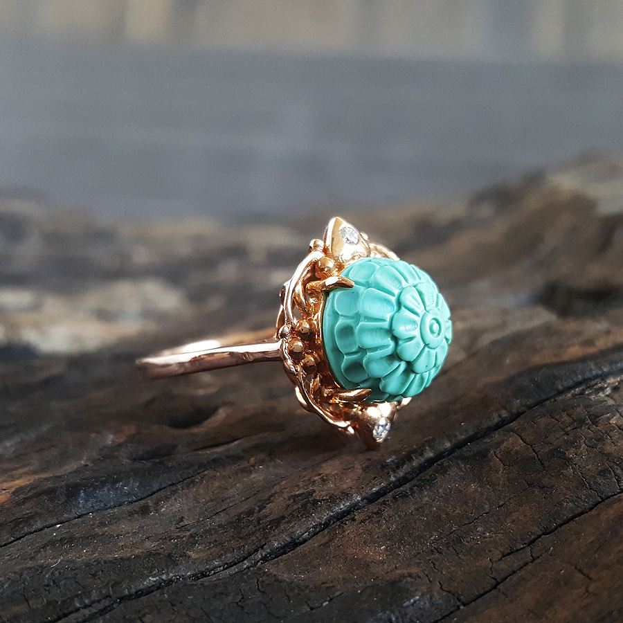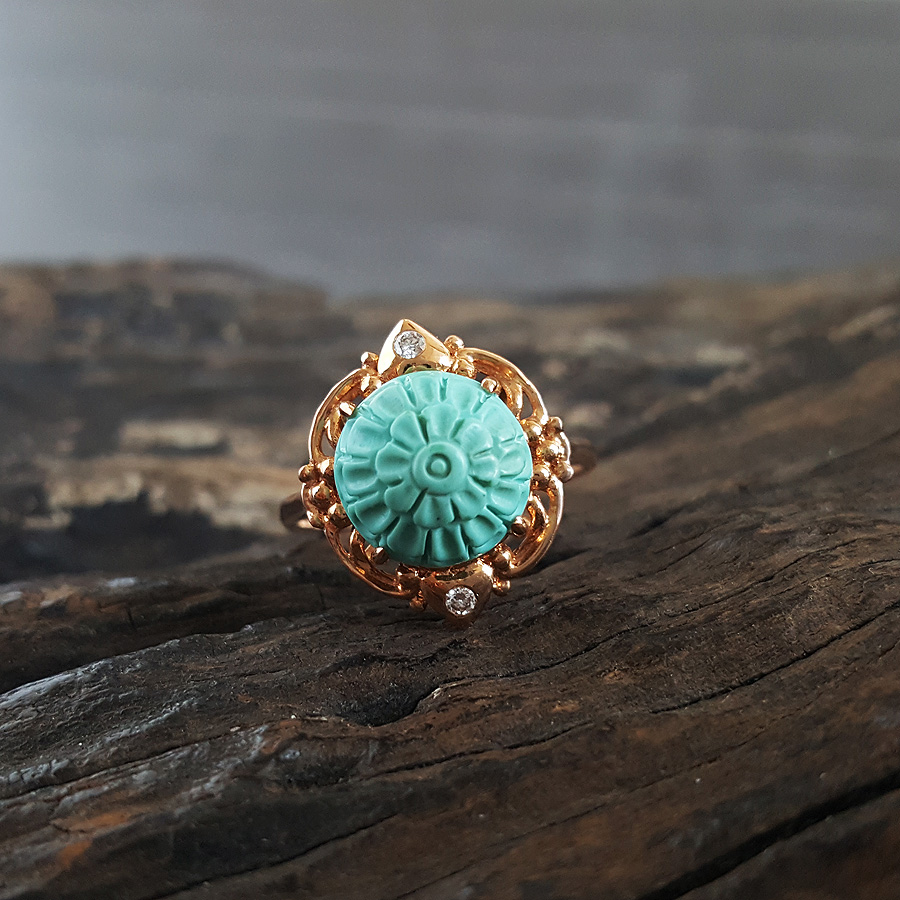 【天然正品】AU750玫瑰金镶钻镶天然高瓷高蓝原矿绿松石戒指 161223NJM31