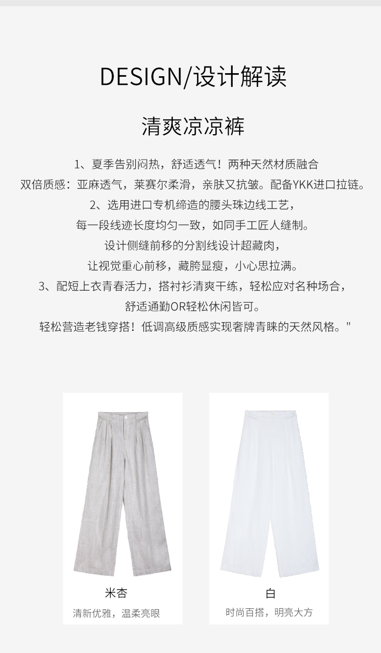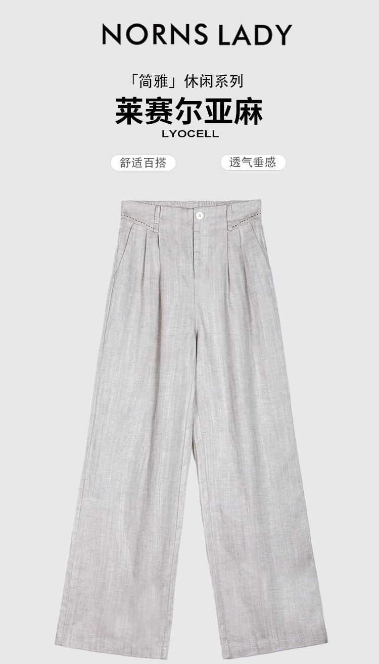 NORNS LADY诺恩 夏季莱赛尔亚麻混纺休闲裤 透气舒适直筒长裤 T25KK11370【清仓不退不换】