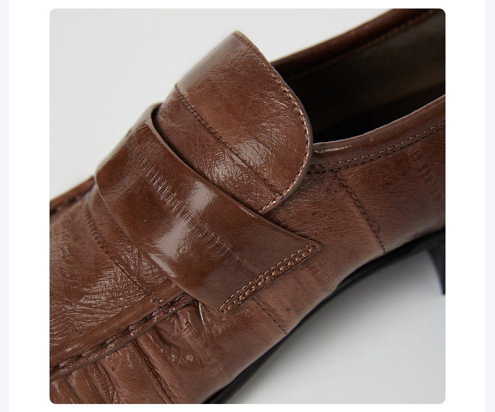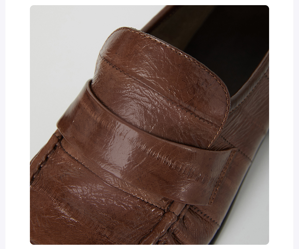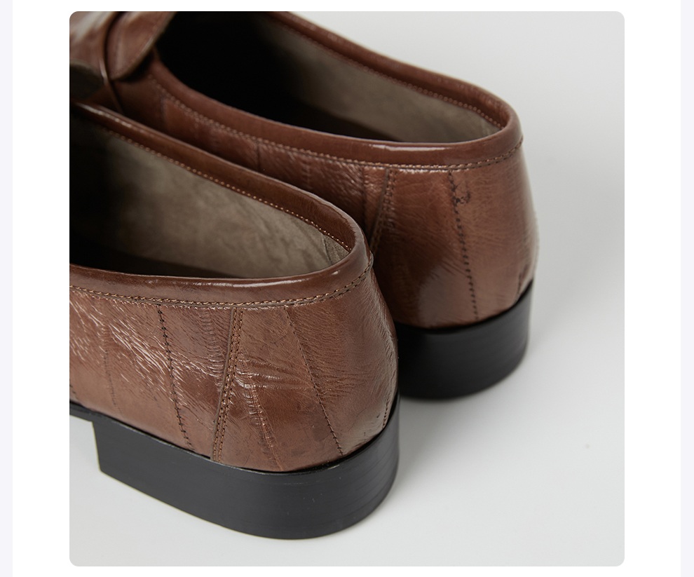 ROMI STUDIO“英伦复古”鳗鱼皮拼羊反绒褶皱软面乐福鞋RW24LP31130