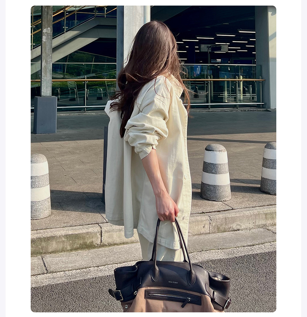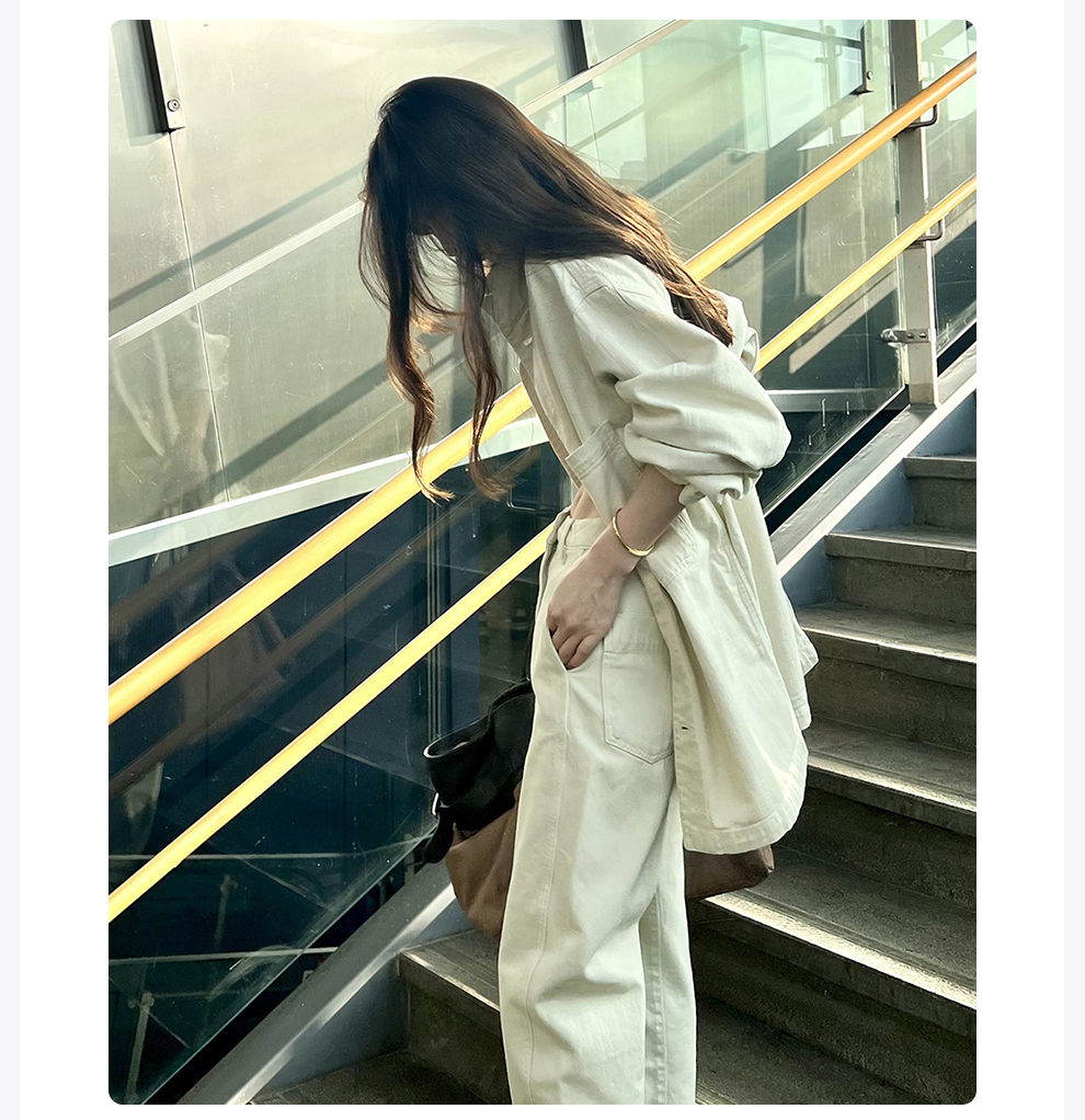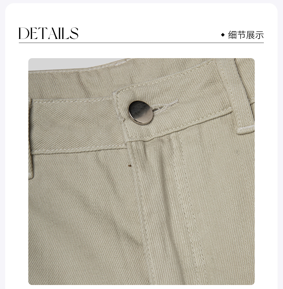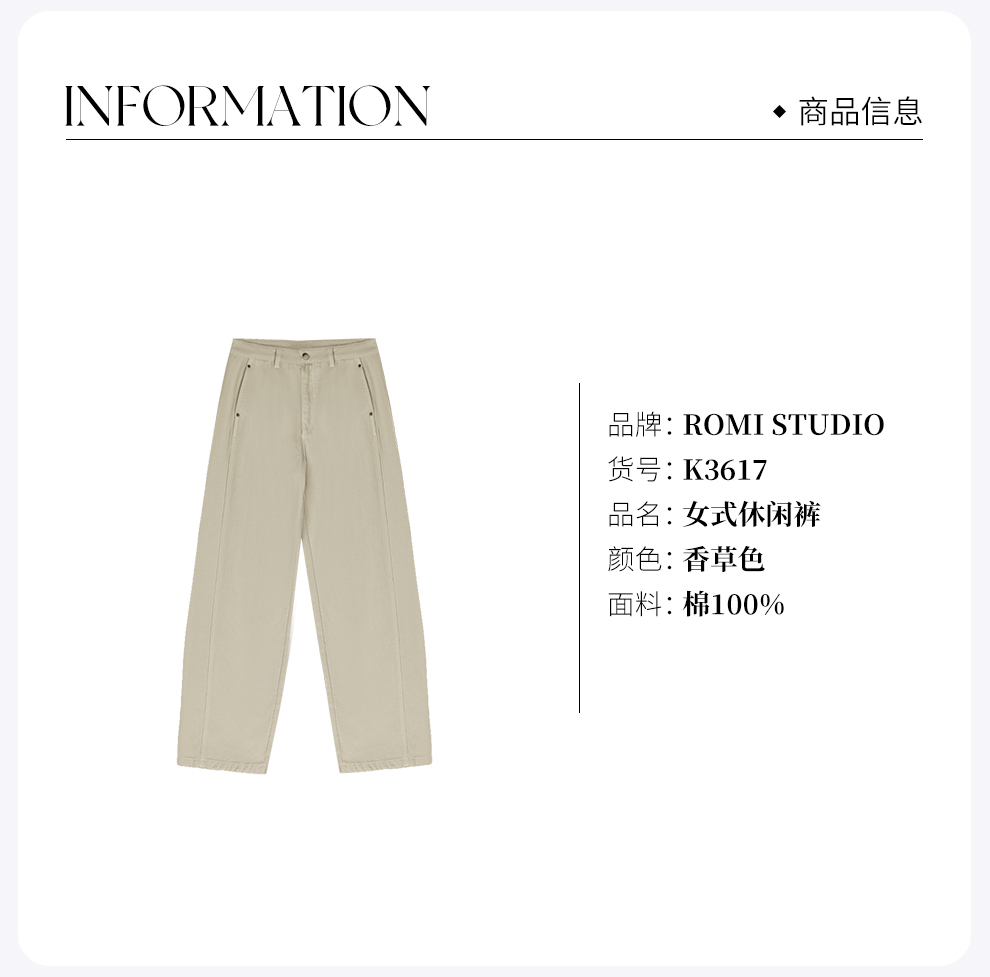 ROMI STUDIO“随性简约”100%斜纹棉高腰宽松香草色牛仔直筒裤K3617
