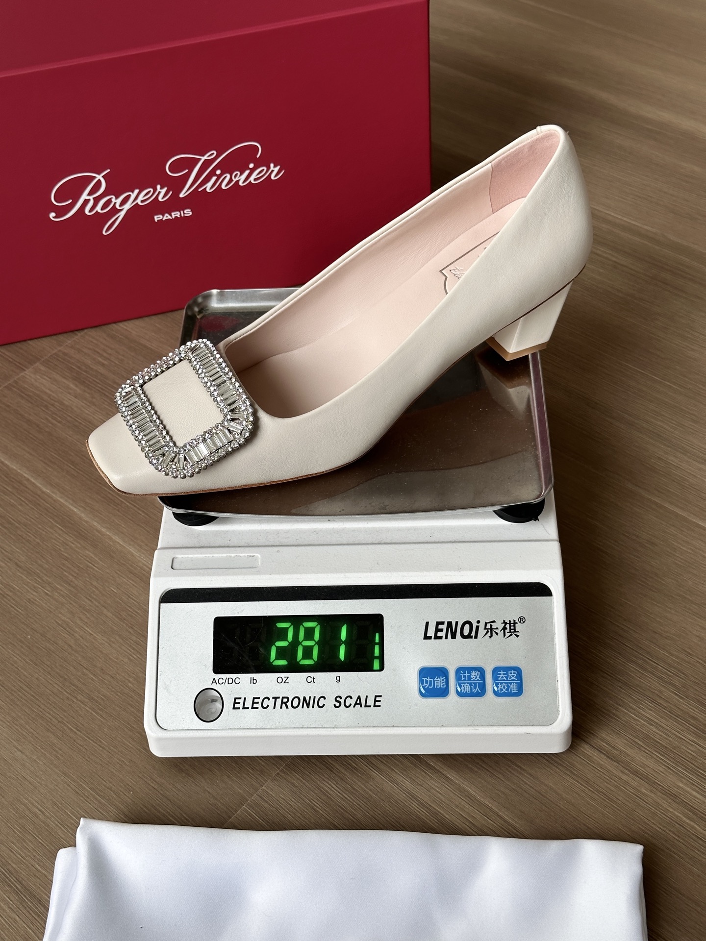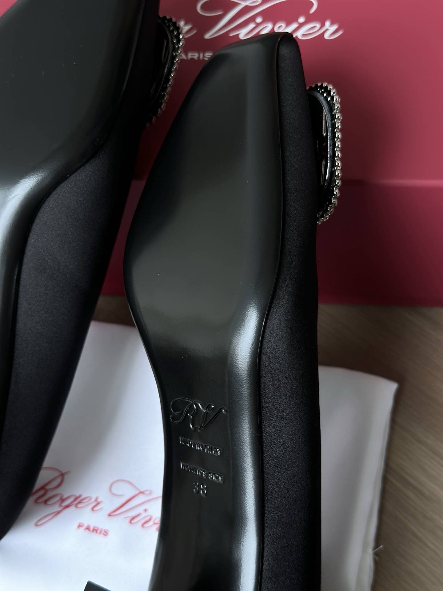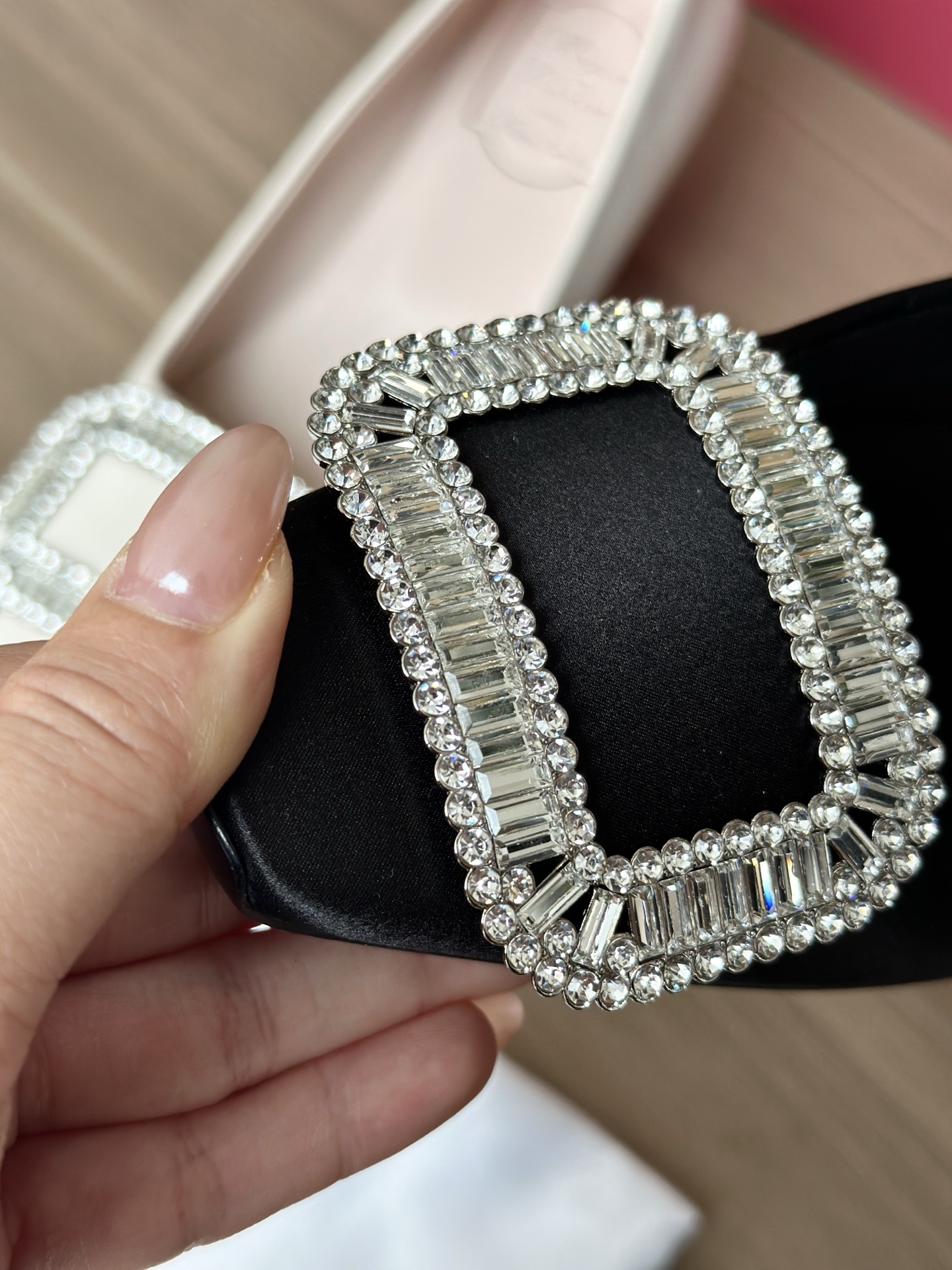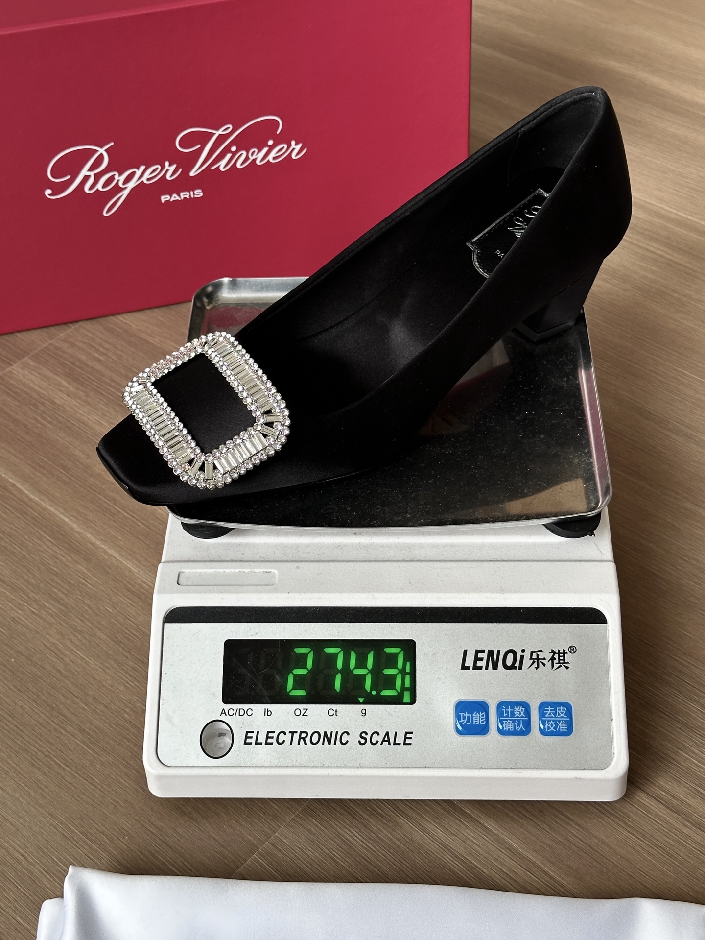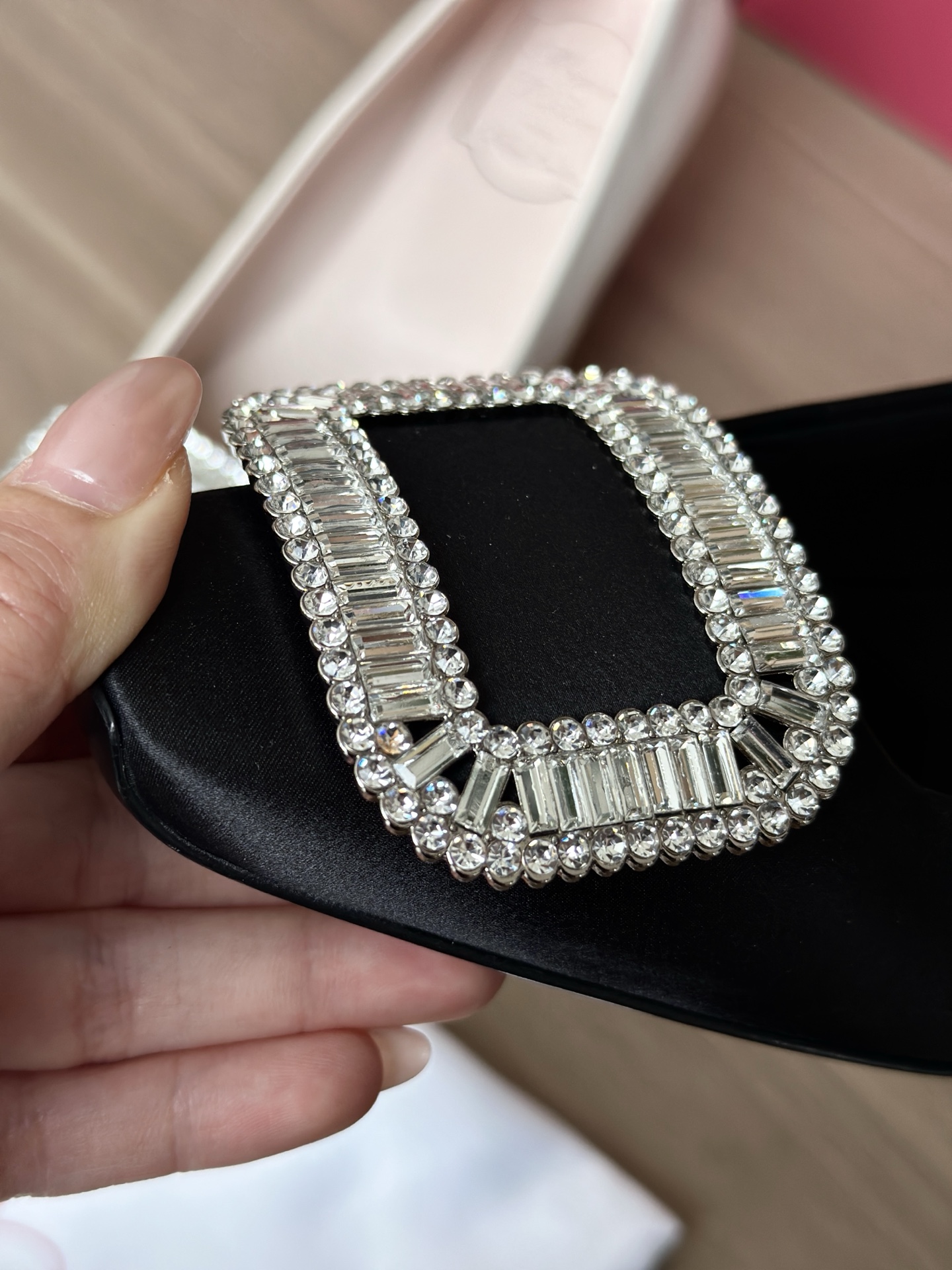 真丝面料丝滑细腻,脚感舒适一旦上脚就舍不得脱。整双鞋着地稳!施华洛世奇水钻,质感奢华!这款RV别出心裁的方钻扣设计搭配4.5cm经典小方跟,使得鞋子穿着更舒适,修饰腿型更修长