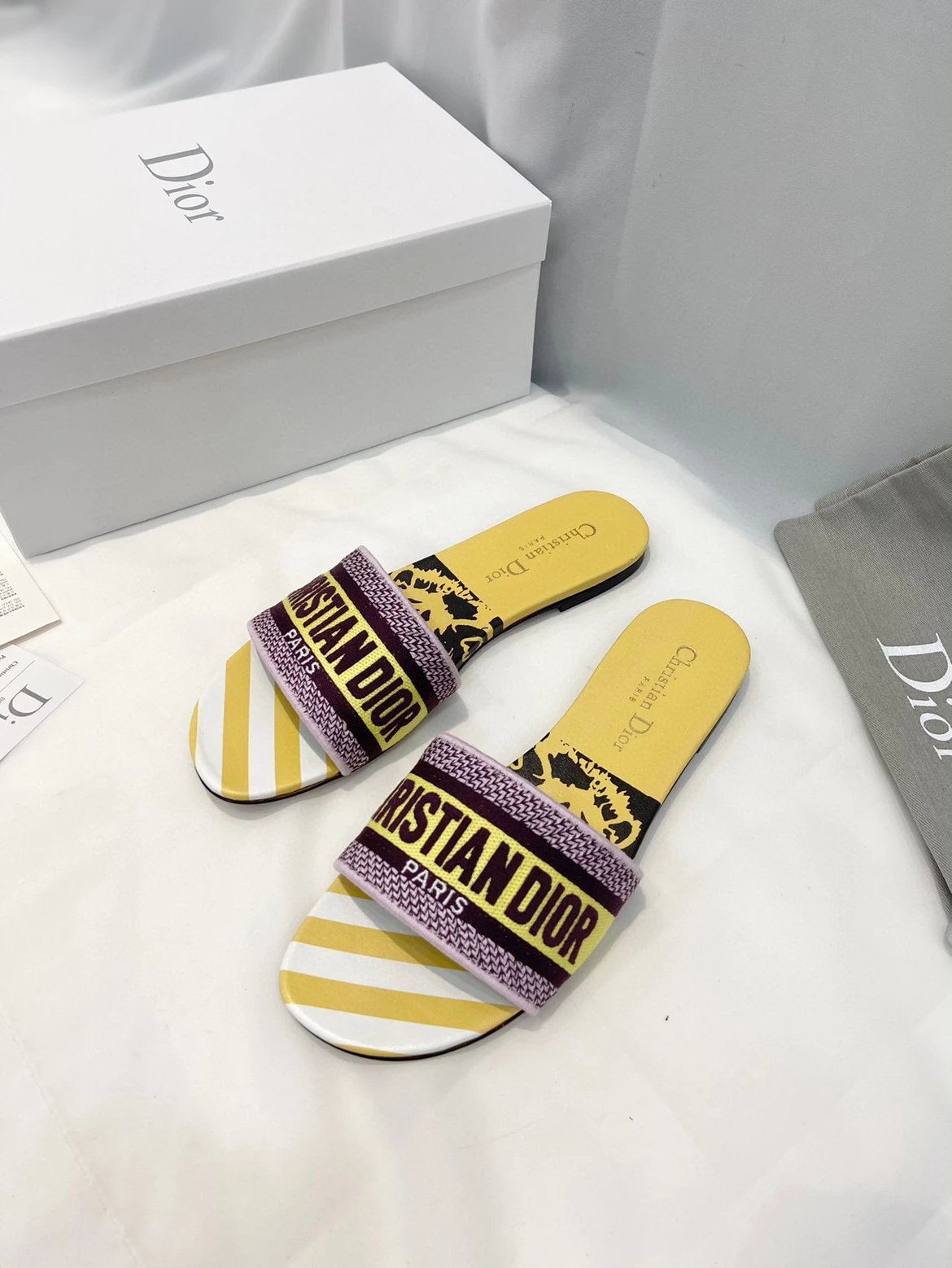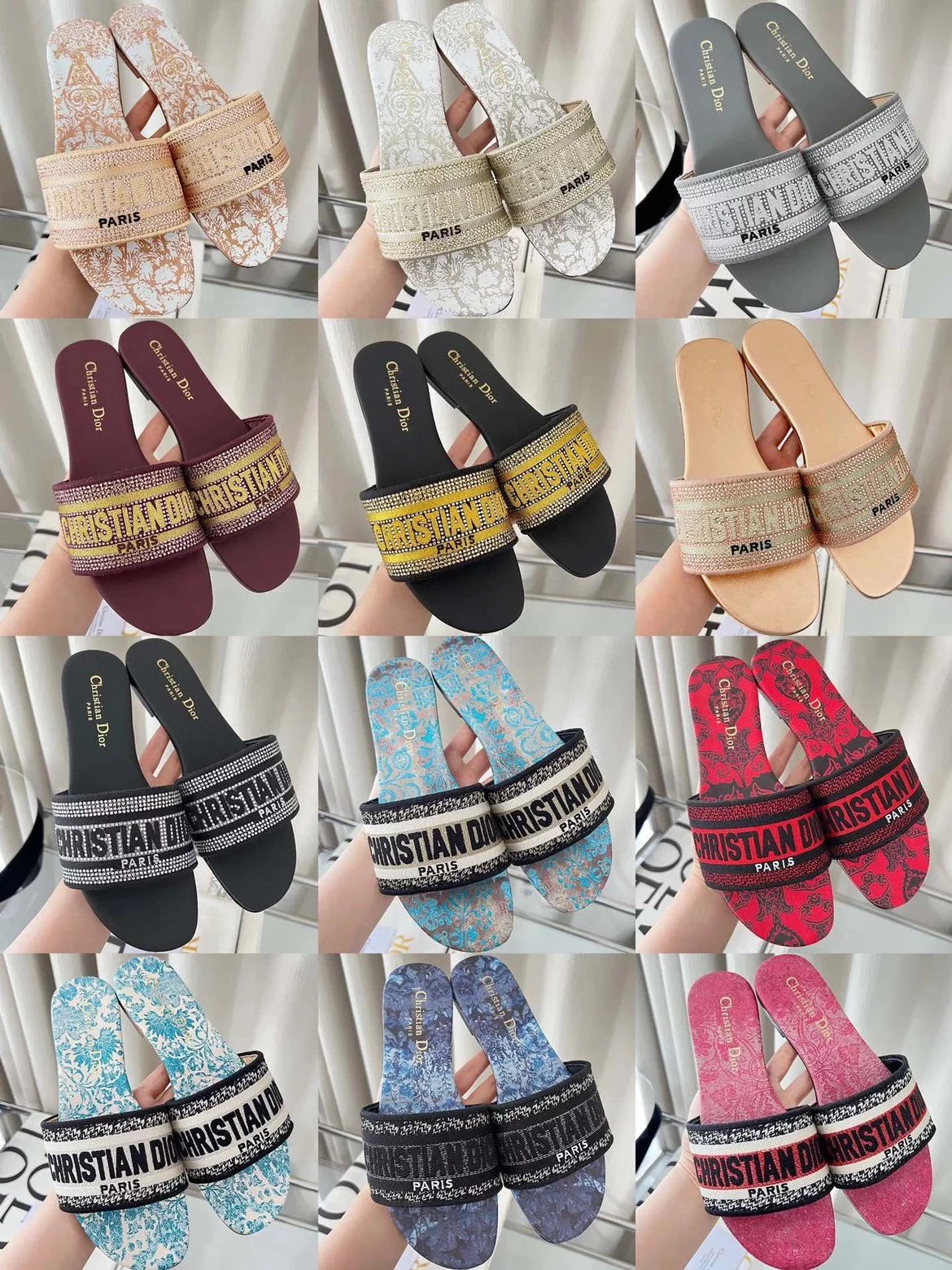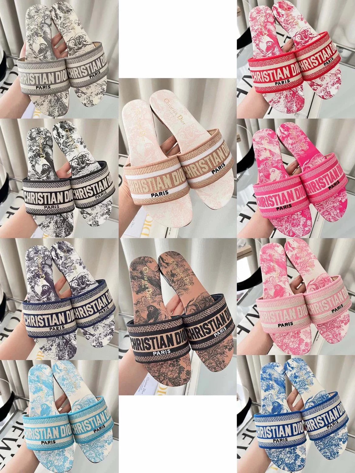 迪家|Dway平底拖鞋多色可选| Dio*迪奥3D立体刺绣印花凉拖鞋 同步官网100多个颜色可选择 作为D家主打款老花刺绣系列凉拖,每年都会新色,一出新就立马断货,刺绣设计有立体感非常,简单大方,完全不挑人,任何场合都能hold住,让人爱不释手✨永恒经典 面料:原版飞织3d立体刺绣/印花 内里:垫脚牛皮 大底:幸运星大底 跟高:平底 码数:35-39(40/41码定制不退不换)