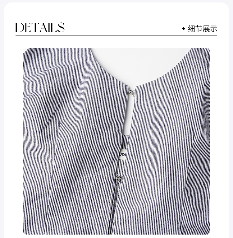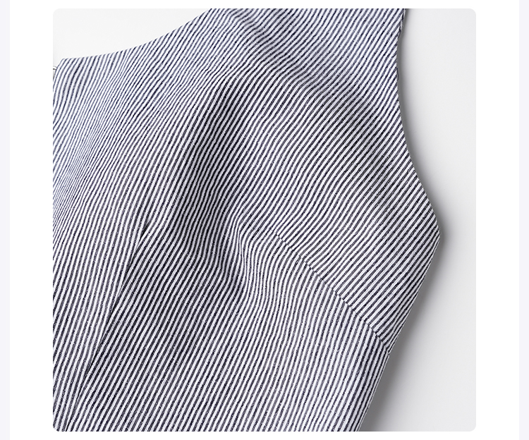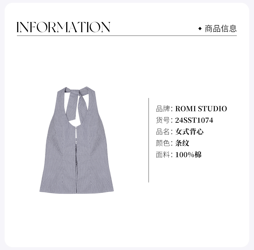 ROMI STUDIO“叹息桥头”100%棉衬衫式挂脖V领细条纹背心 24SST1074