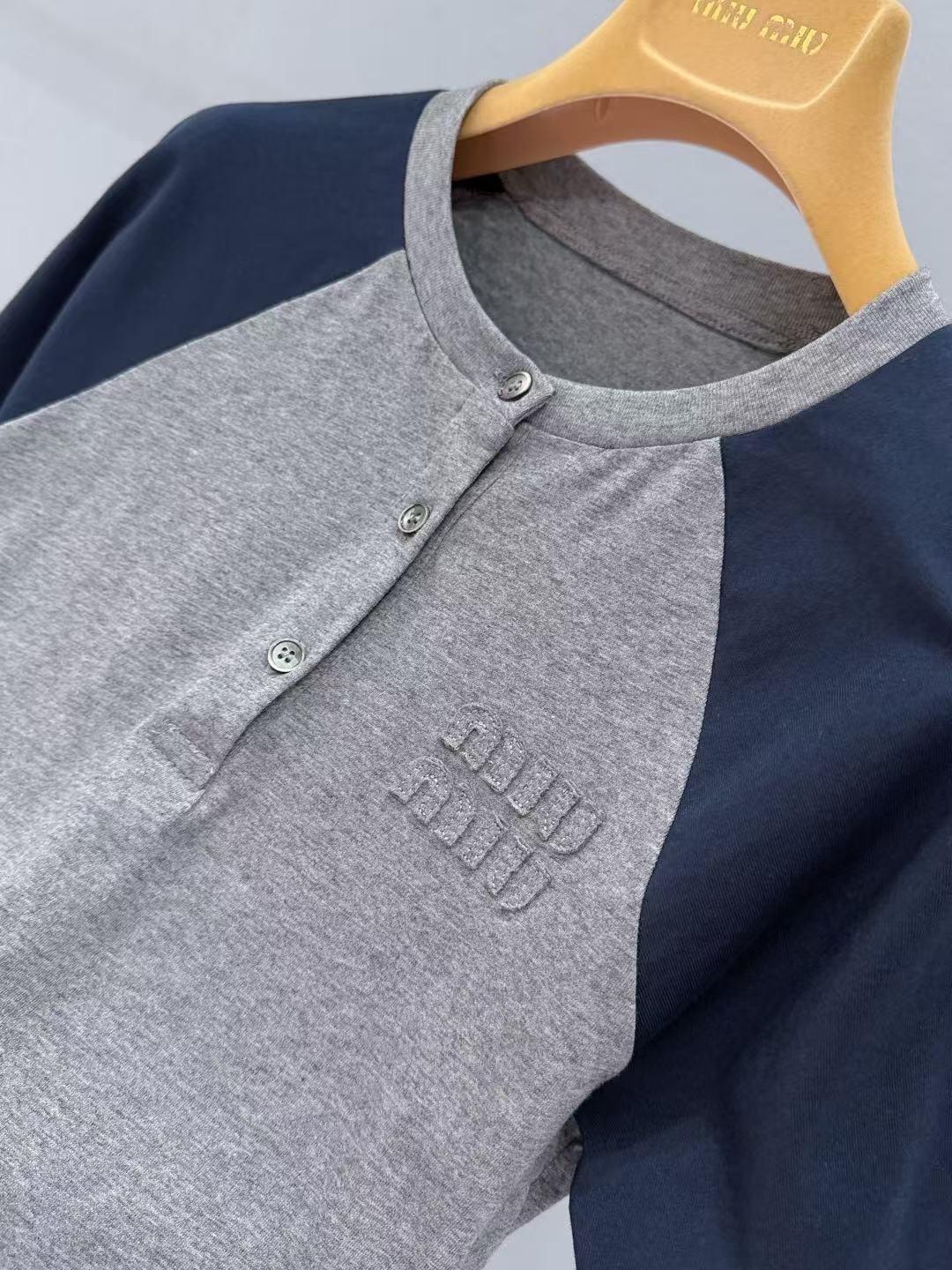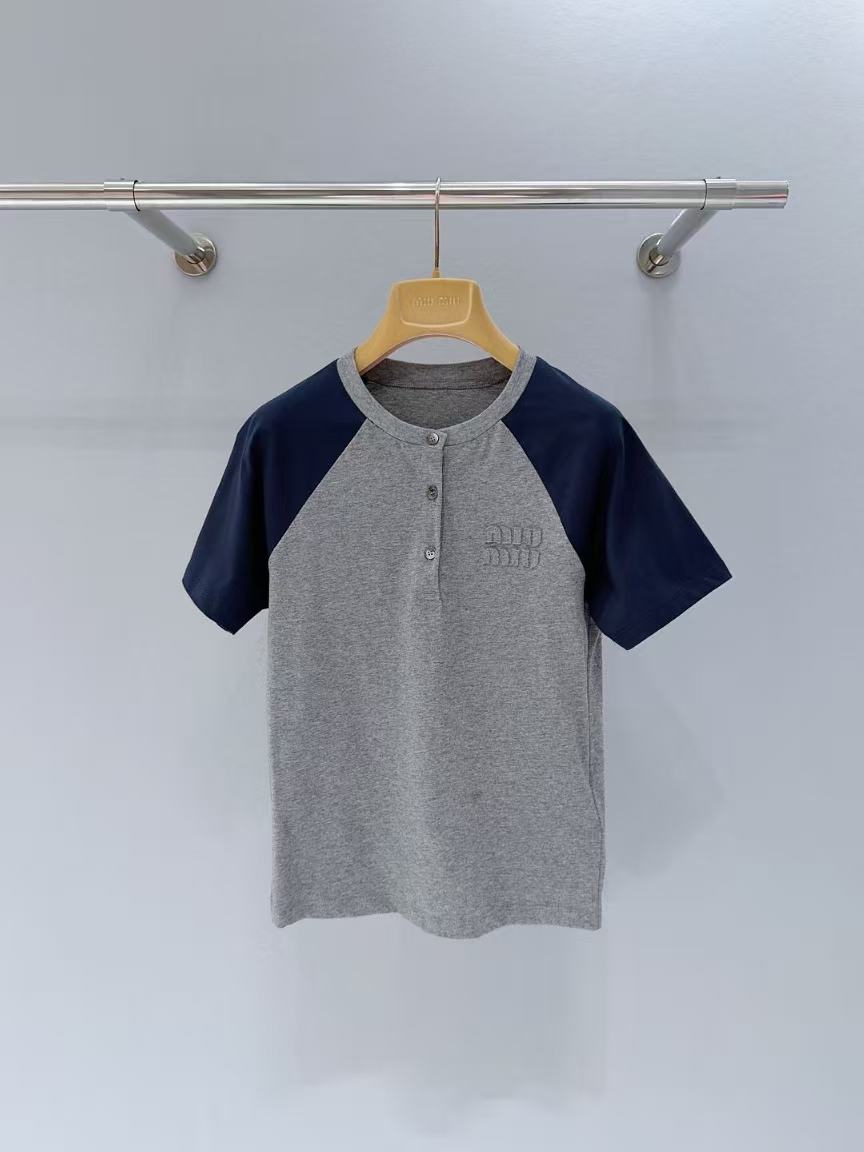 𝐌𝐢𝐮𝐌𝐢𝐮 𝟐𝟔 ~春夏新款圆领拼接半纽扣上衣 SML