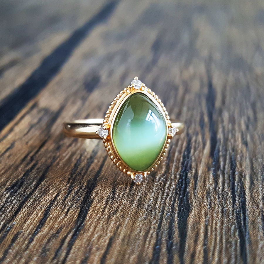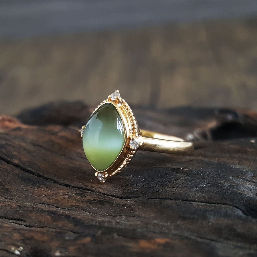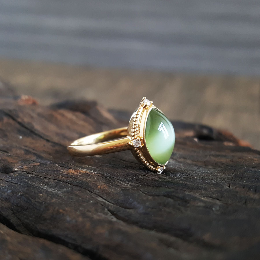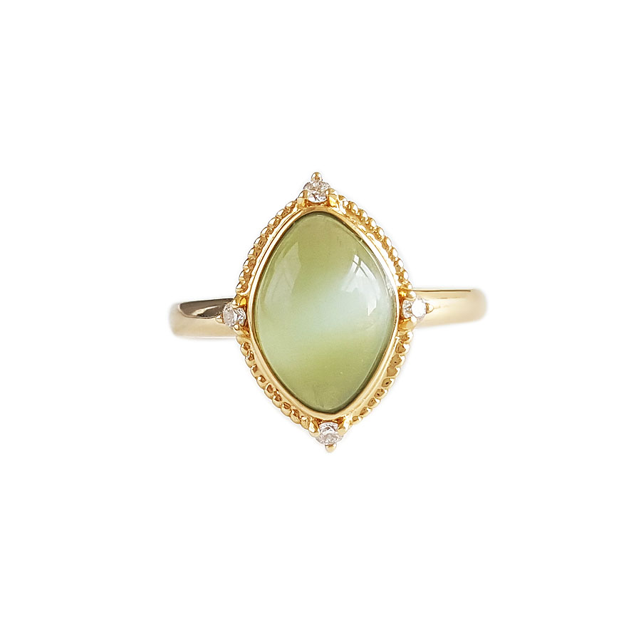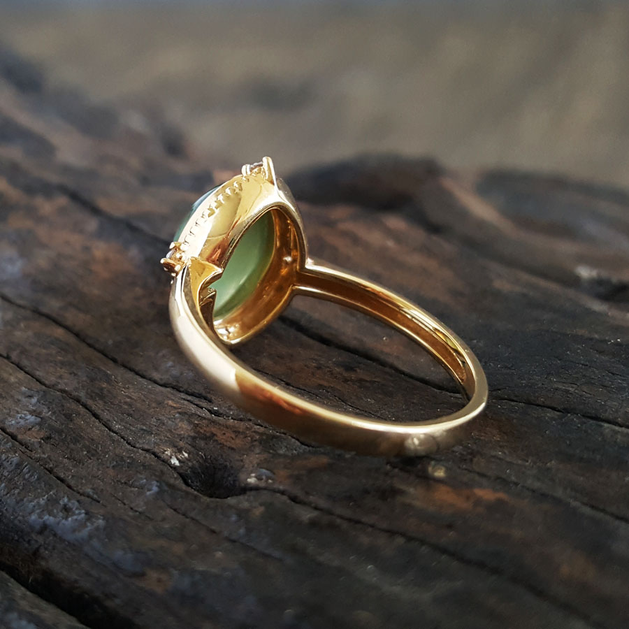 【天然正品】AU750精品黄金镶钻镶天然猫眼碧玉和田玉戒指050424NJM38
