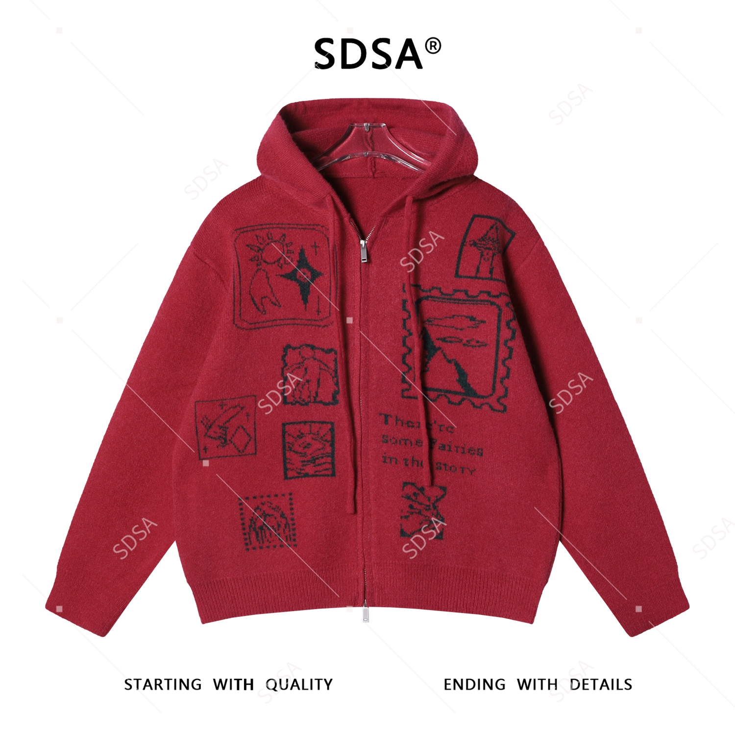 72633SDSA秋冬新款痞帅男装撞色趣味图案拉链连帽毛衣百搭开衫针织衫