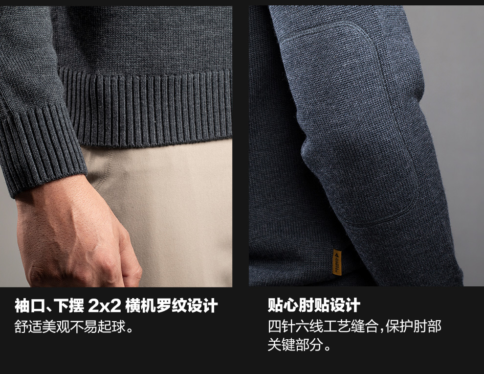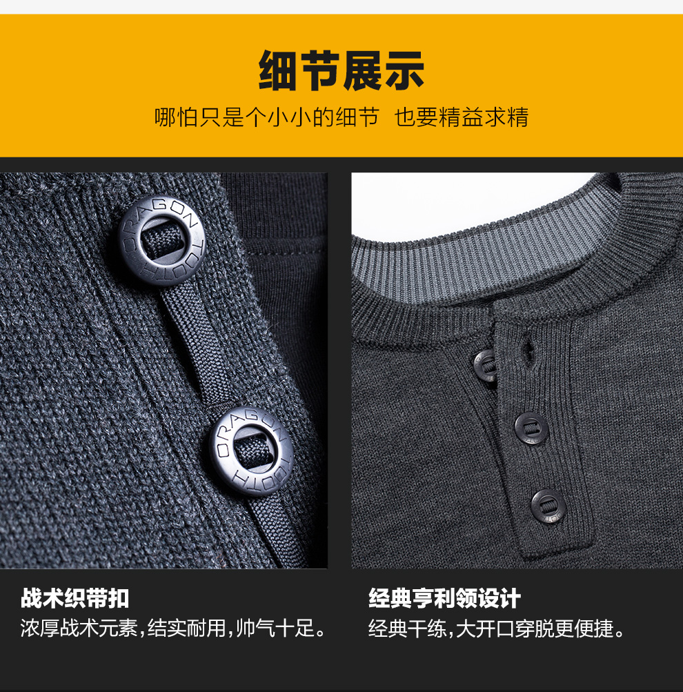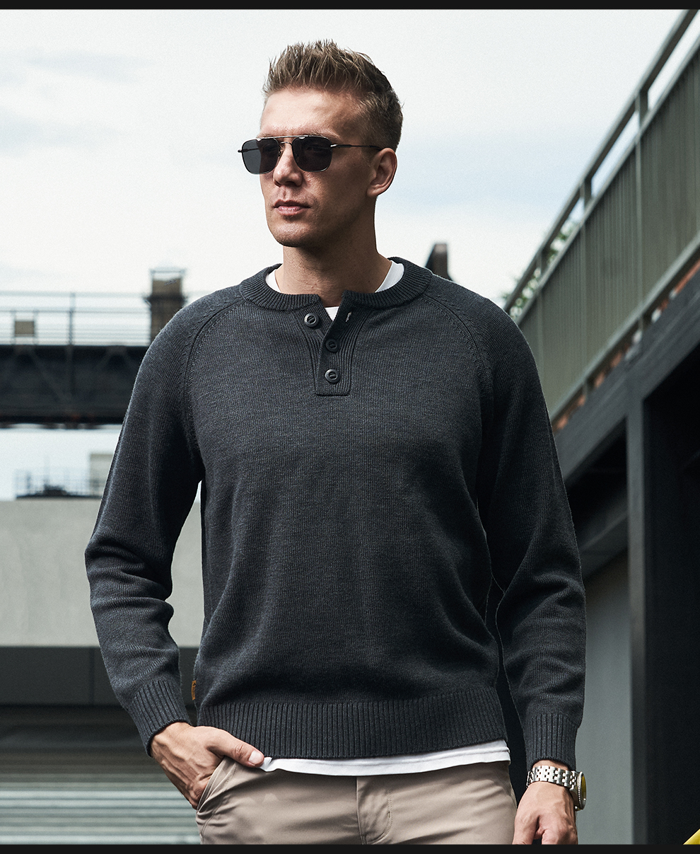加强版隐鳞美丽诺羊毛亨利领套头毛衣加强版男士美利奴保暖羊毛衫