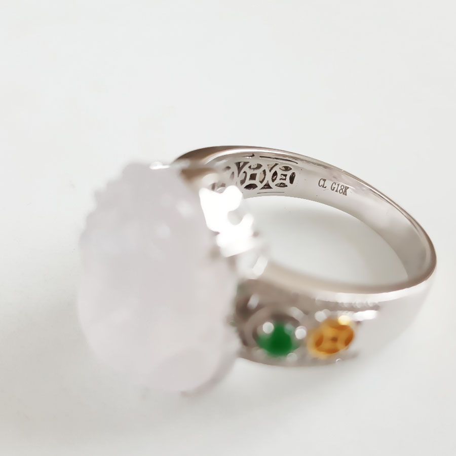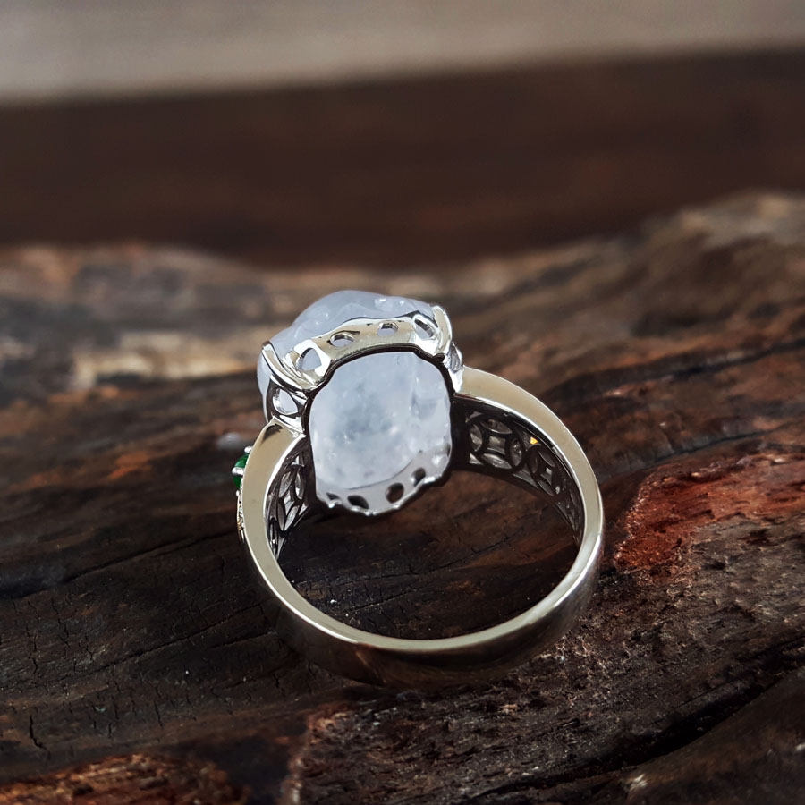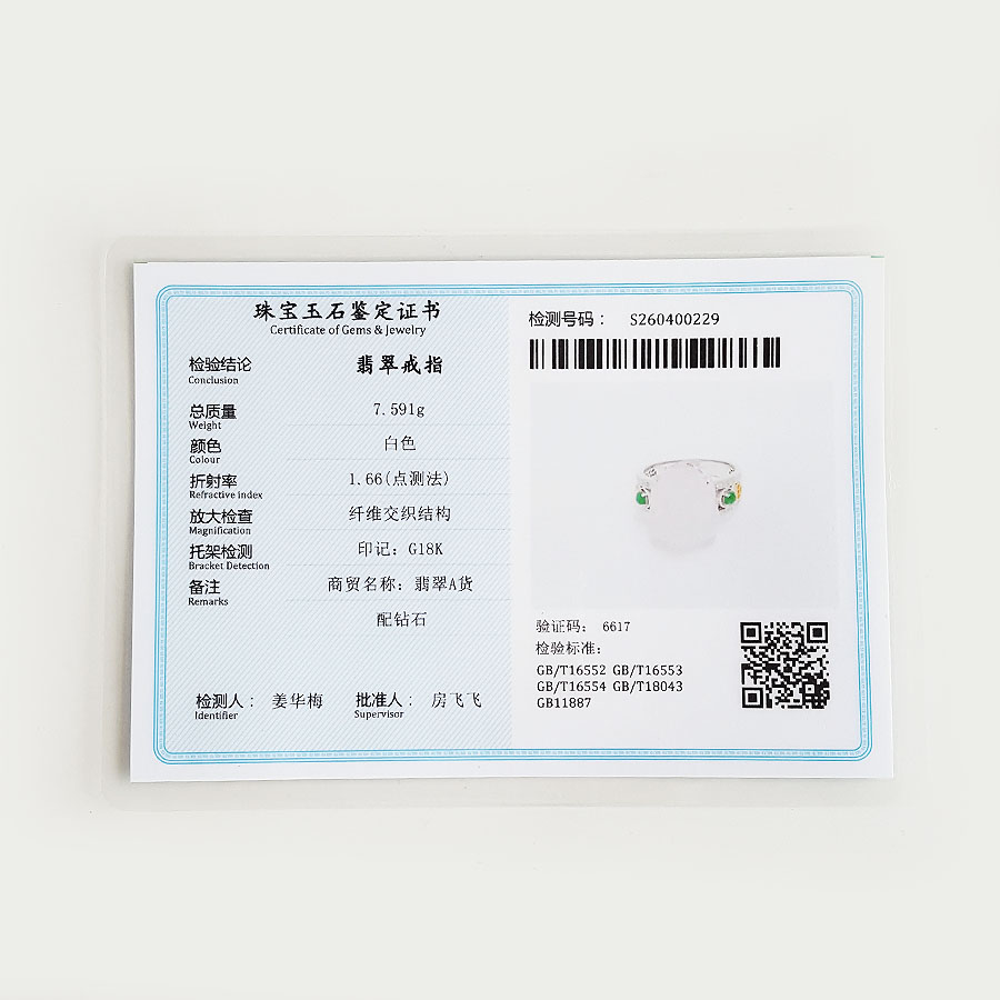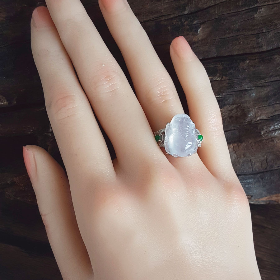 名称 | AU750收藏级白金镶钻镶天然细腻白色冰种瑞兽翡翠戒指 |