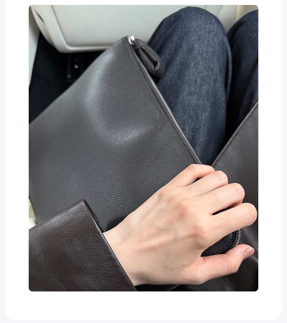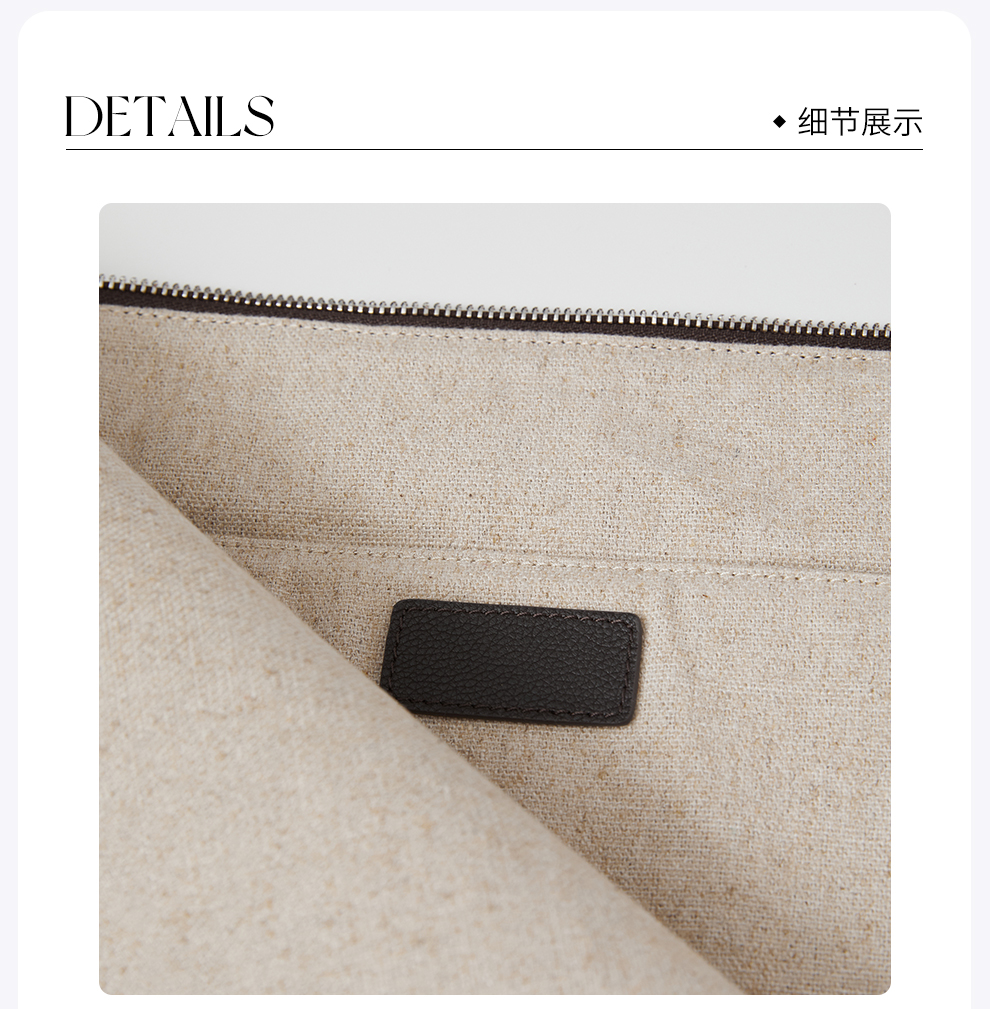 ROMI STUDIO“复古态度” 荔枝纹头层牛皮拼亚麻公文包 RW24LP31323