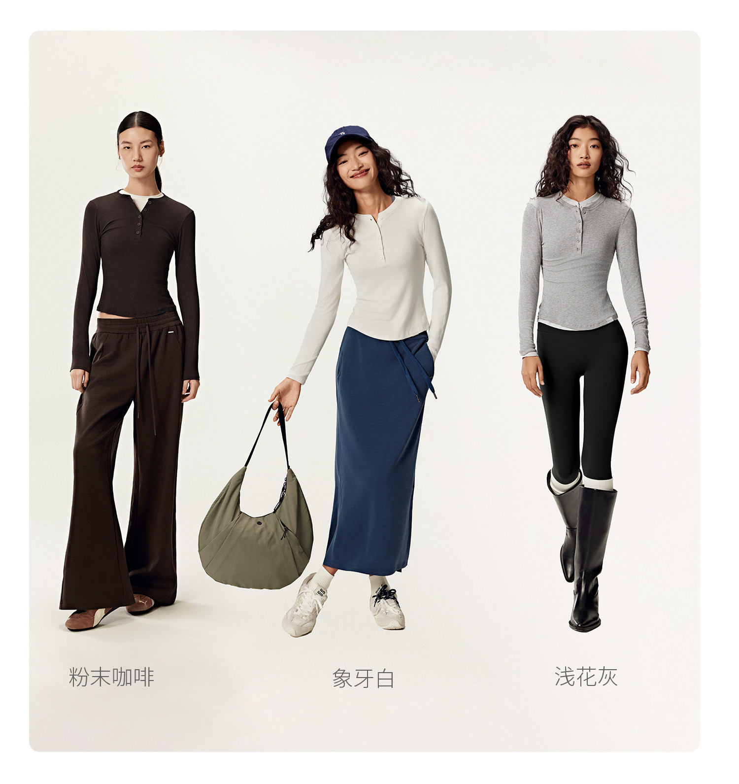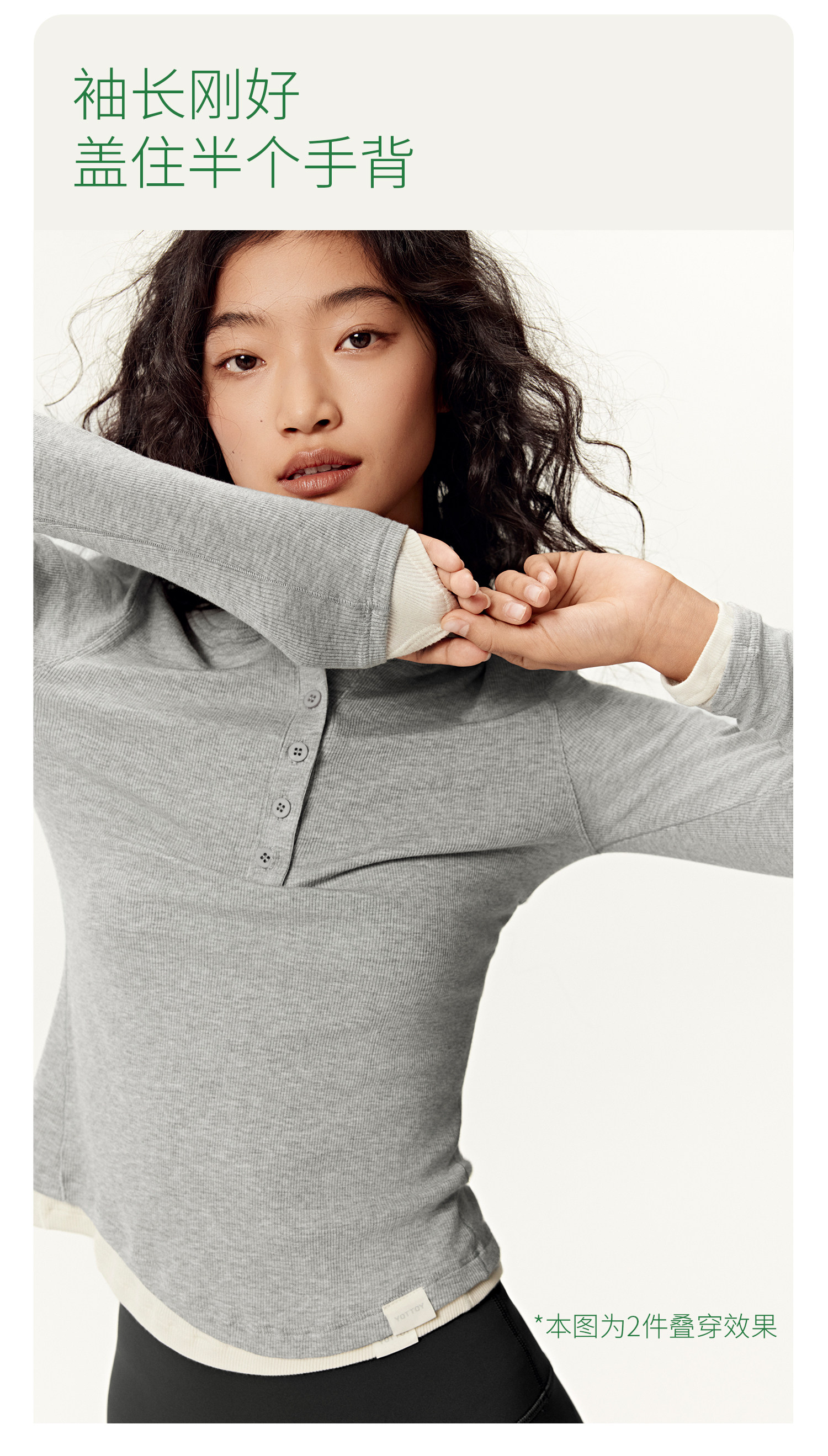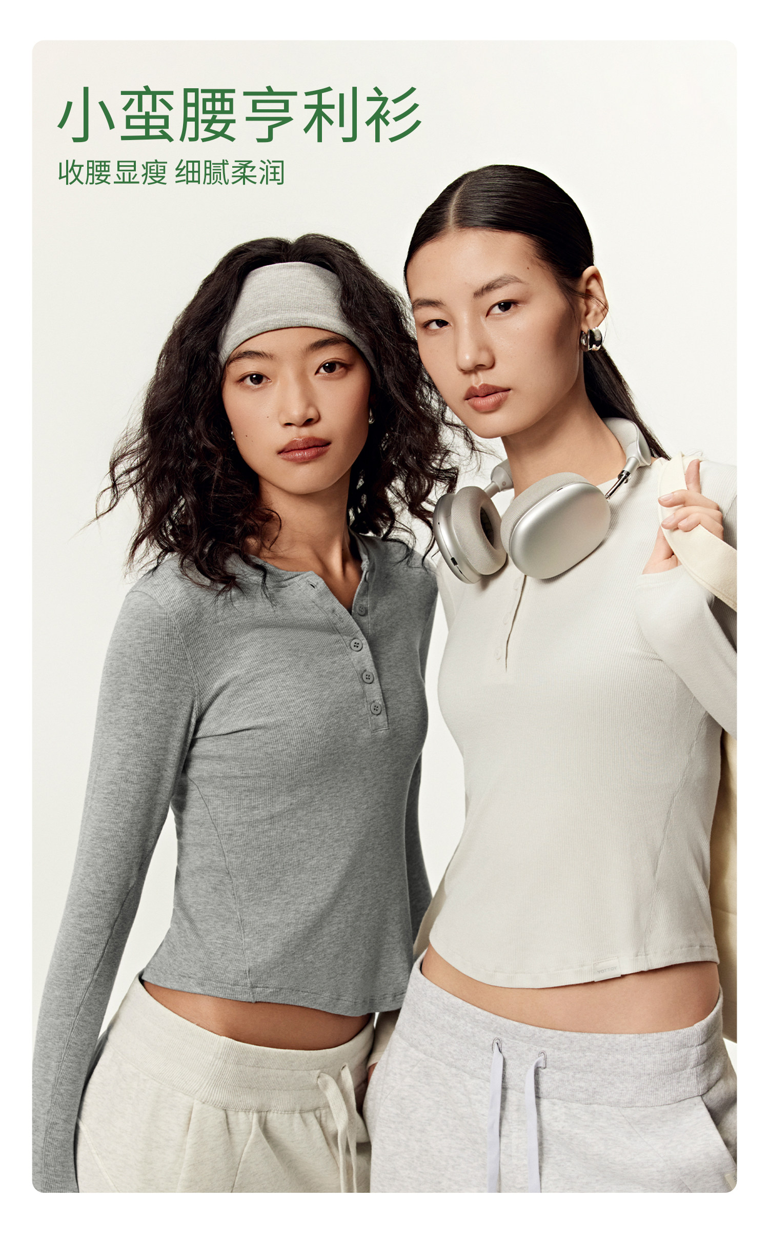 YOTTOY小蛮腰亨利衫长袖【套装更优惠】上衣修身休闲显瘦收腰打底内搭瑜伽运动秋冬