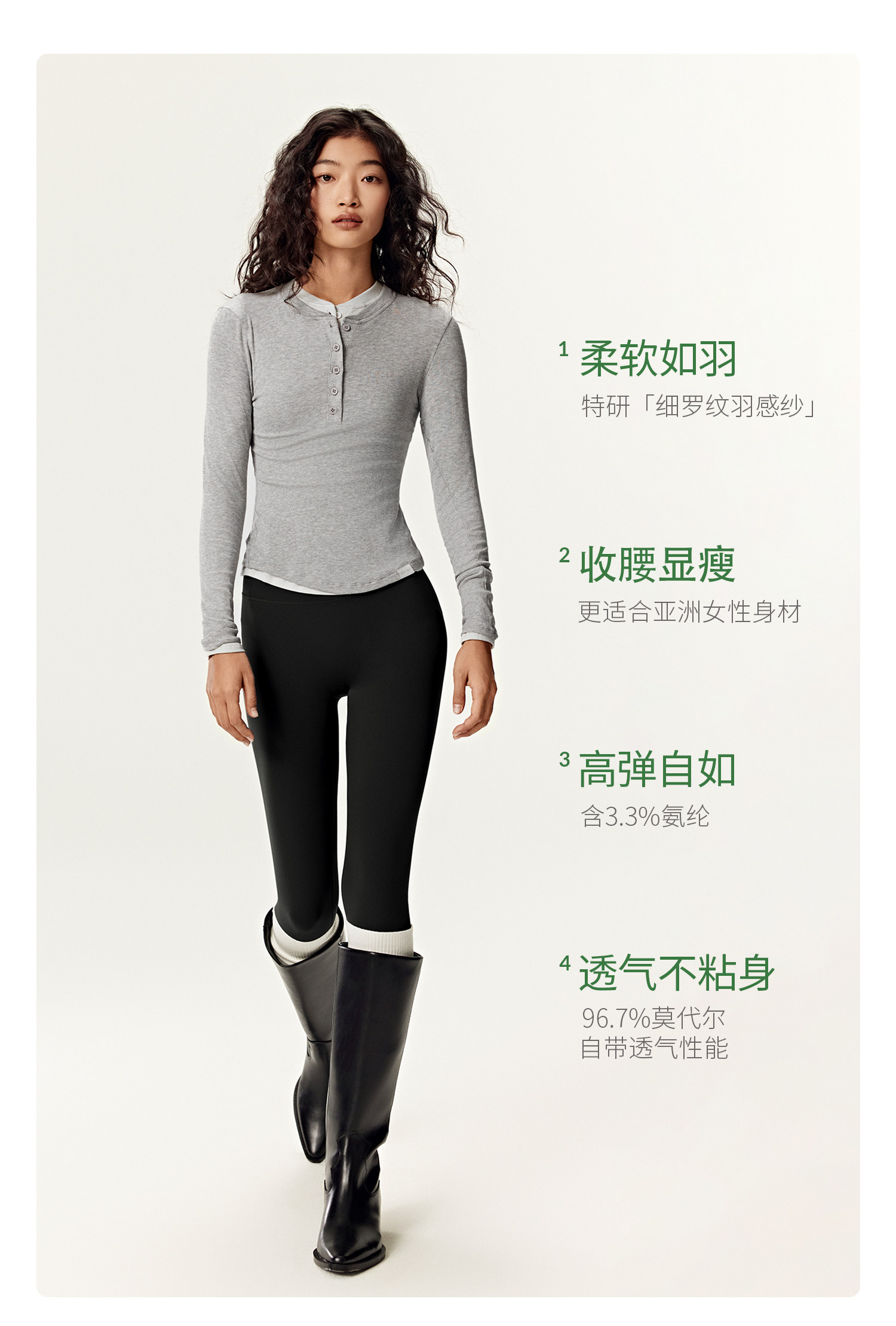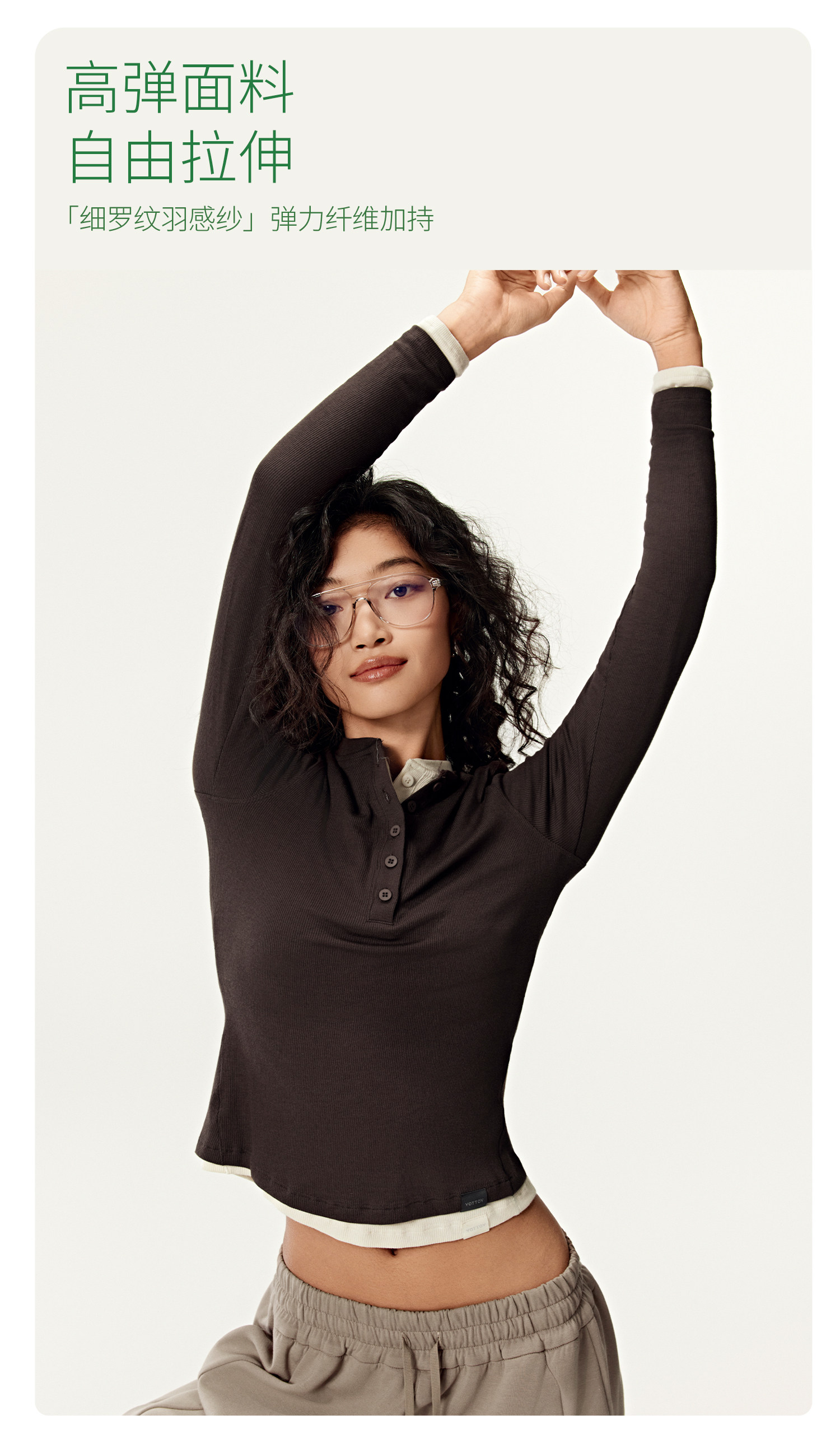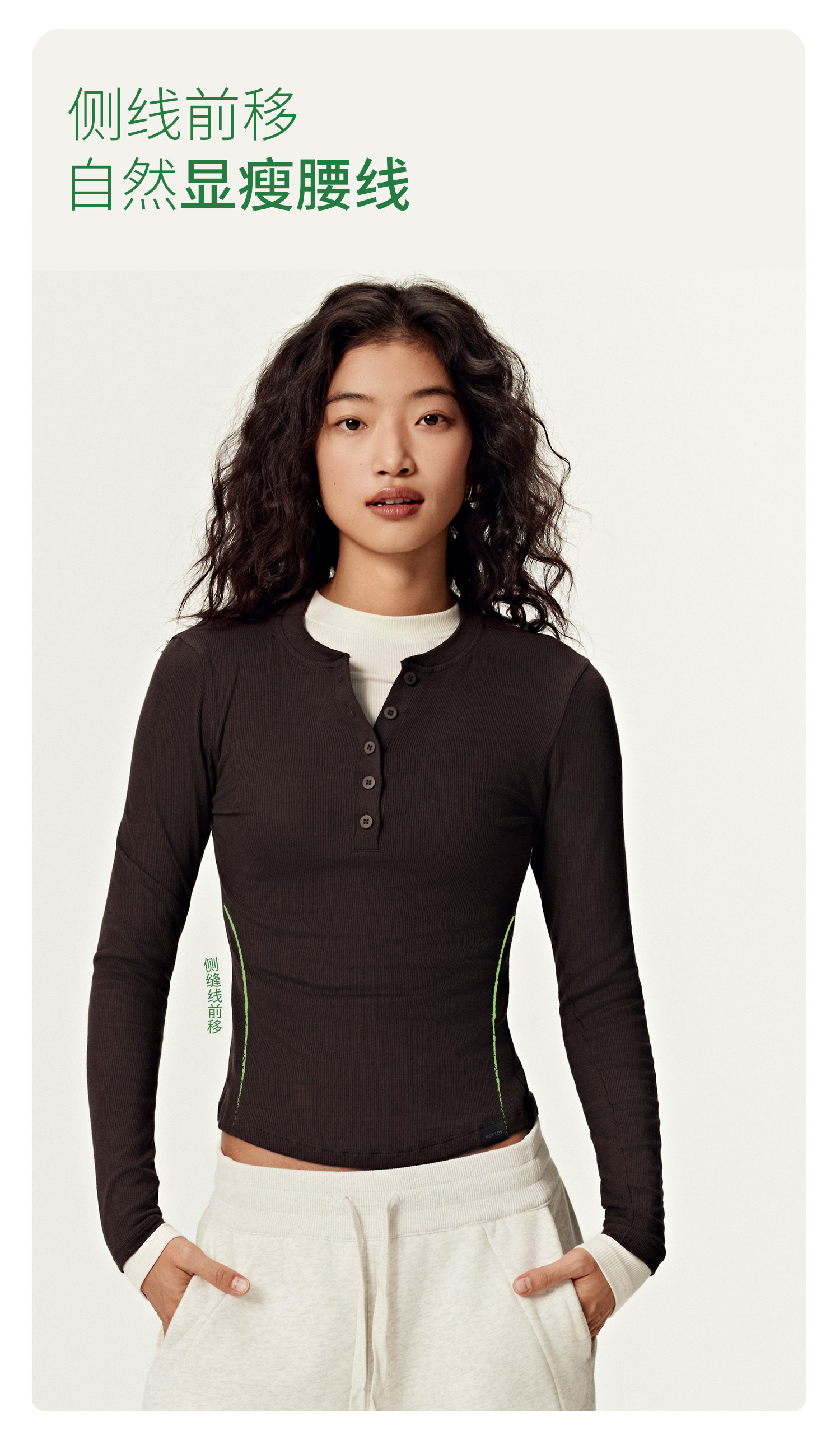 YOTTOY小蛮腰亨利衫长袖【套装更优惠】上衣修身休闲显瘦收腰打底内搭瑜伽运动秋冬