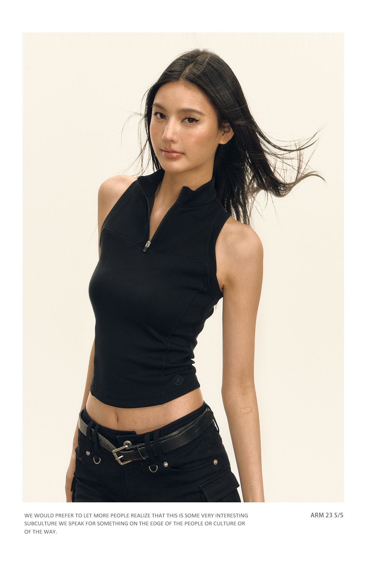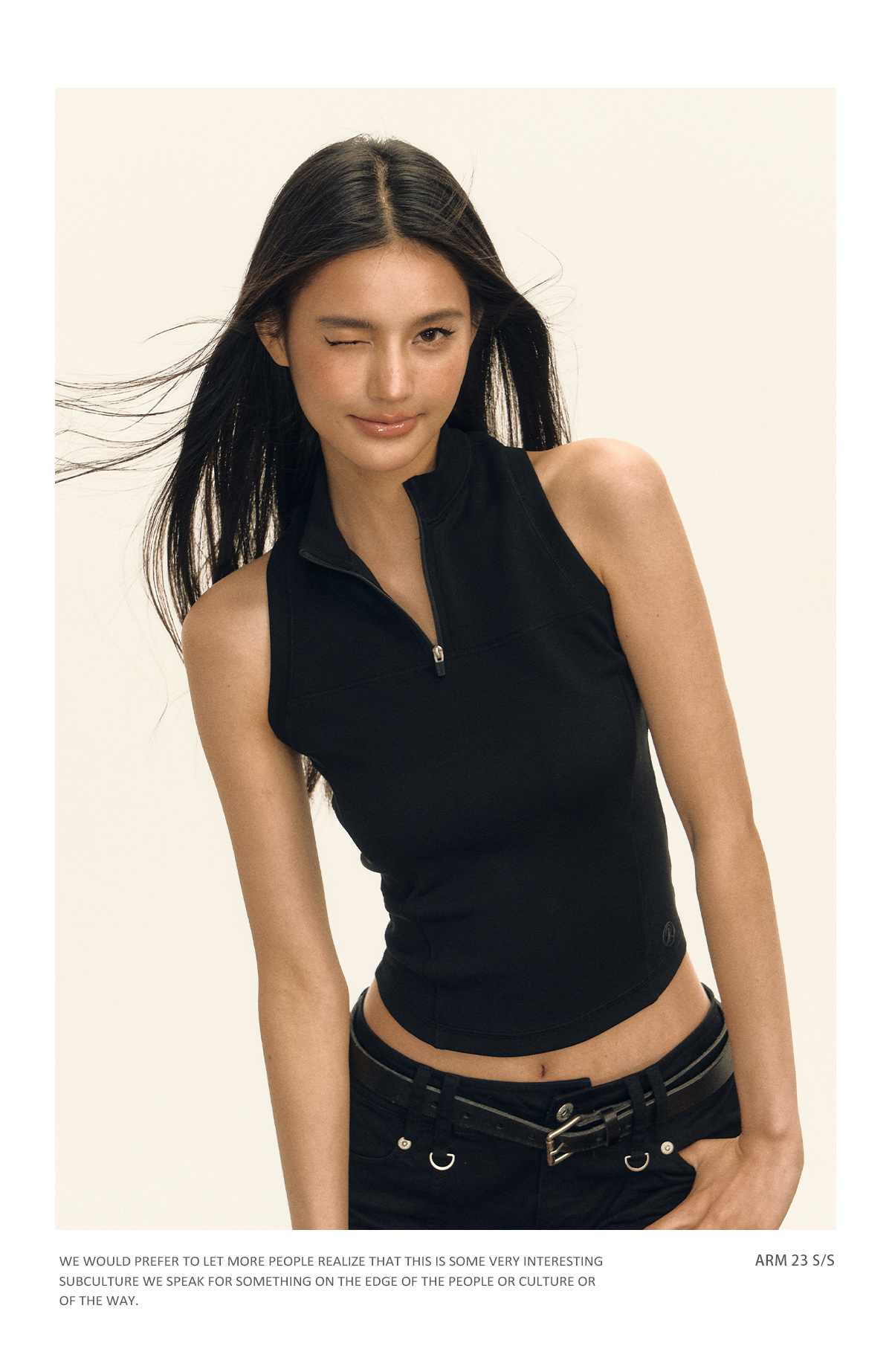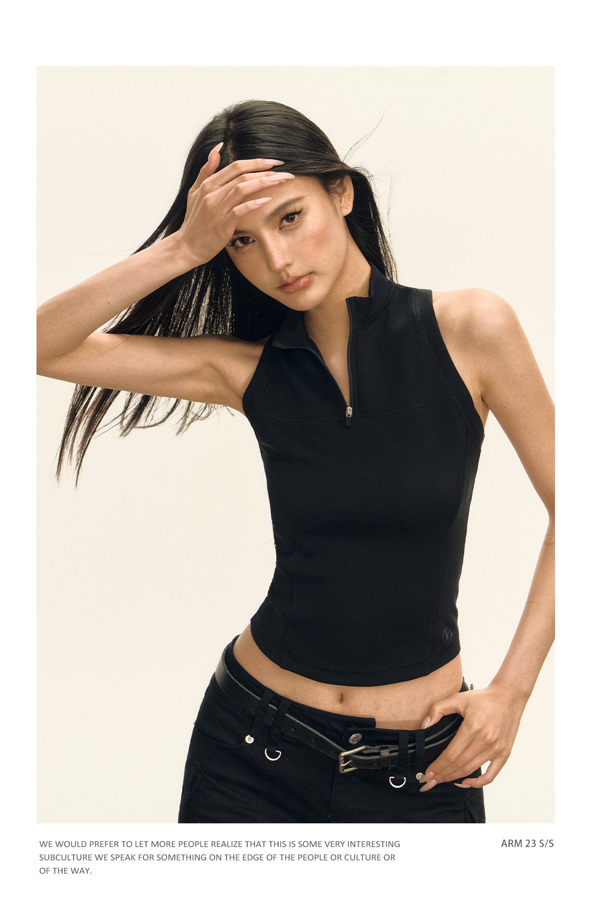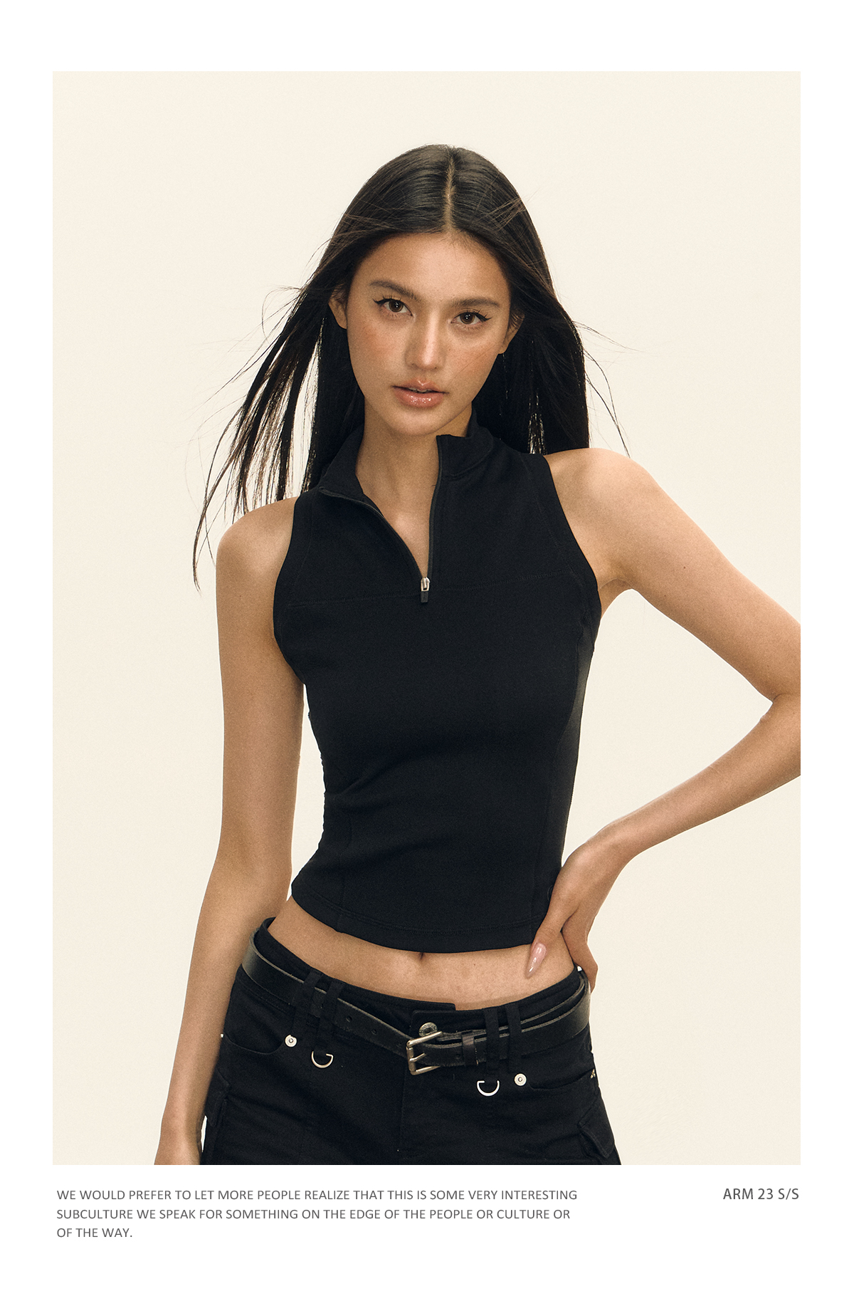 Ariseism 美式复古设计感外穿无袖半拉链背心女2025夏季新款上衣
