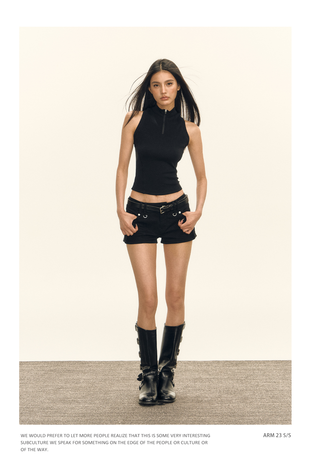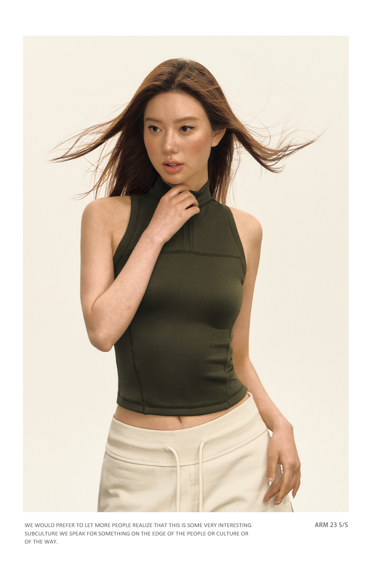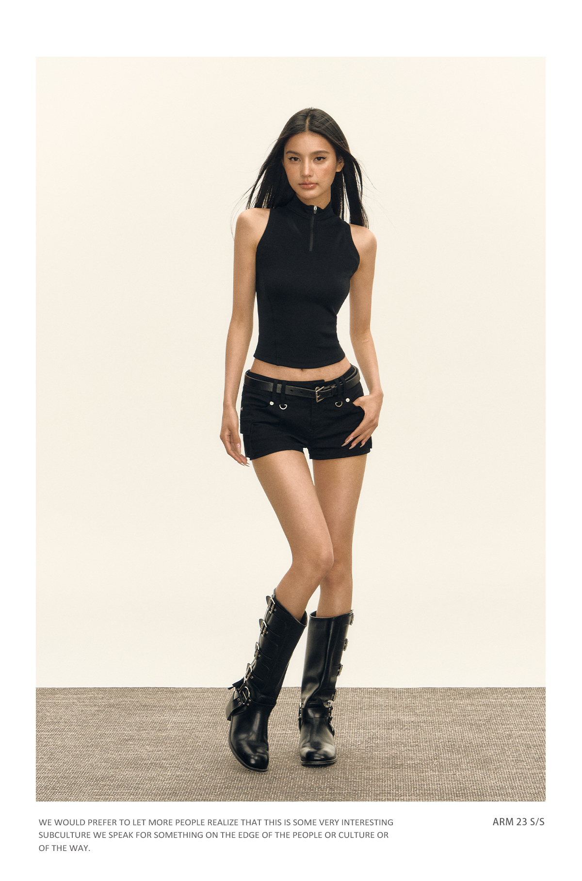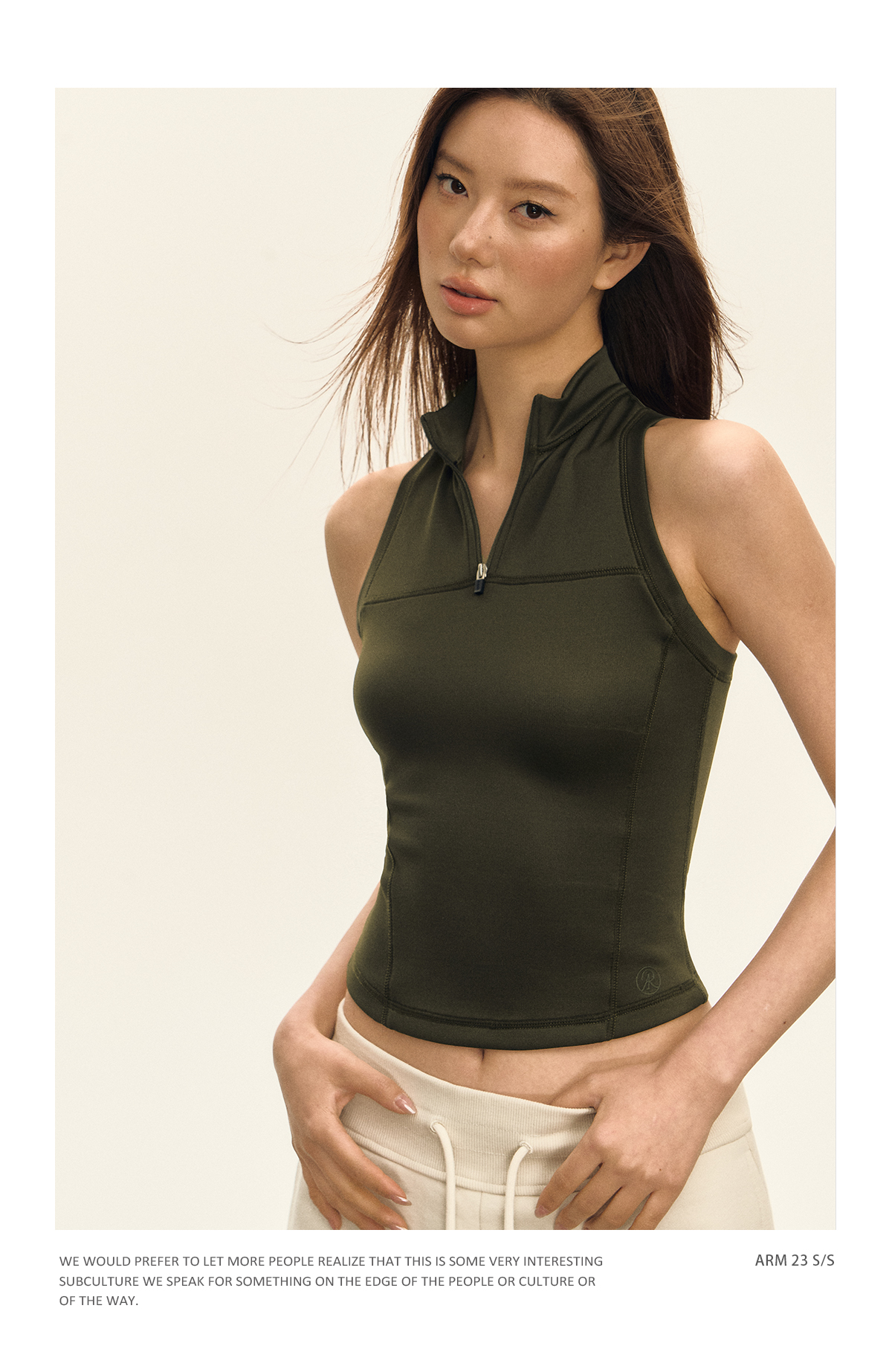 Ariseism 美式复古设计感外穿无袖半拉链背心女2025夏季新款上衣