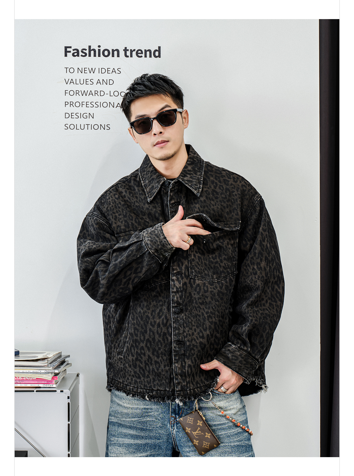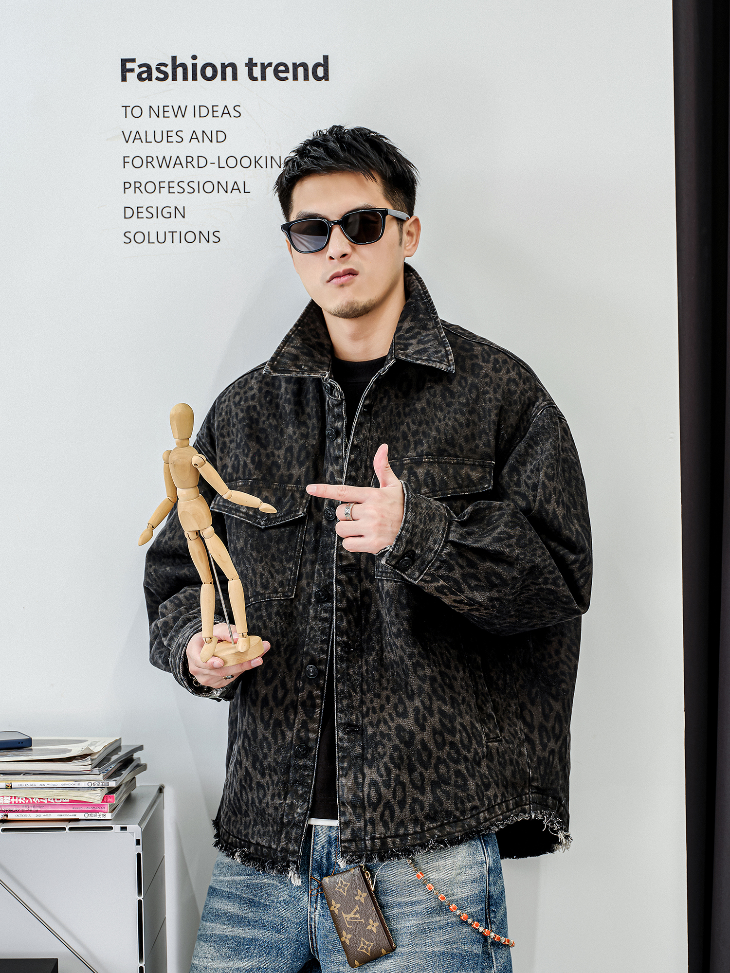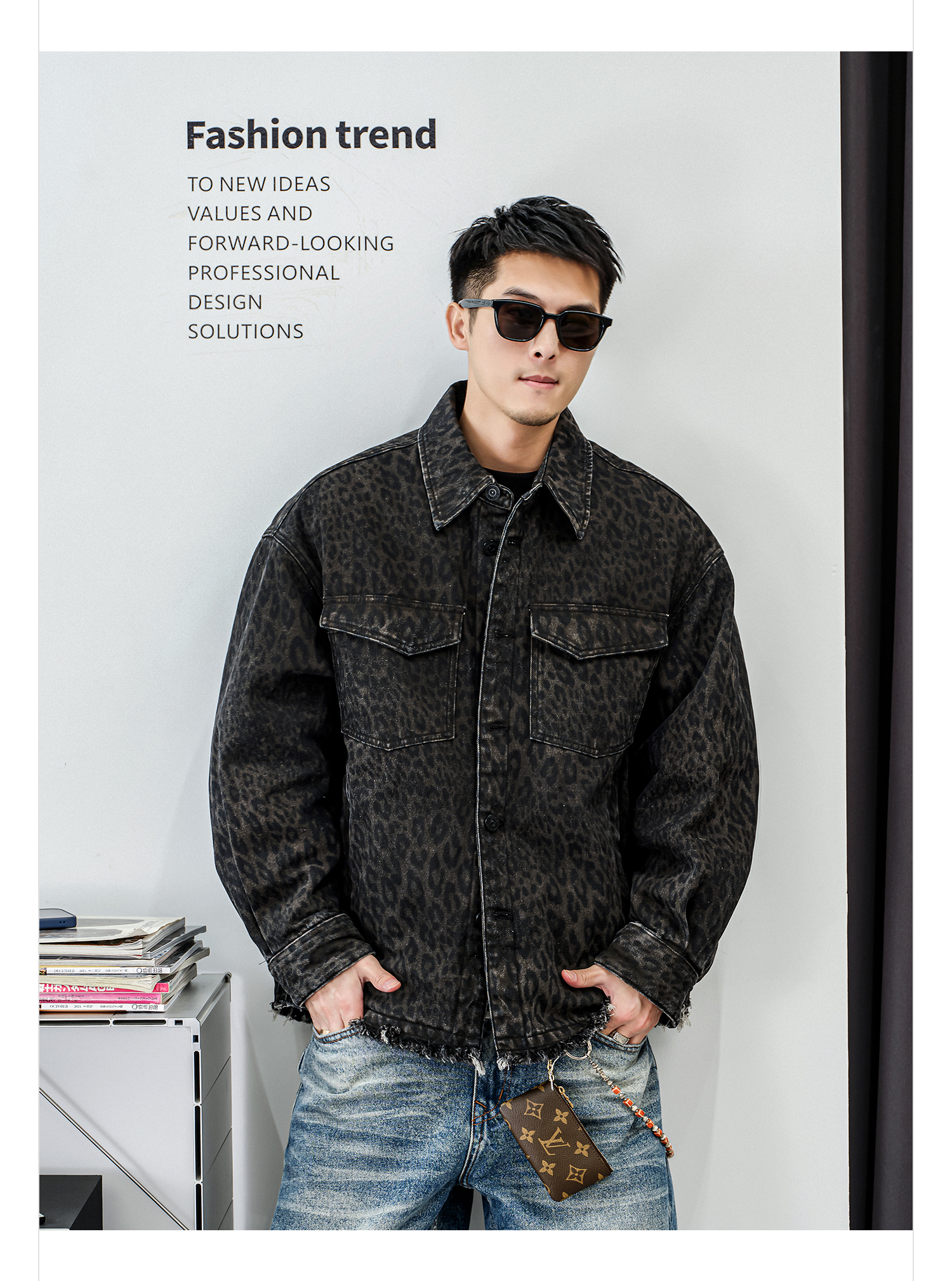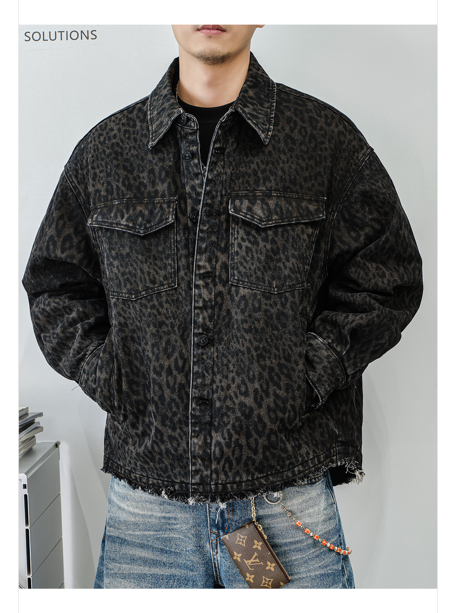 徐太浪【时尚豹纹 做旧磨毛】翻领羽绒服男冬季轻熟风防寒服外套