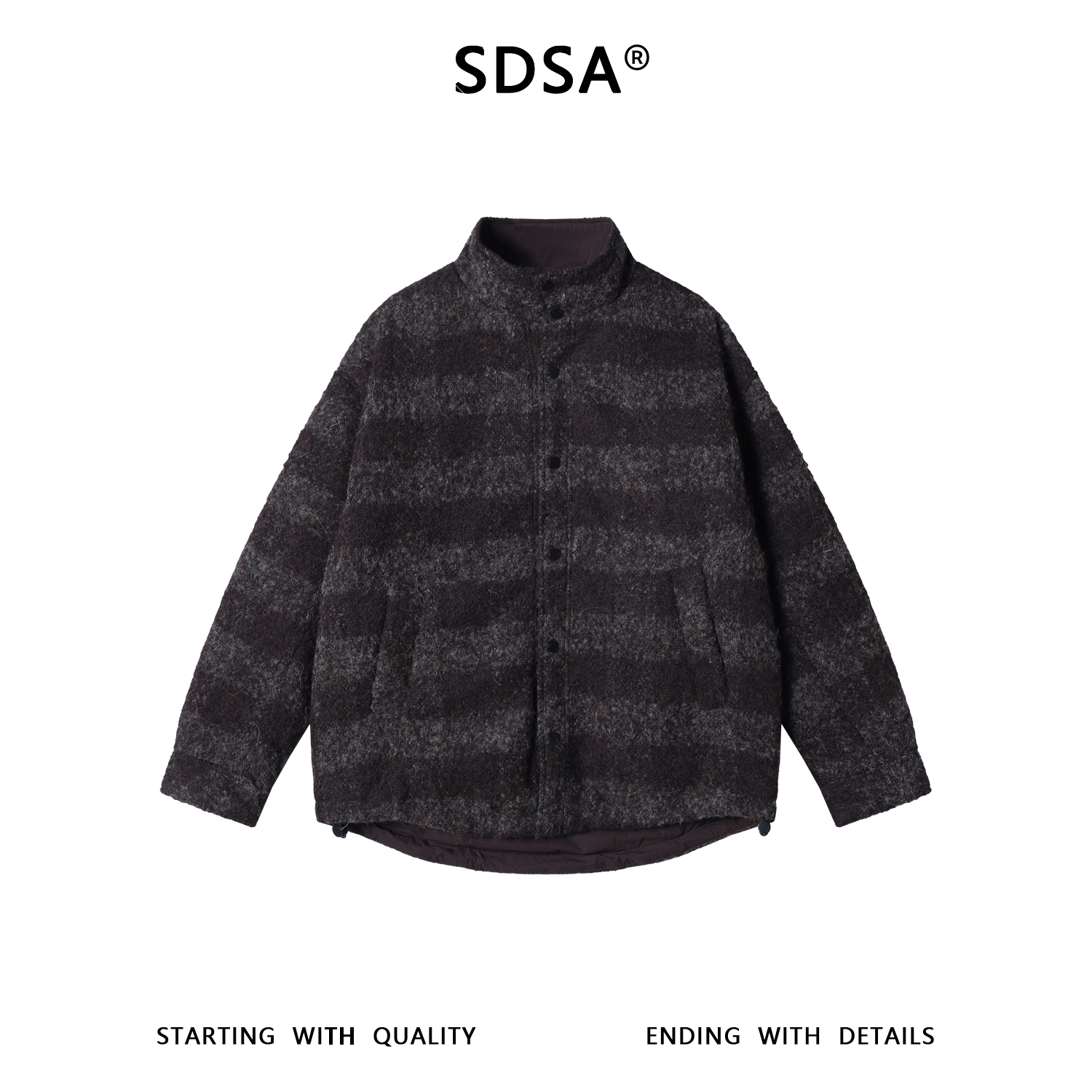 55142SDSA秋冬新款痞帅男装复古撞色条纹立领羽绒服下摆松紧设计百搭