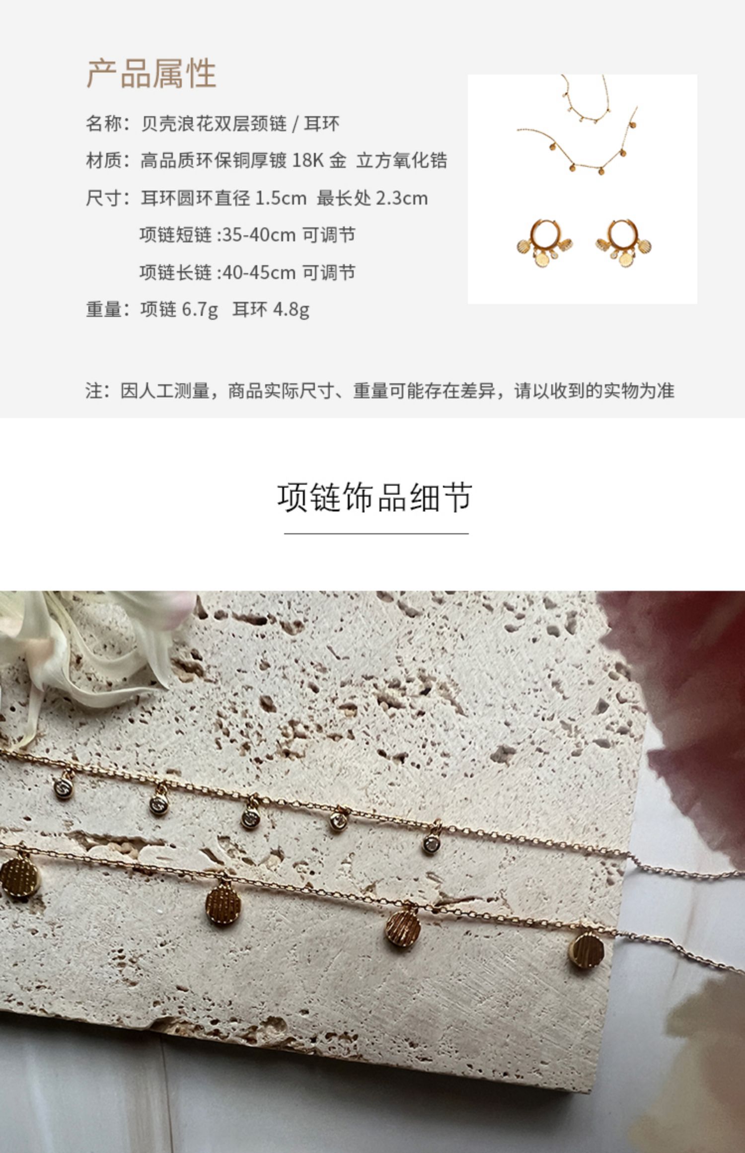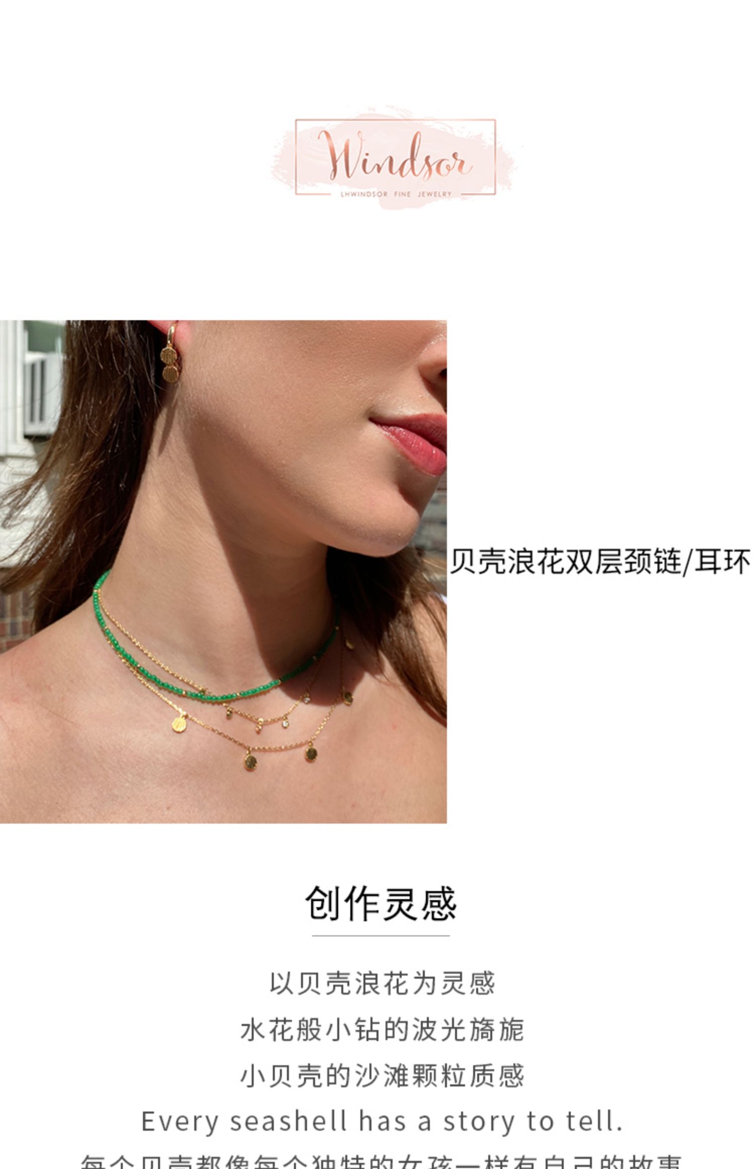 LHWINDSOR 贝壳浪花双层项链耳环高品质复古风项链耳环