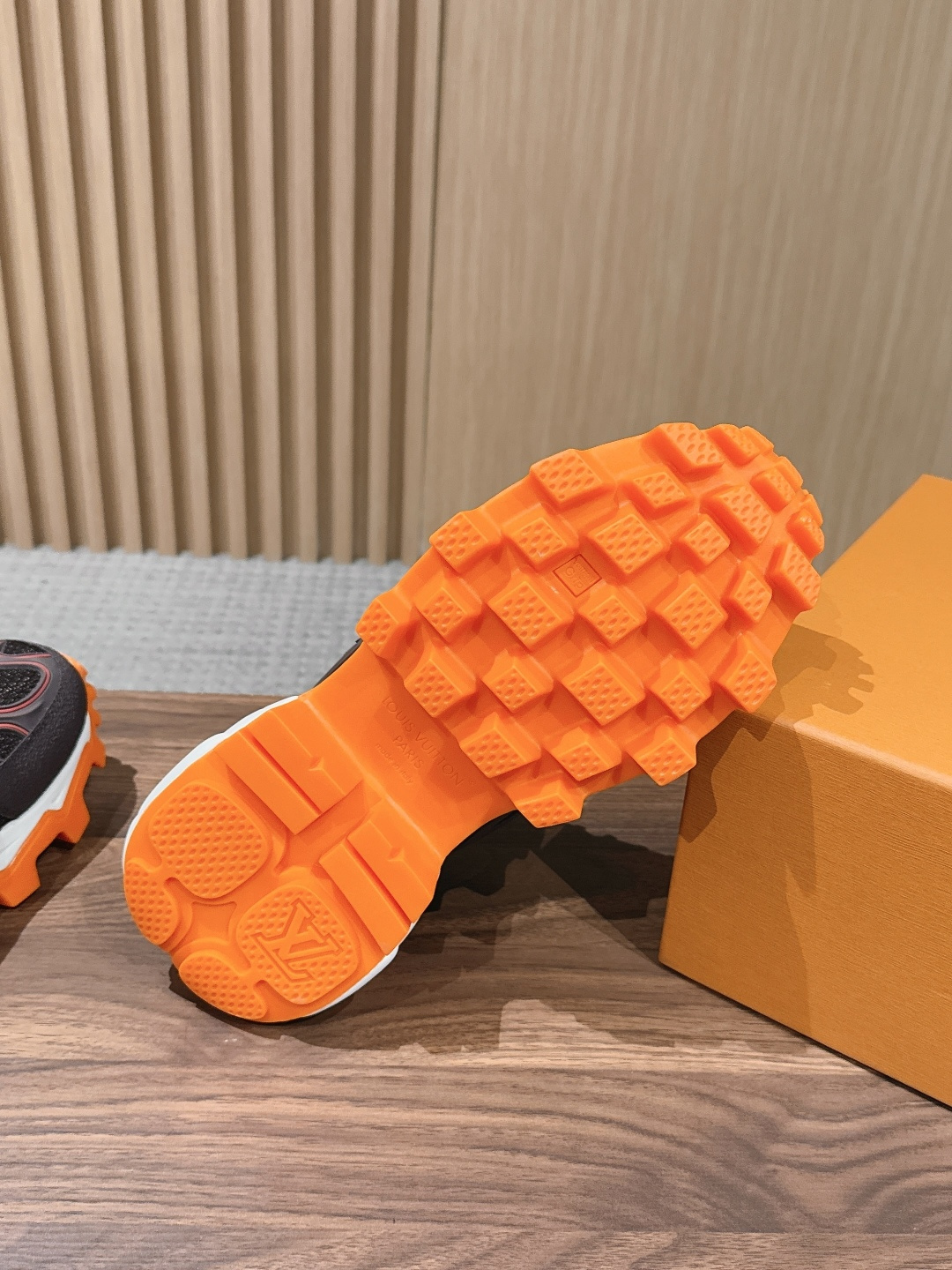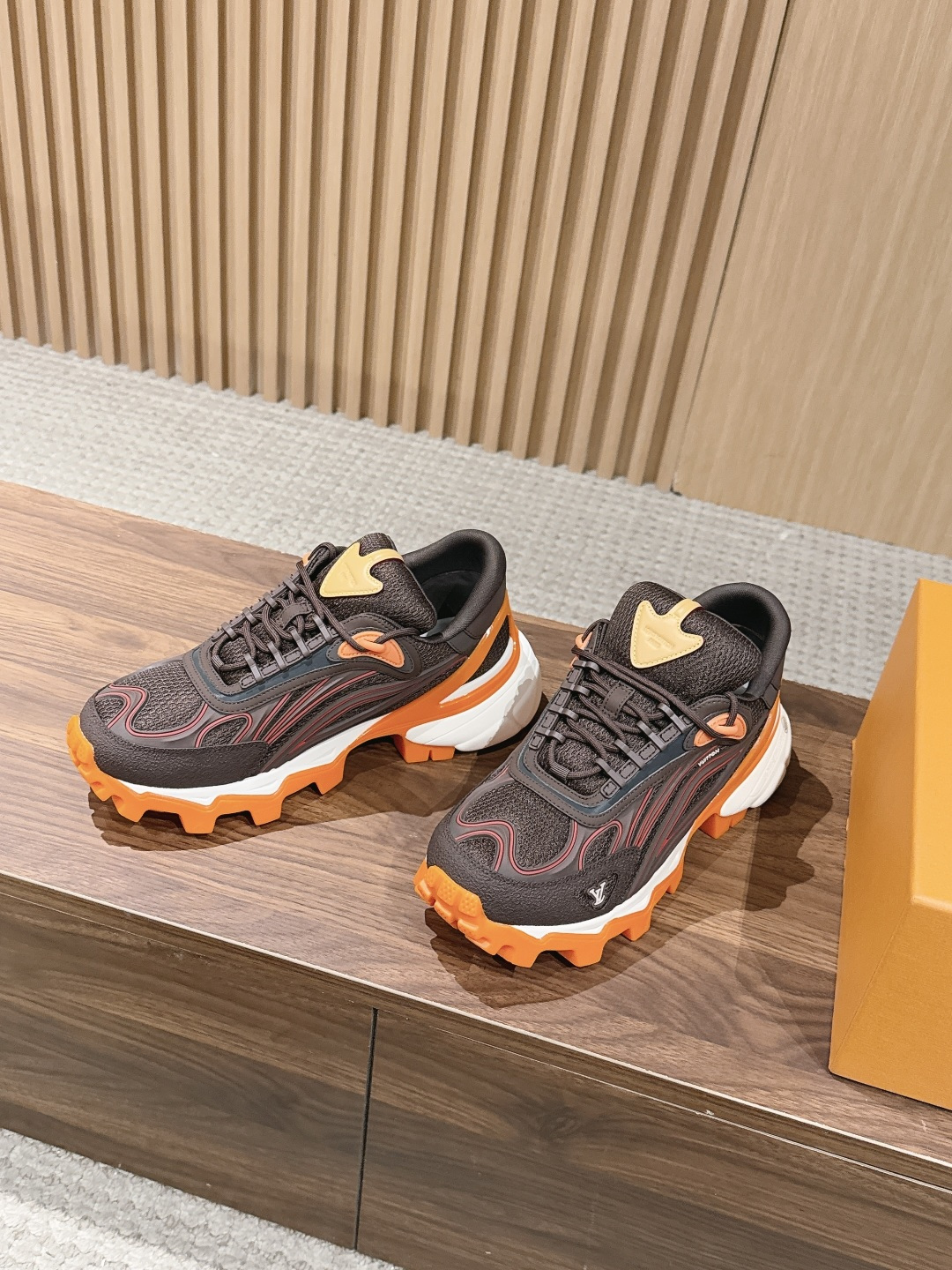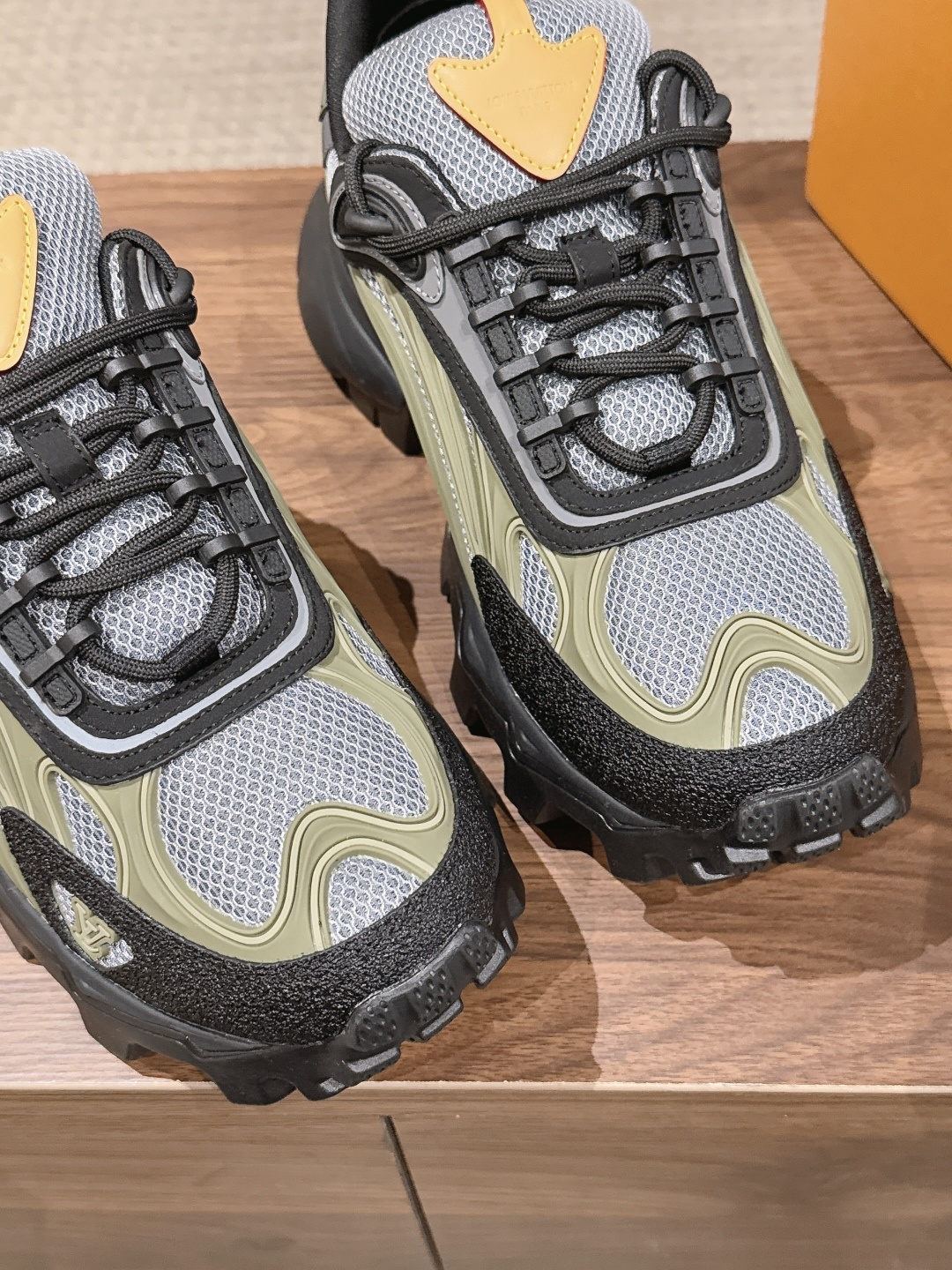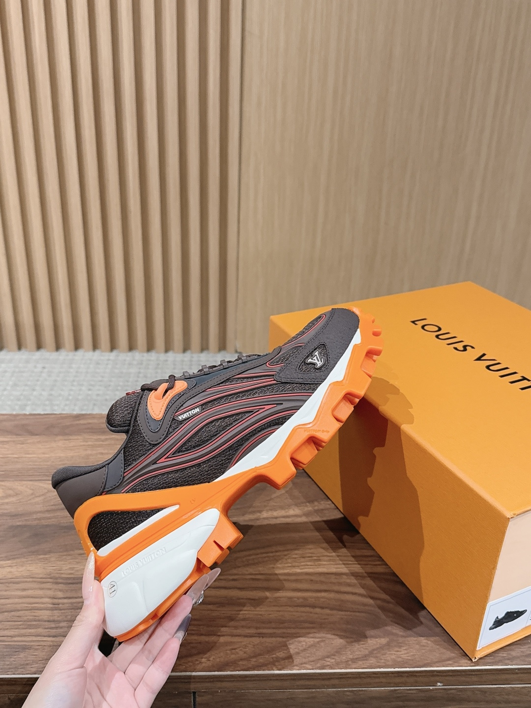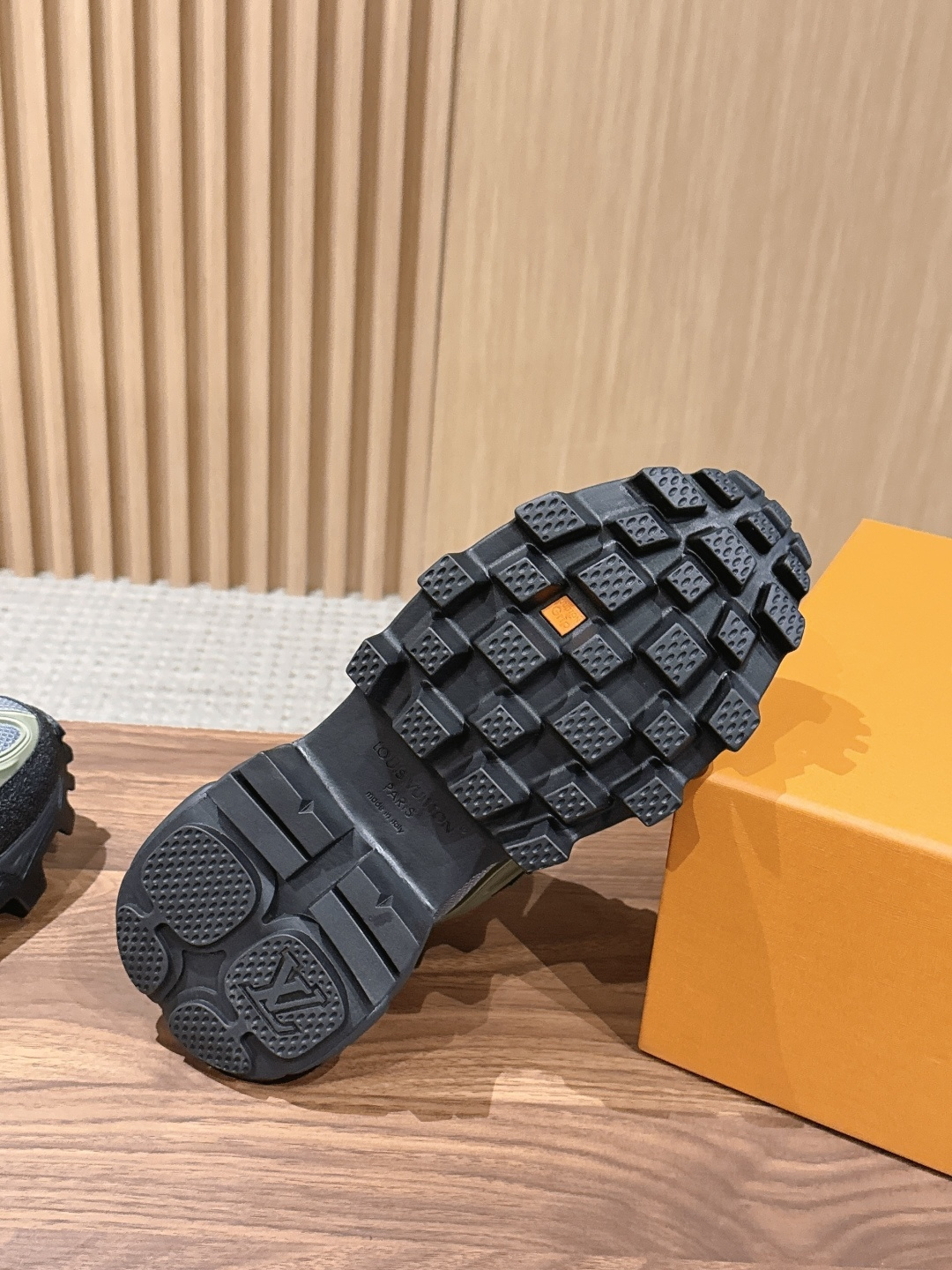 LV ✗ Pharrell Williams 菲董联名的2026新款男士运动鞋 黑色网布+橡胶材质,轻便又耐磨,厚底设计超有支撑力,日常穿搭或运动都OK!鞋面纹理+金属鞋带扣,细节满分,辨识度超高✨。菲董的创意加持,时尚与功能兼备,潮人必入! Size :39-46(46定制不退换)