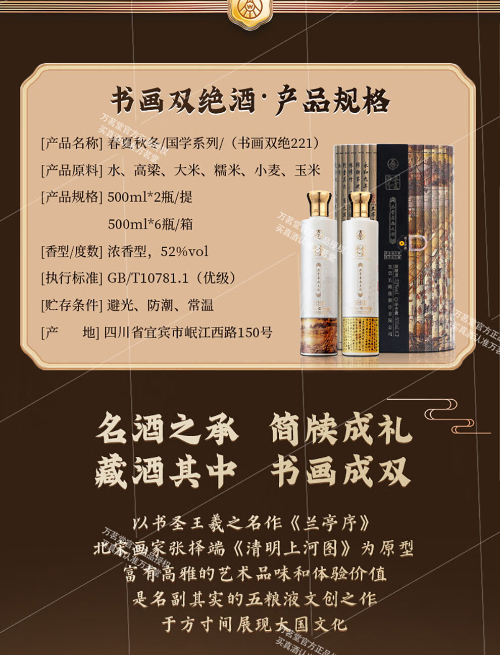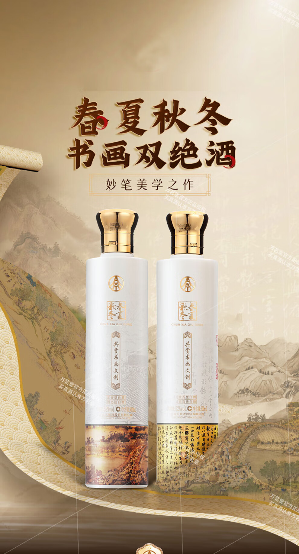 五粮液 春夏秋冬书画双绝礼盒 52度浓香型白酒500mL*6 整箱