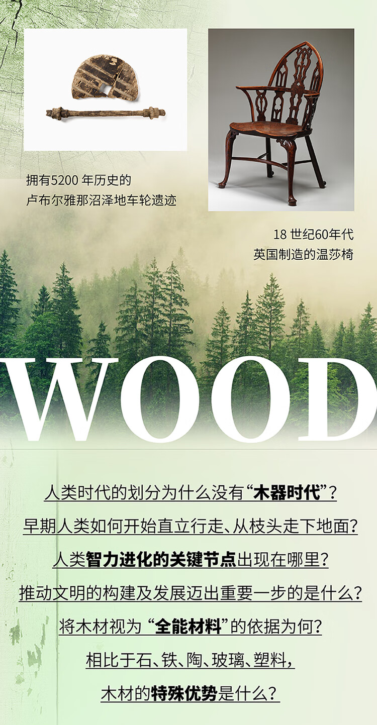 从在树林中筑巢的类人猿到依靠木材生火、搭建住所、制作工具和武器的早期人类;从车轮和木管乐器的结构设计,到纸张和印刷机的发明……人类成功的关键在于我们与木材的关系。