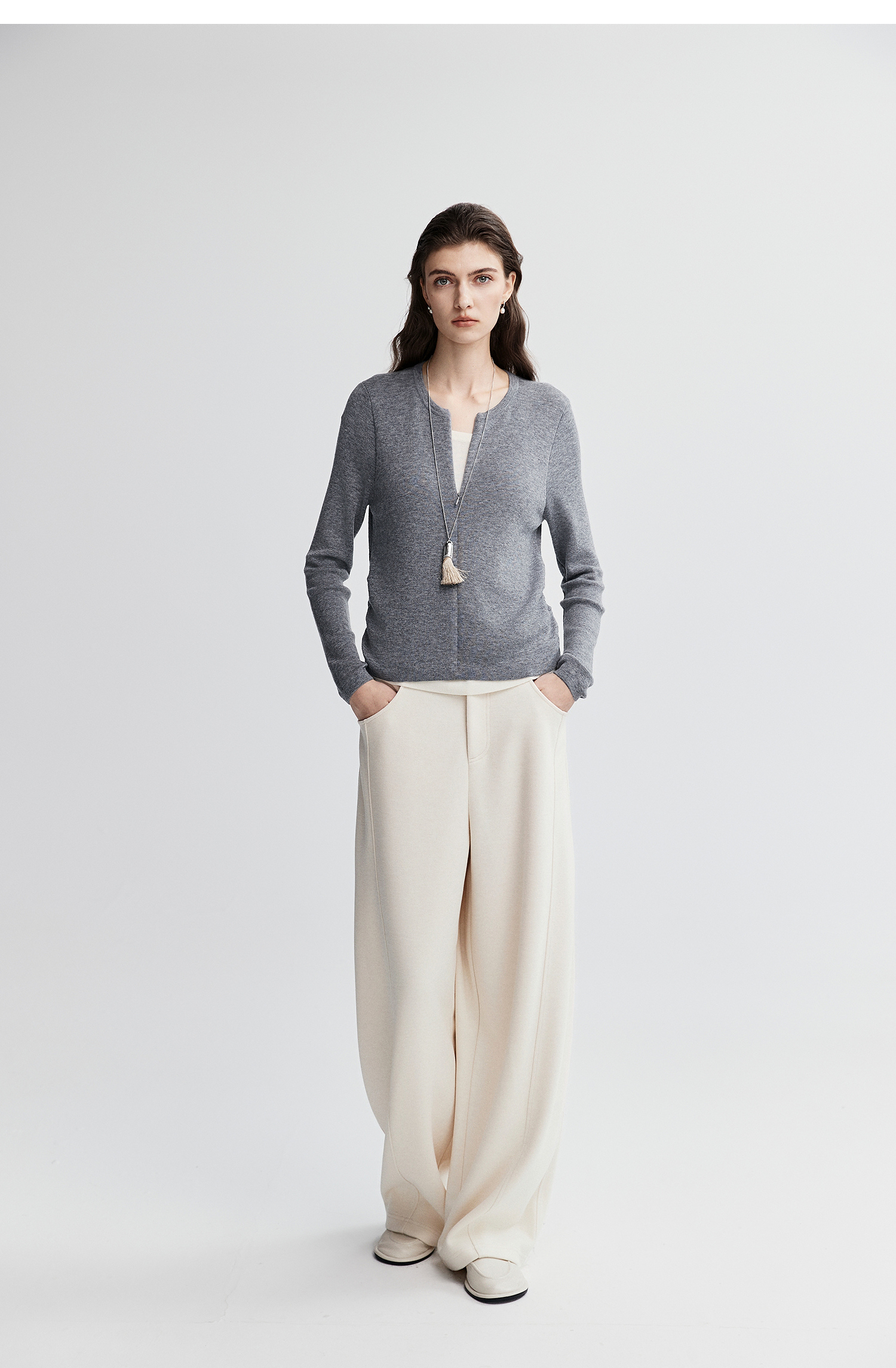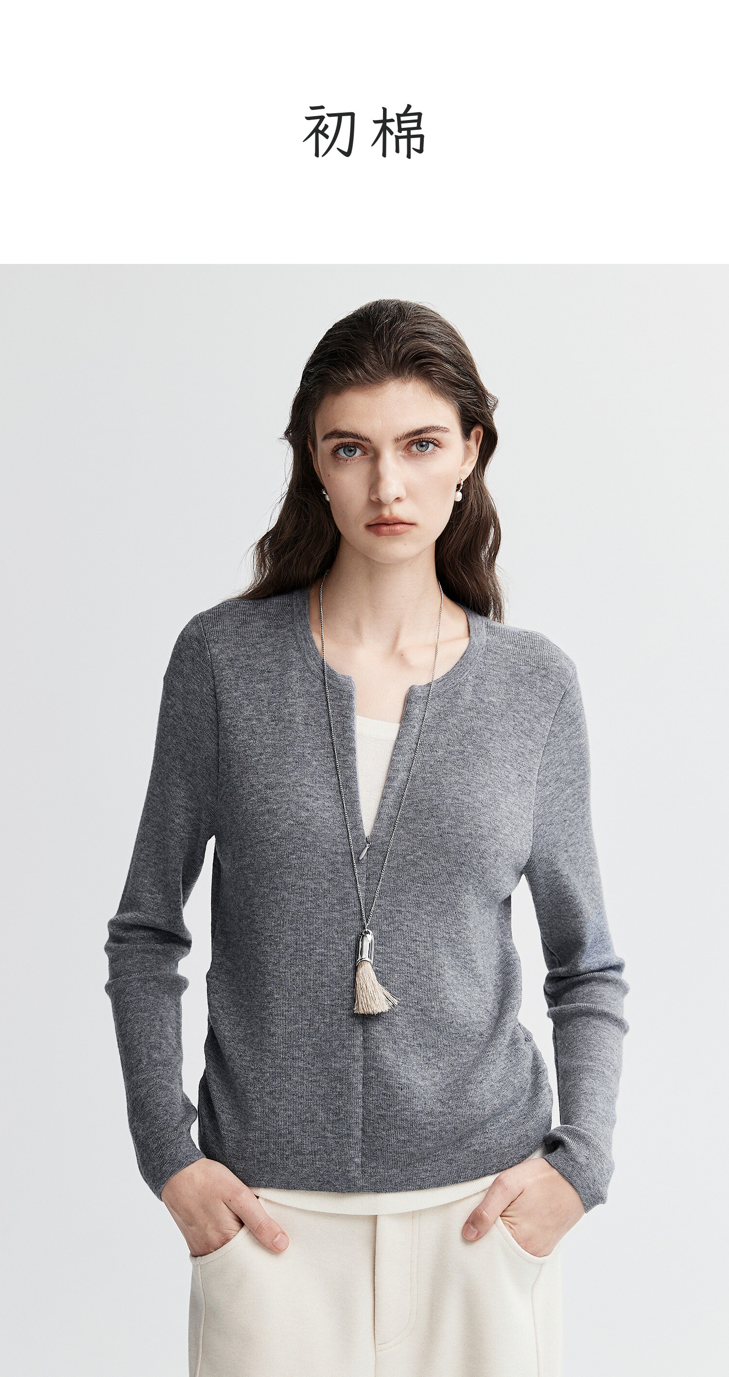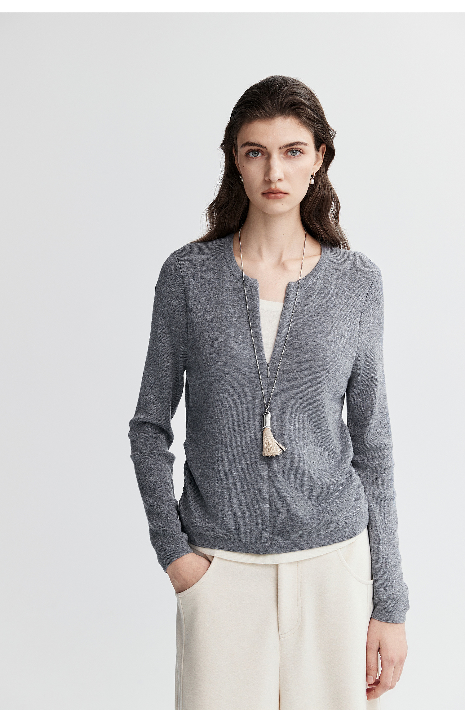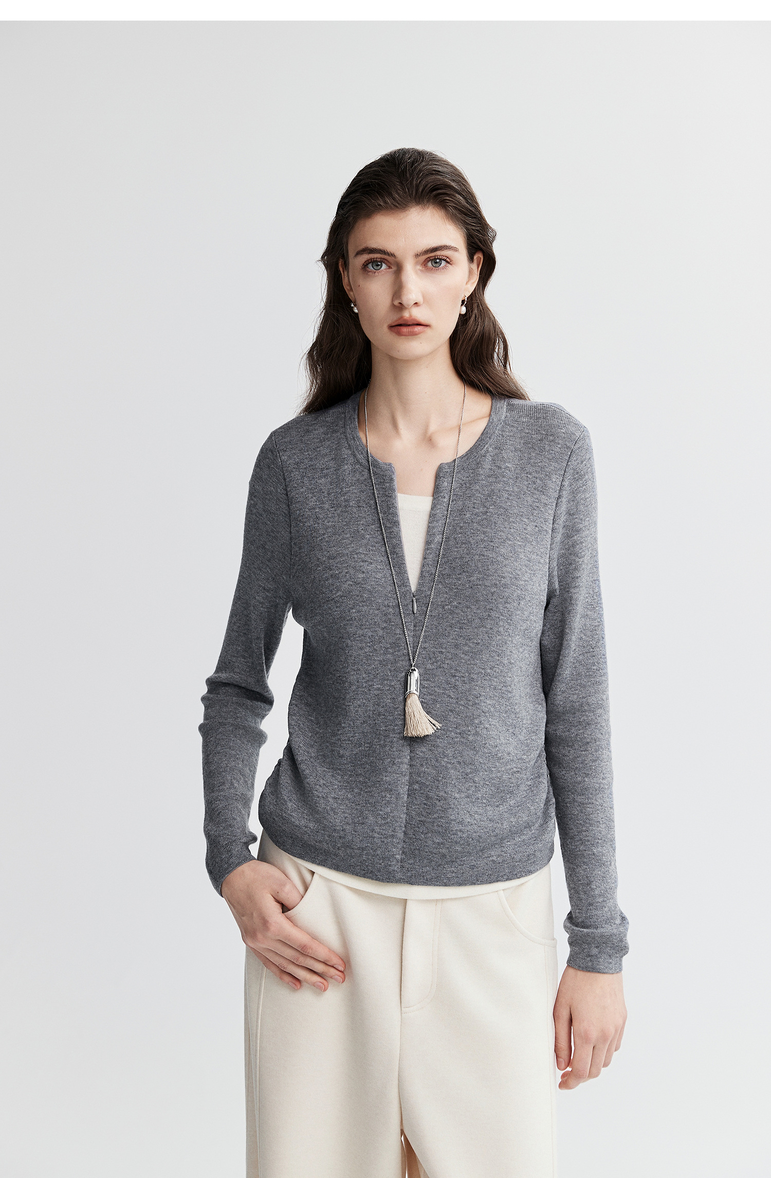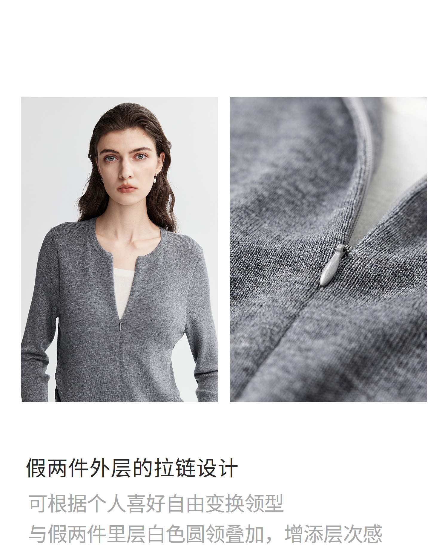 初棉显瘦抽褶假两件针织衫