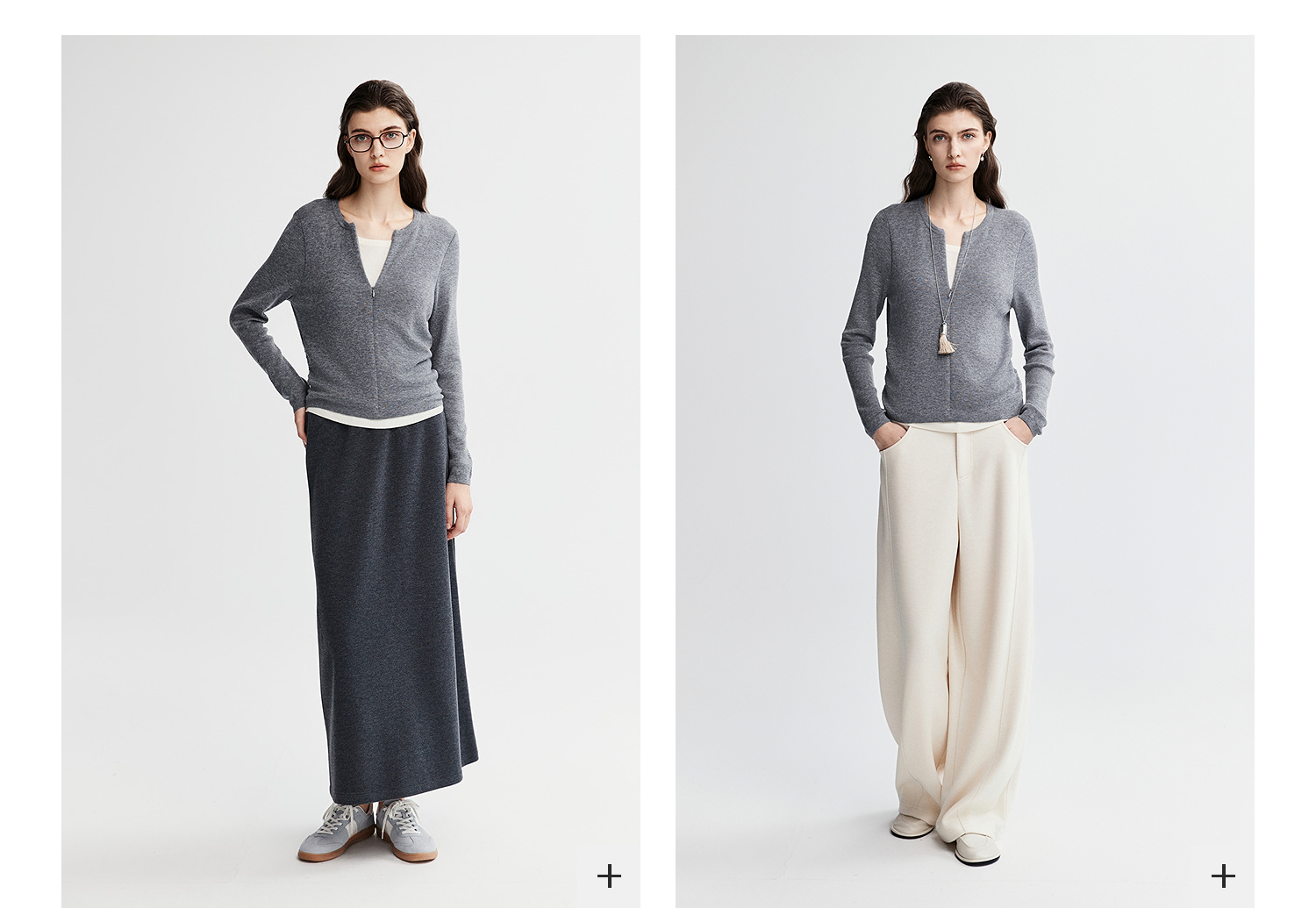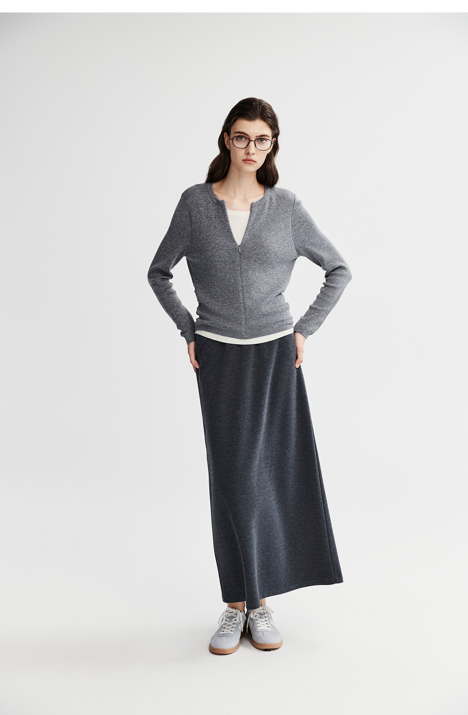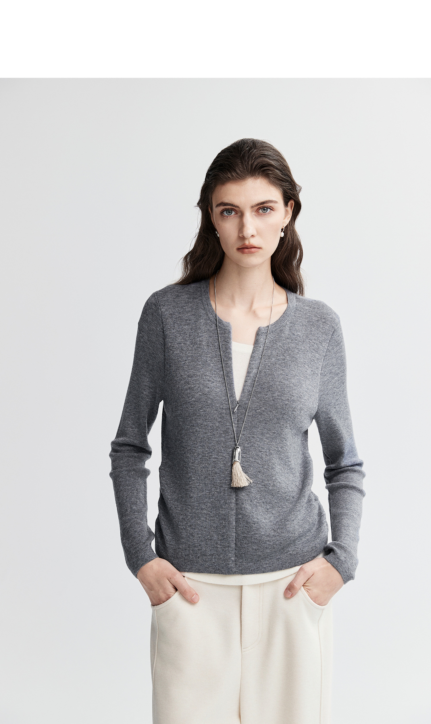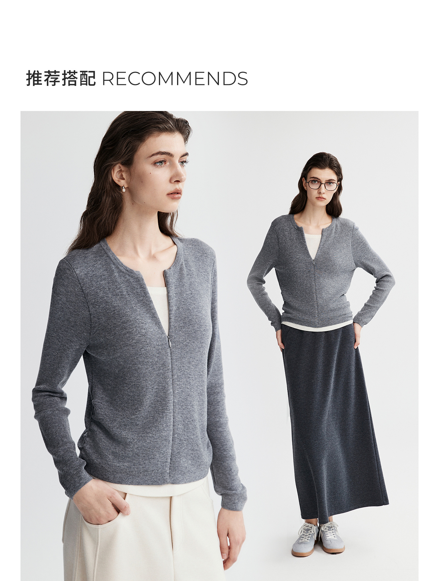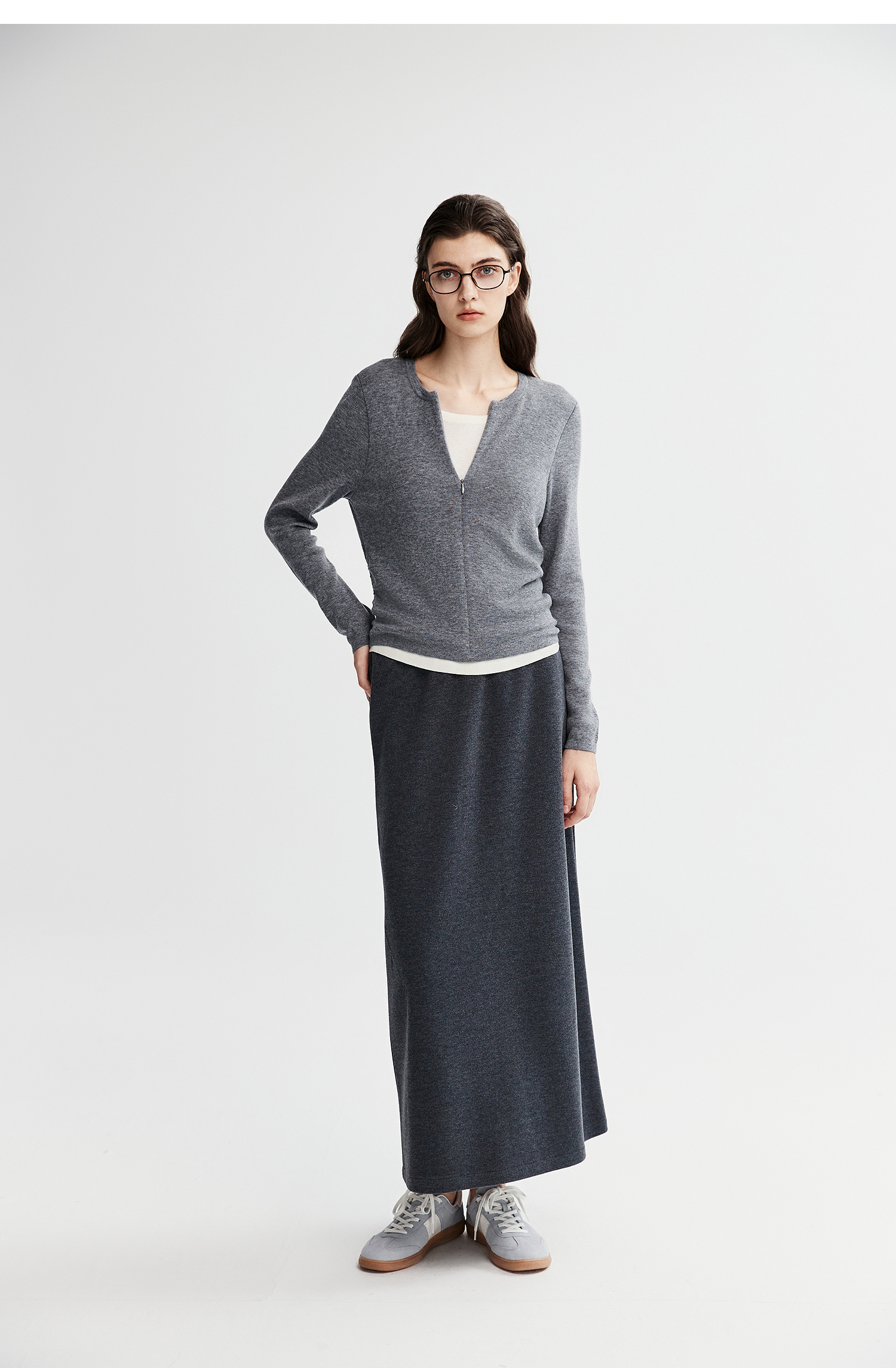 初棉显瘦抽褶假两件针织衫