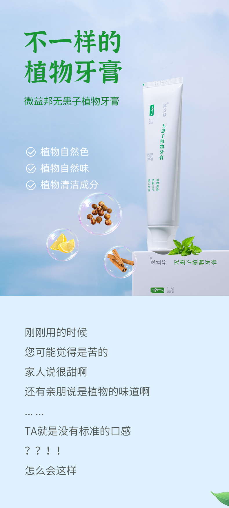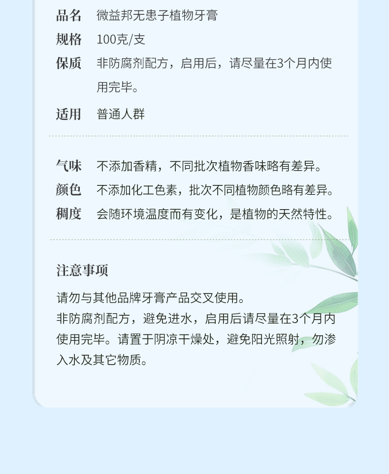 德益邦无患子植物牙膏 清新口气清洁护龈草本植物牙膏