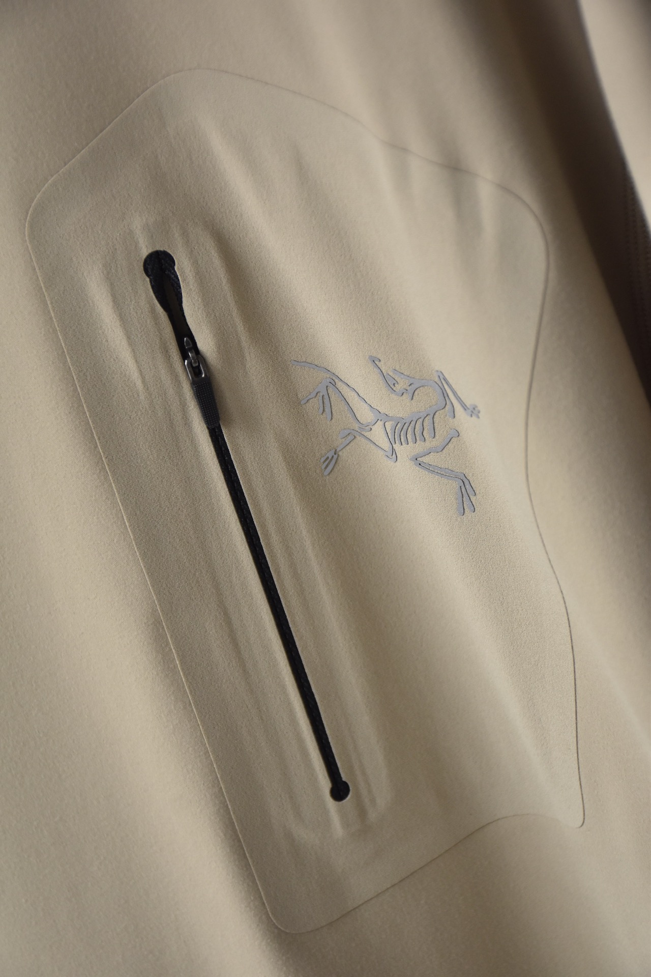 胸前的拉链口袋,无缝制压胶工艺制作,平整细致工艺严谨,并且带有logo印花的哈,很有辨识度
